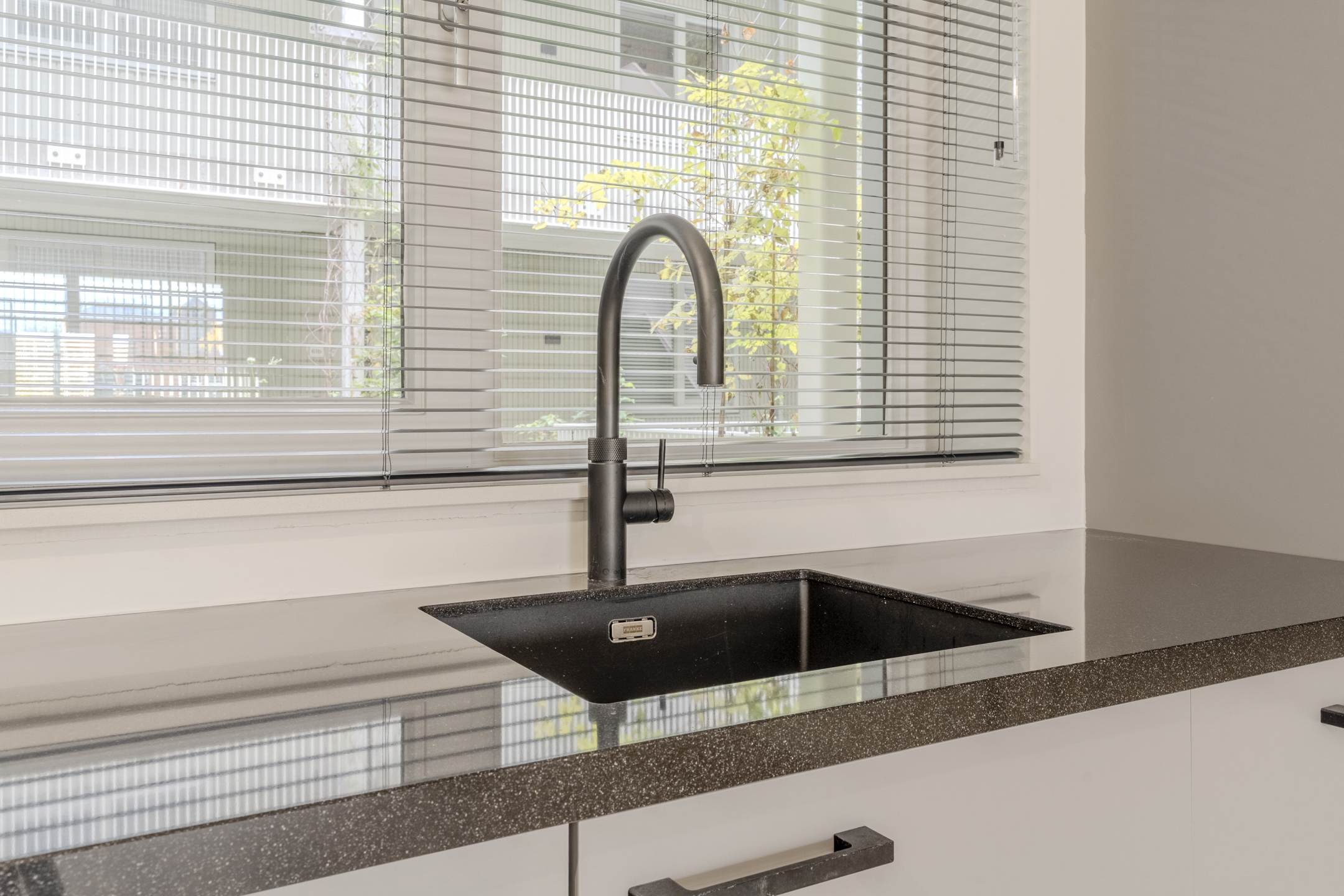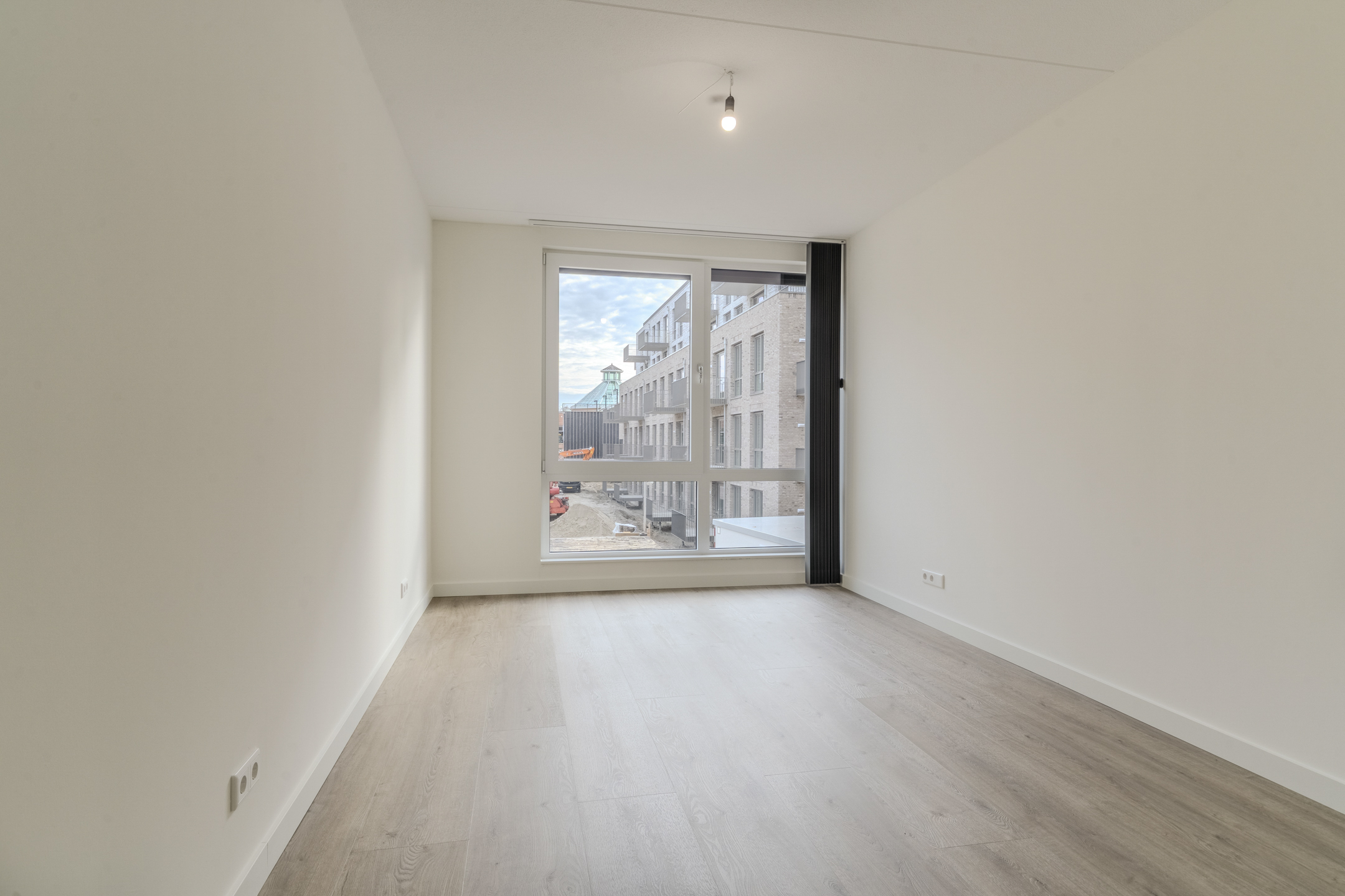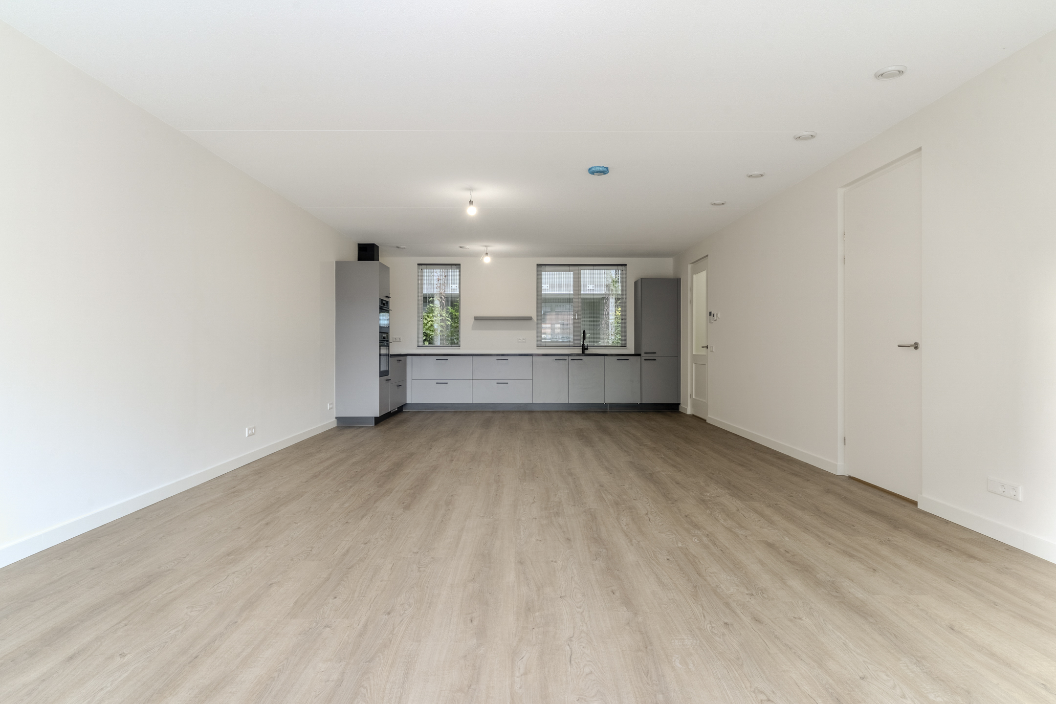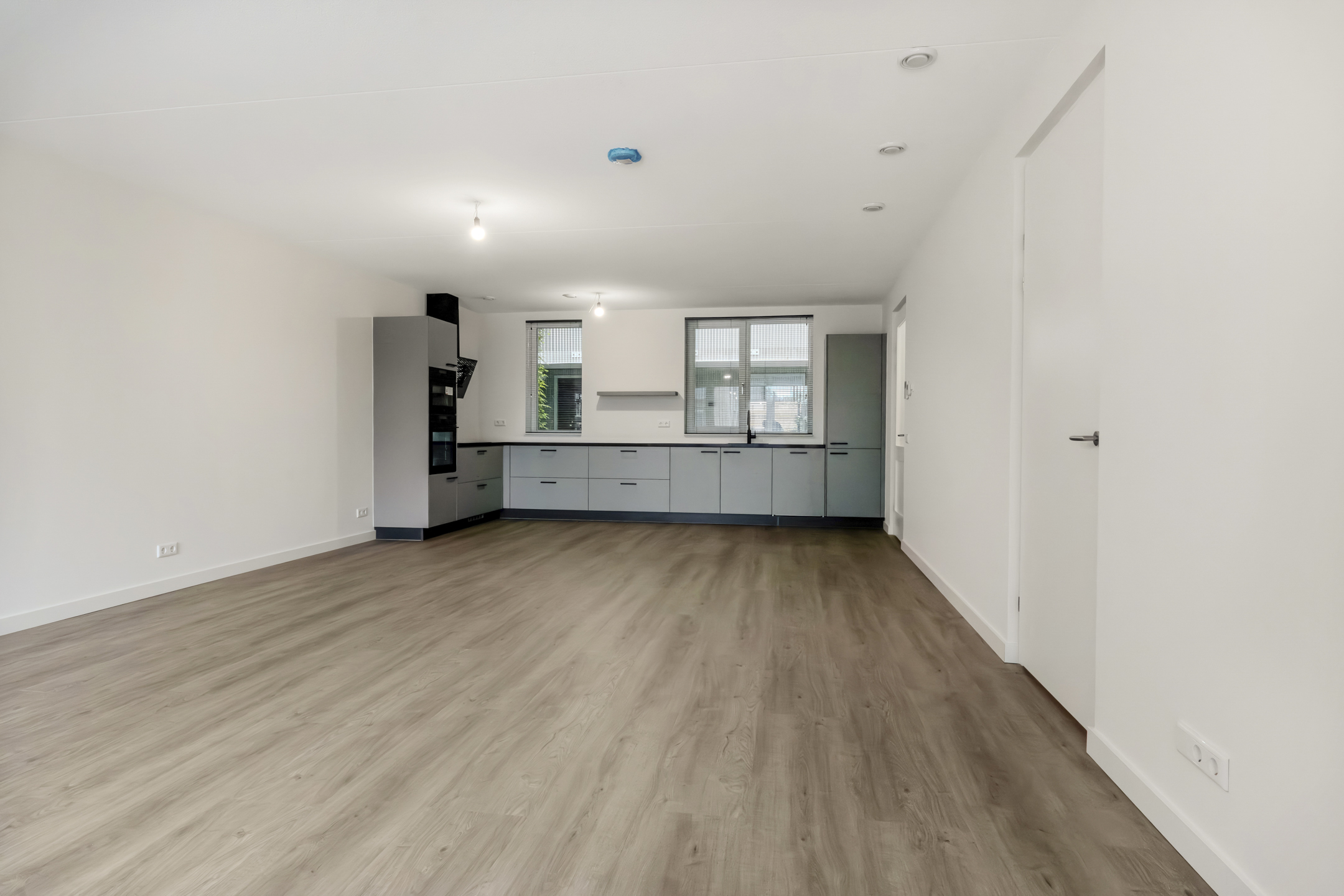 Entree/hal met toegang tot de meterkast, een praktische slaap-/werk-/hobby-/garderobekamer van ca. 7m² en een deels betegelde toiletruimte met wandcloset en fontein met onderbouwkastje, spiegel, closetrolhouder- en borstel en handdoekhaakje. Vanuit de hal komt u in de ruime, lichte living met toegang tot het balkon van ca. 11m² gelegen op het oosten. Het balkon is voorzien van een elektrisch uitvalscherm. De open keuken is voorzien van een luxe keukeninrichting met volop kastjes en lades en diverse inbouwapparatuur, te weten: een vaatwasmachine, heteluchtoven, multifunctionele oven met magnetronfunctie, inductiekookplaat met afzuigkap, koel-/vriescombinatie, spoelbak en een Quooker kraan. Op de vloer ligt een fraaie PVC vloer, aan de balkonzijde zijn er lamellen aanwezig en aan de keukenzijde luxaflex.