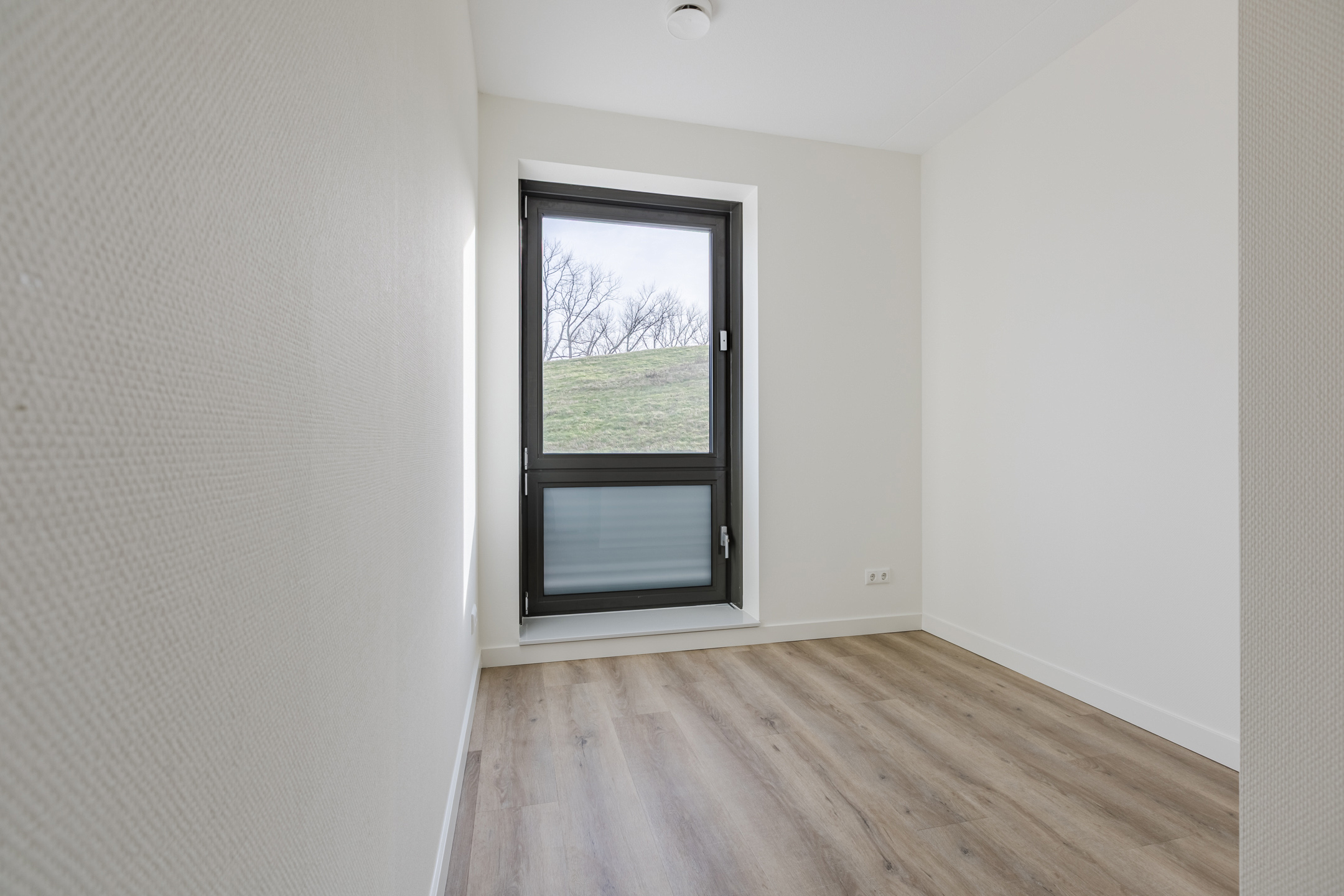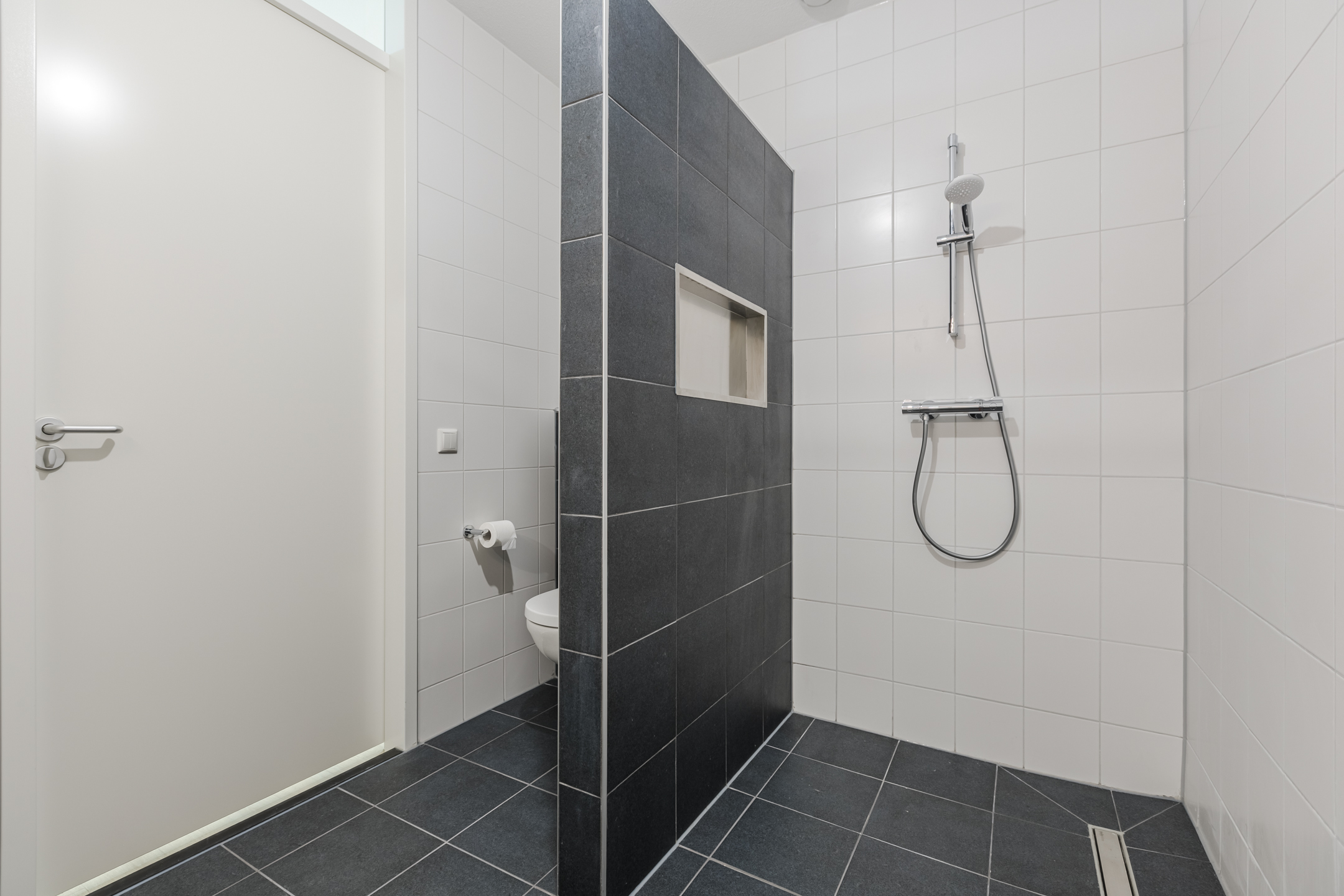 Entree/hal met meterkast, berging met de opstelplaats van de warmtepompinstallatie, de warmteterugwinunit (WTW) en de aansluitingen ten behoeve van de wasapparatuur. Twee slaapkamers te weten: riante hoofdslaapkamer (ca. 3.81x3.39m), tweede slaapkamer (ca. 3.39/2.37x2.38m). Geheel luxe betegelde badkamer welke is ingericht met een zeer comfortabele en ruime inloopdouche, een vaste wastafel in een wandmeubel en een tweede vrijhangend closet.