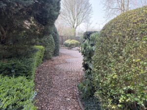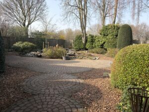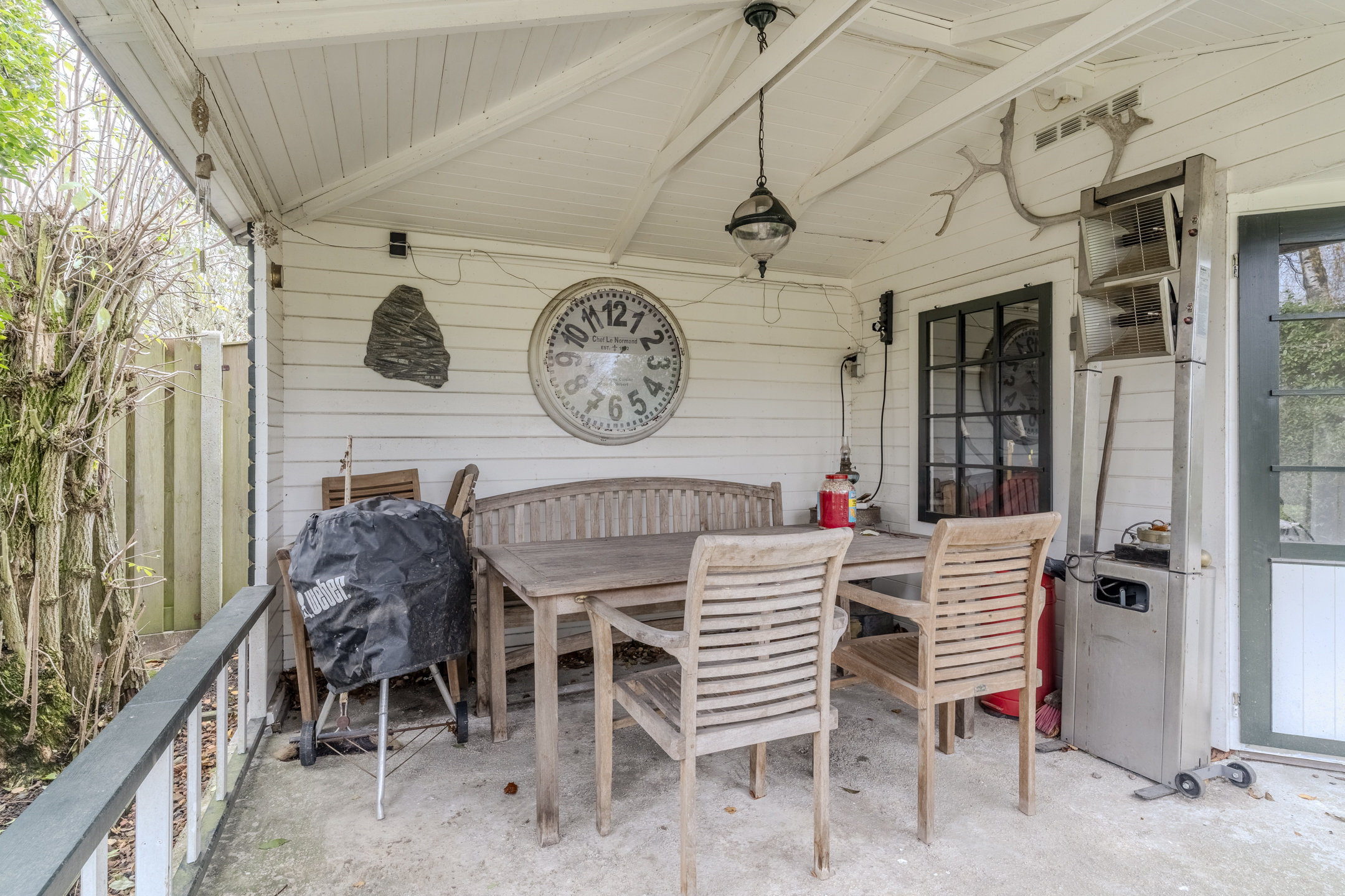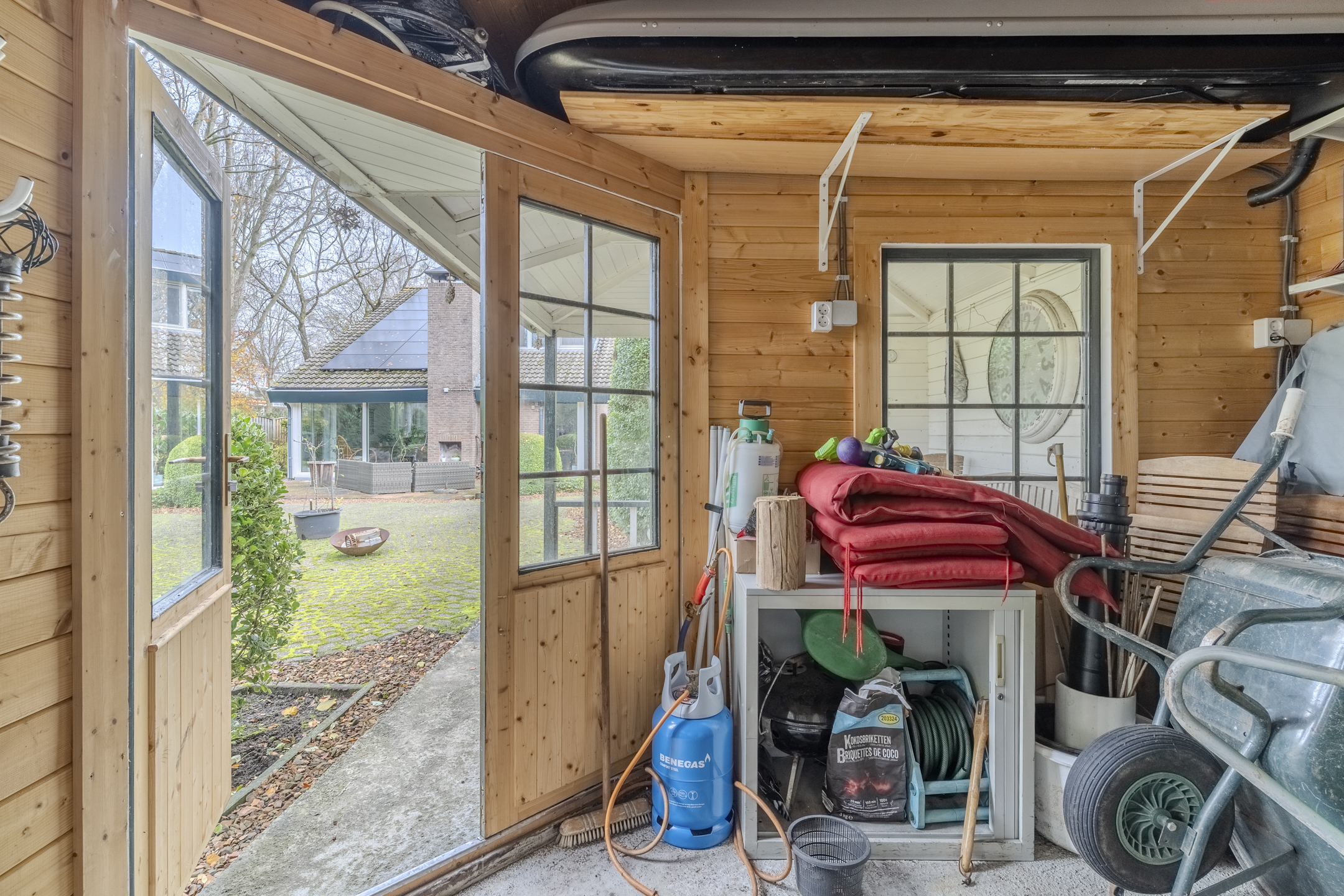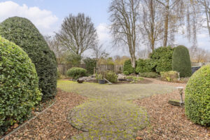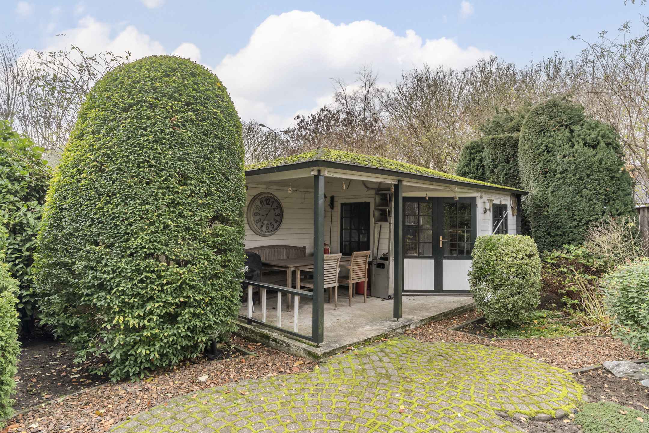 Ruime rondom de woning gesitueerde tuin welke is aangelegd met diverse terrassen, volwassen beplanting, vijver en een houten terrasoverkapping met berging. De tuin is op het westen gelegen en biedt heel veel privacy. Aan de voorzijde is er volop parkeergelegenheid op eigen terrein.