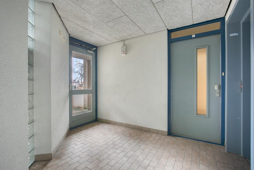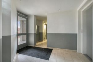 Entree/hal met bellenplateau en brievenbussen. Eenmaal binnen is er toegang tot de liftpartij, het trappenhuis en de op de begane grond gelegen (fietsen)bergingen.