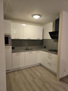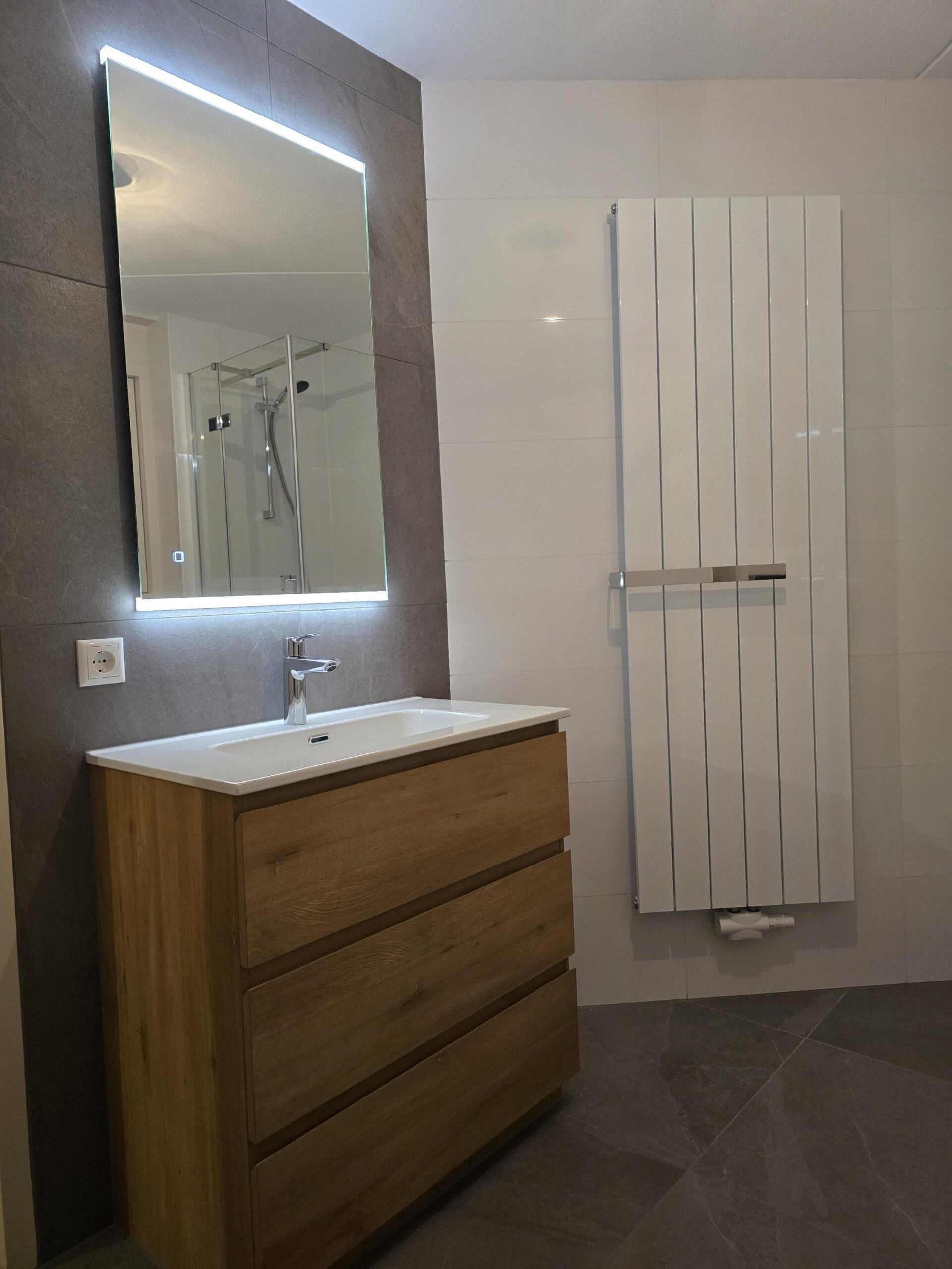 - Het appartement is geheel voorzien van een hoogwaardige moderne laminaatvloer (m.u.v badkamer, toilet en bijkeuken).