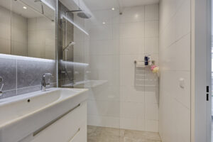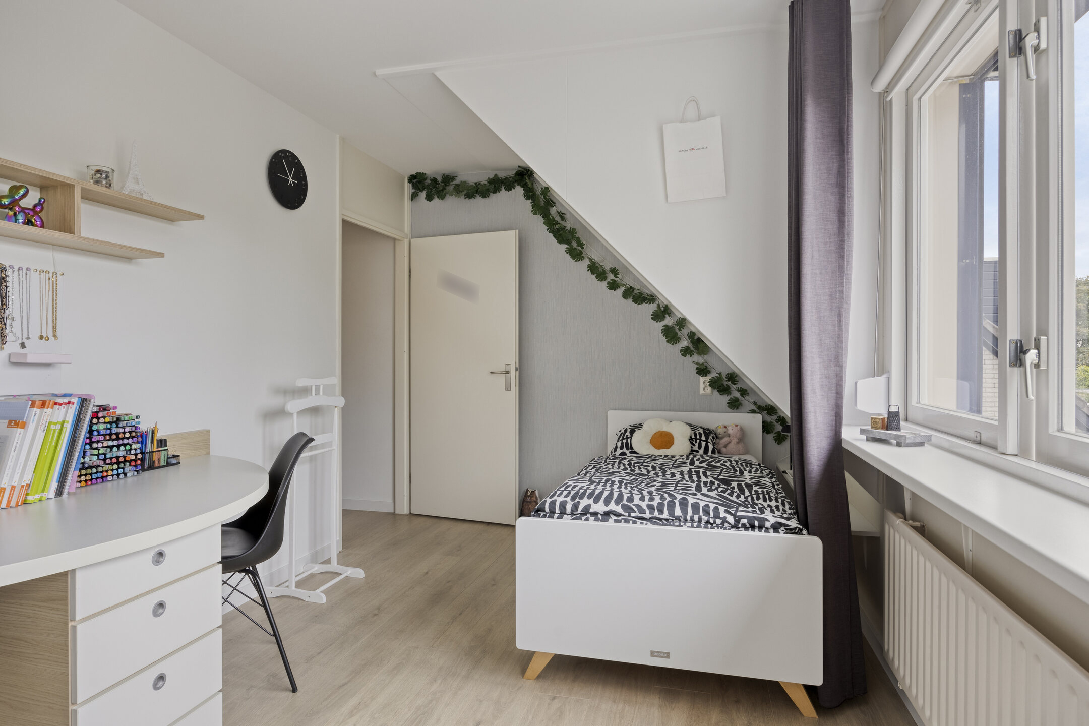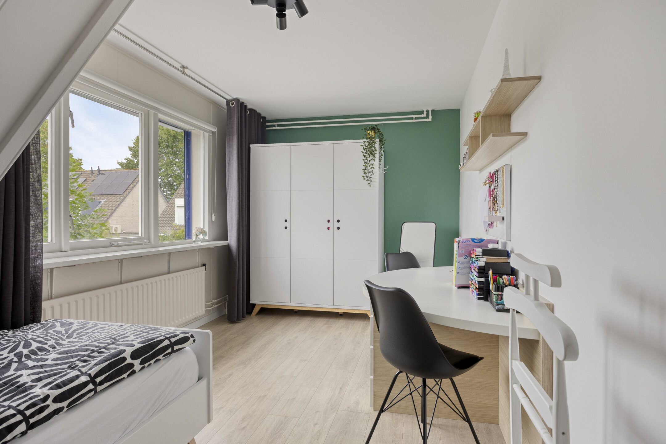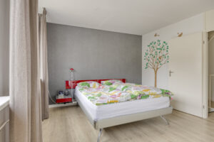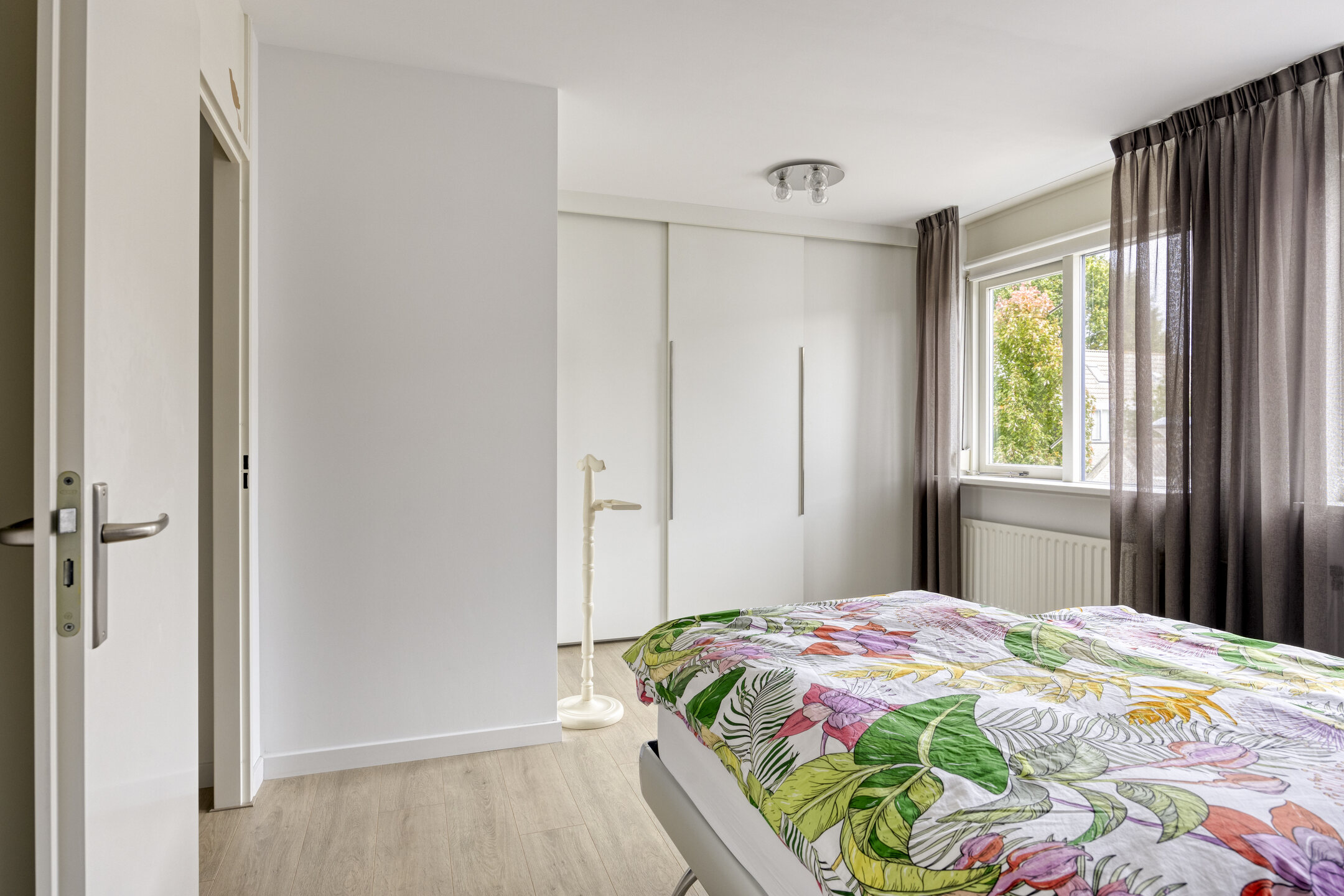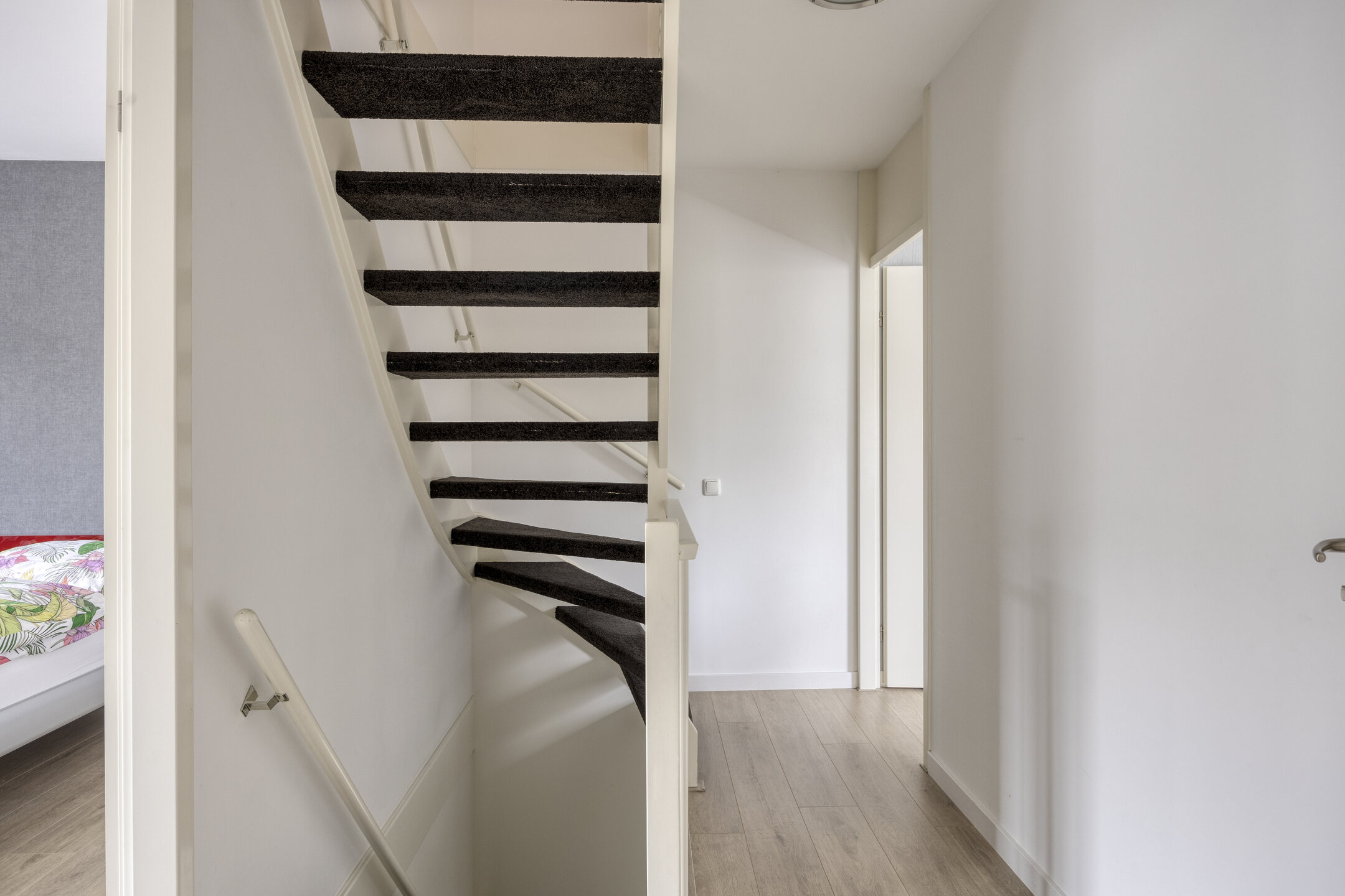 Overloop met vaste trap naar de tweede verdieping, ruime achterslaapkamer met dakkapel, luxe badkamer (2017) met een inloopdouche, een tweede vrijhangend closet, dubbele vaste wastafel in wandmeubel en een designradiator. Grote voorslaapkamer met een vaste kastenwand (voorheen twee kamers). De overloop en de slaapkamers zijn voorzien van een hoogwaardige laminaatvloer.