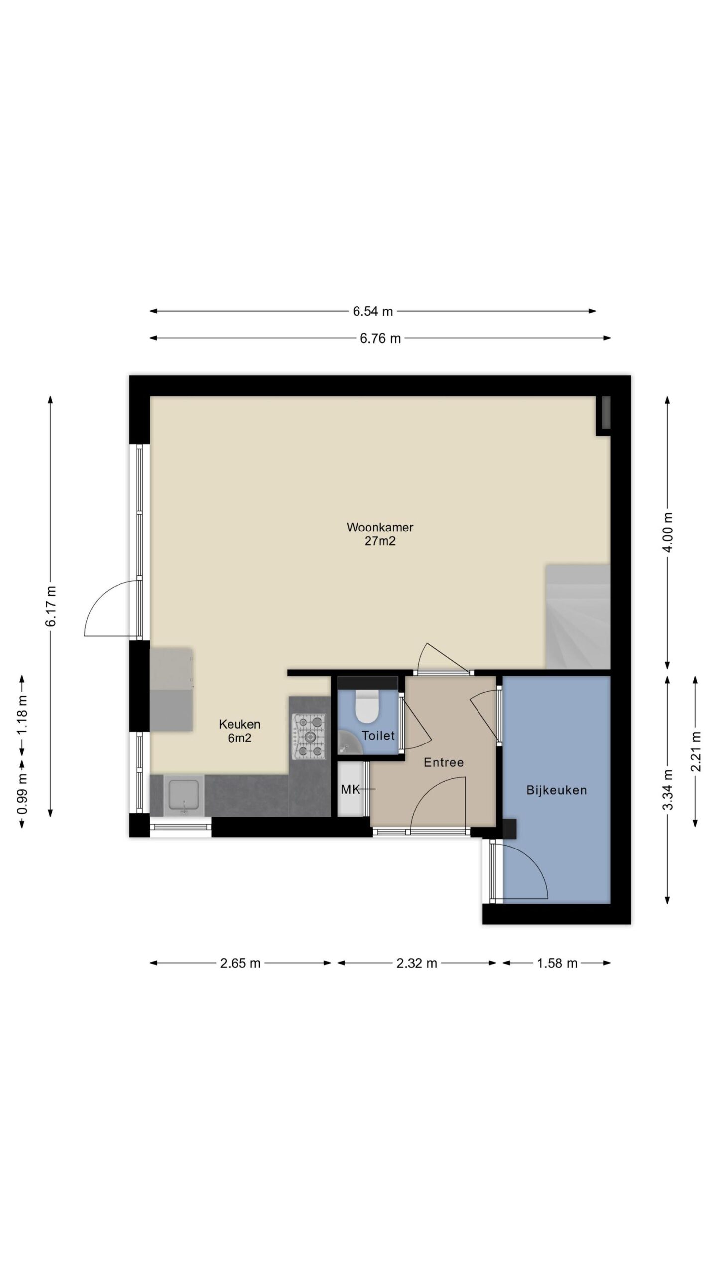 - Keuken, badkamer en toilet worden mechanisch geventileerd.