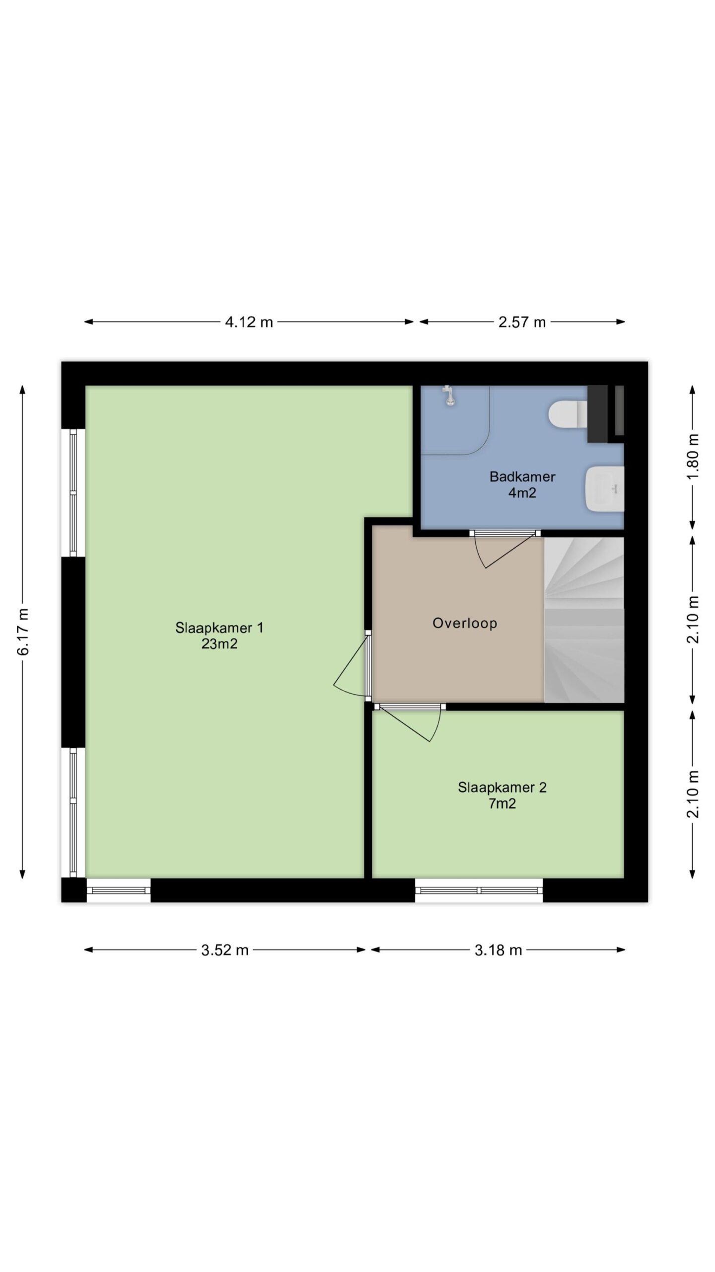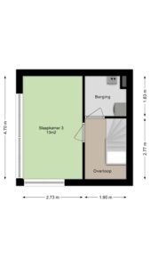 Slaapkamer 2 (ca. 7m²) gelegen aan de zijkant van de woning.