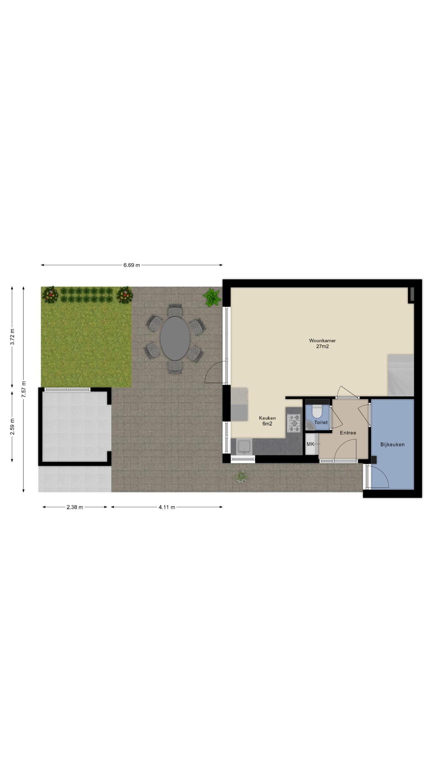 - De tuin is gunstig gepositioneerd en heeft vanaf ’s middags tot in de late uurtjes volop zon.