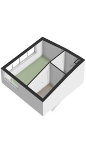 Overloop met laminaatvloer en toegang tot de technische ruimte met opstelplaats HR-combiketel (Remeha Calenta uit 2012), mechanische ventilatie unit en de aansluitingen ten behoeve van de wasapparatuur. Royale en bijzonder lichte zolderkamer/ 3e slaapkamer (ca. 13m²) voorzien van laminaatvloer en zicht op de speelse schuine plafondconstructie. Redelijk eenvoudig is er een royaal dakterras te creëren op deze verdieping.