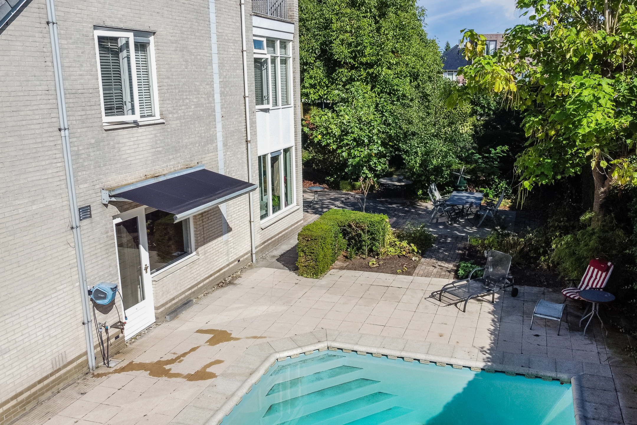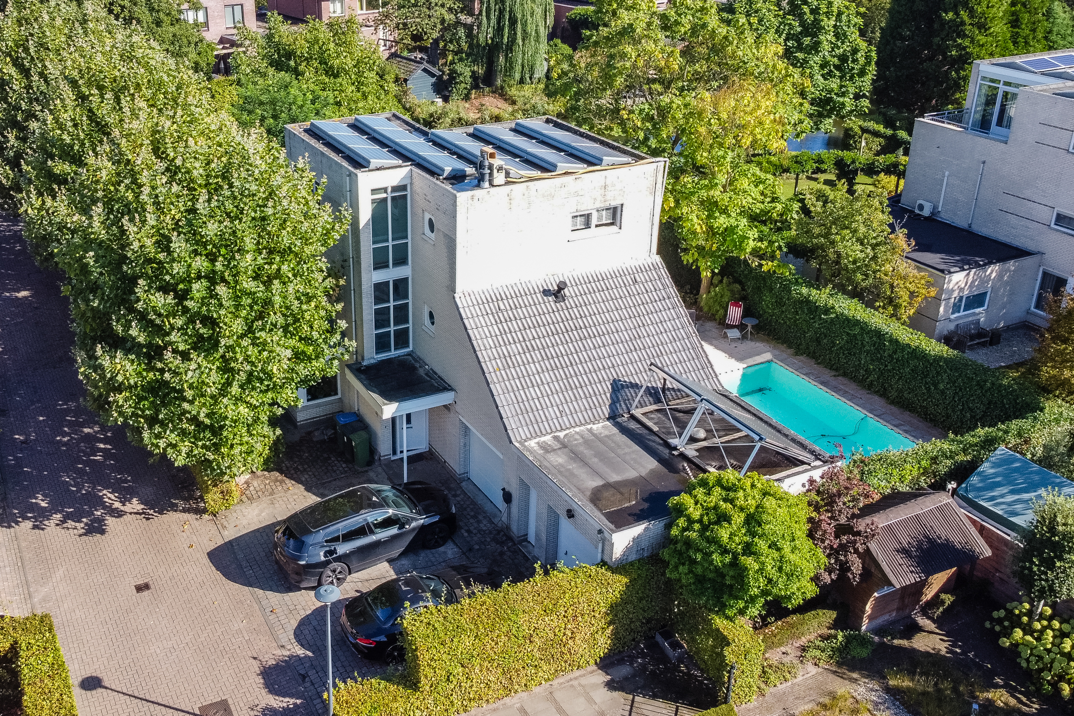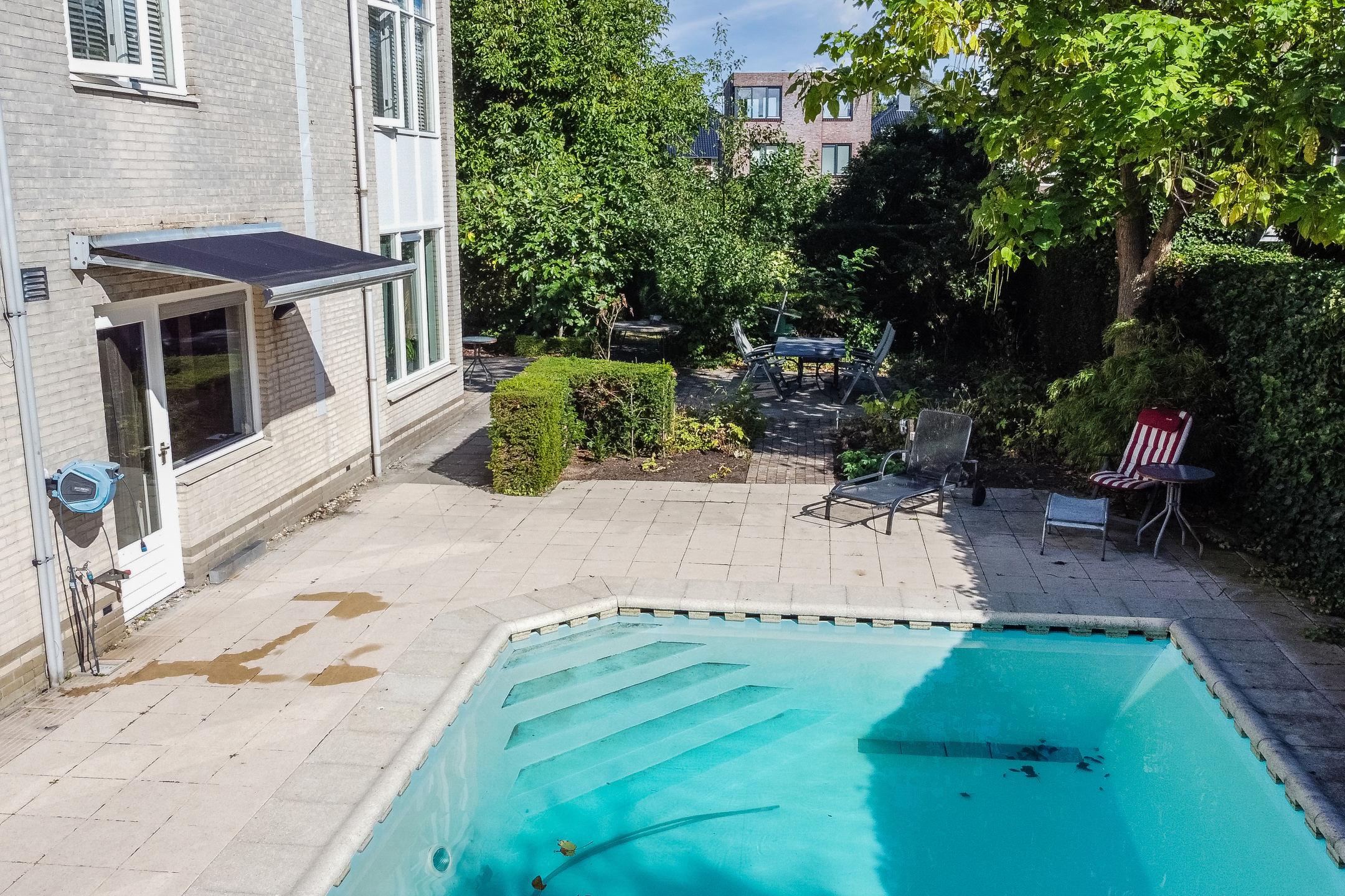 Op prachtige locatie, op loopafstand van het centrum, aan de achterzijde aan waterpartij gelegen, verrassend ruim uitgebouwd vrijstaand herenhuis voorzien van inpandig bereikbare multifunctionele ruimte (voormalige garage), aangebouwde "tweede" garage en een destijds onder architectuur van Pieter Jan van Hasselt aangelegde tuin met grasgazon, terrassen, plantenborders en een groot buitenzwembad. De woning beschikt over een drietal parkeerplaatsen op eigen terrein.