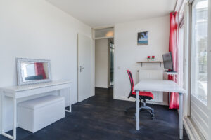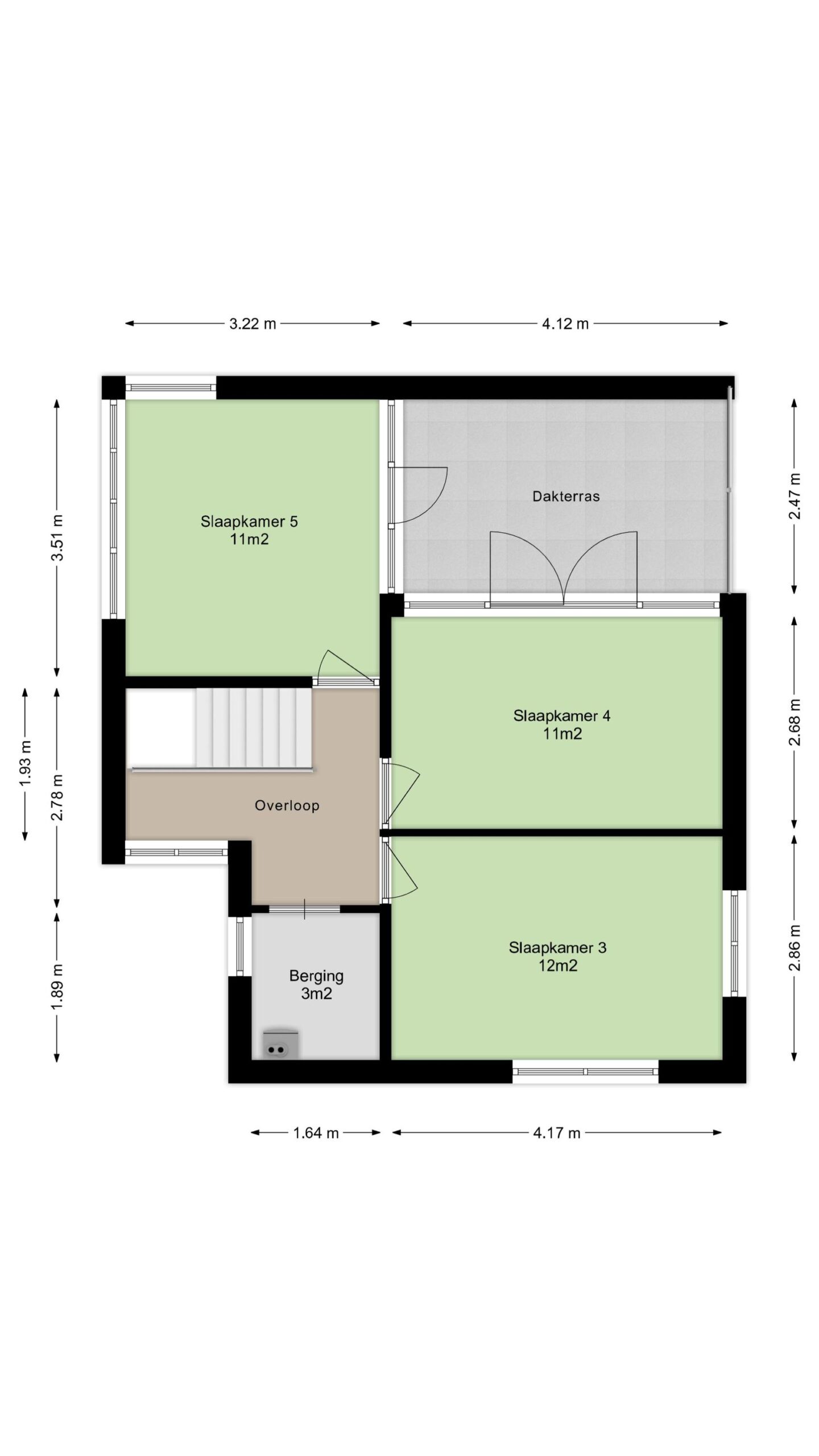 Overloop met toegang tot de cv-ruimte en drie ruime slaapkamers te weten: slaapkamer ca. 11m² met toegang tot het dakterras (ca. 11m²), slaapkamer ca. 11m² eveneens met toegang tot het dakterras, slaapkamer ca. 12m².