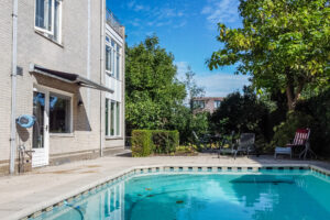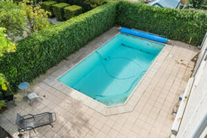 - De pomp/filterinstallatie van het zoutwater/buitenzwembad staat opgesteld in de garage.