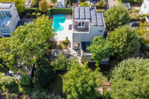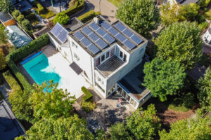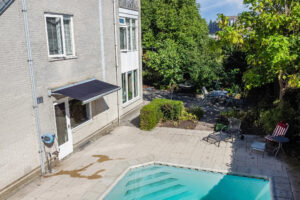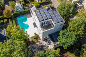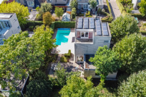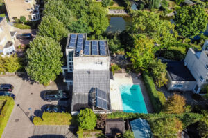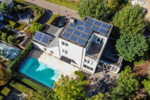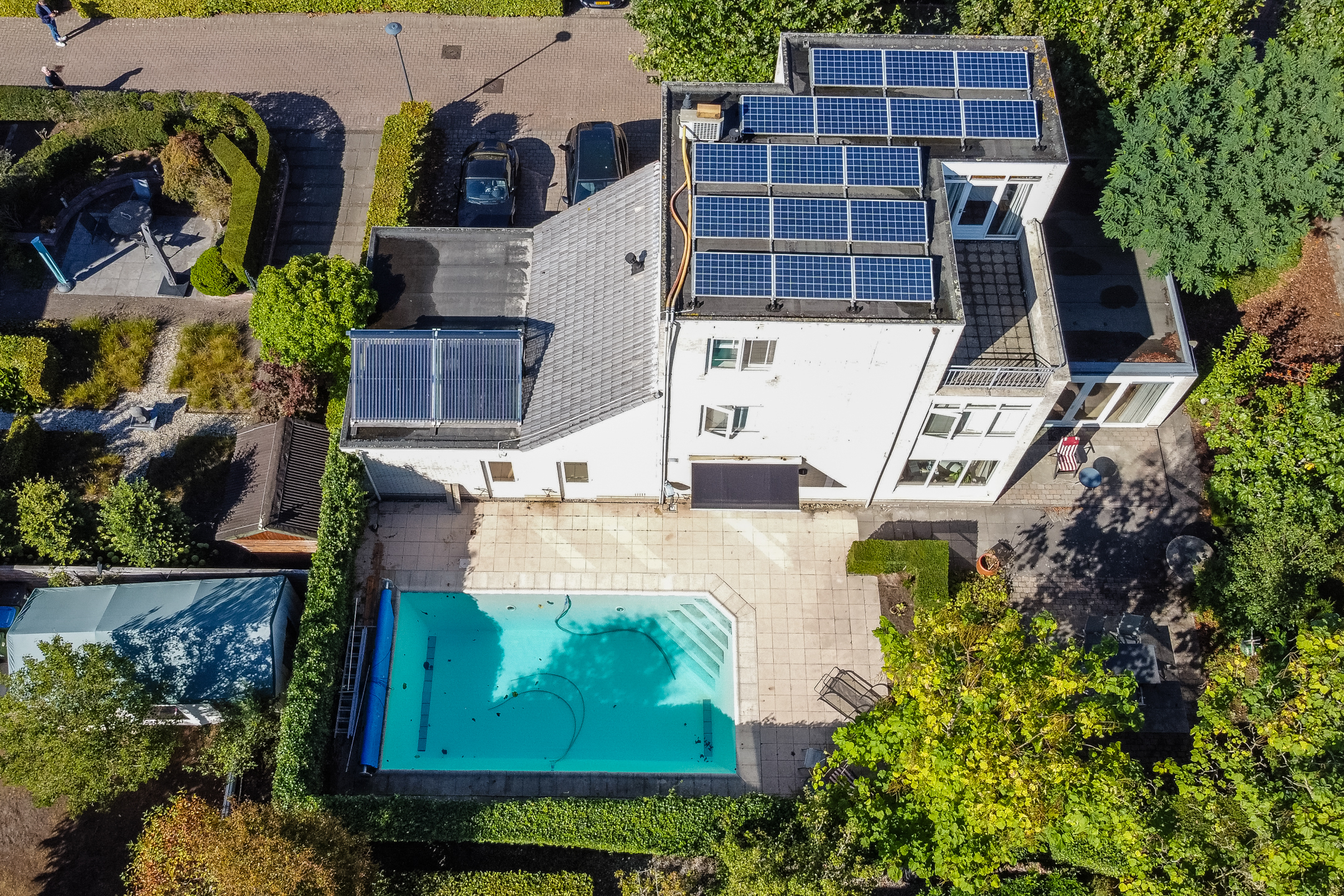 - Het zout water zwembad (met elektrolyse systeem uit 2014 waarbij zout wordt omgezet in chloor) wordt verwarmt middels een warmtepomp en zonnecollectoren.