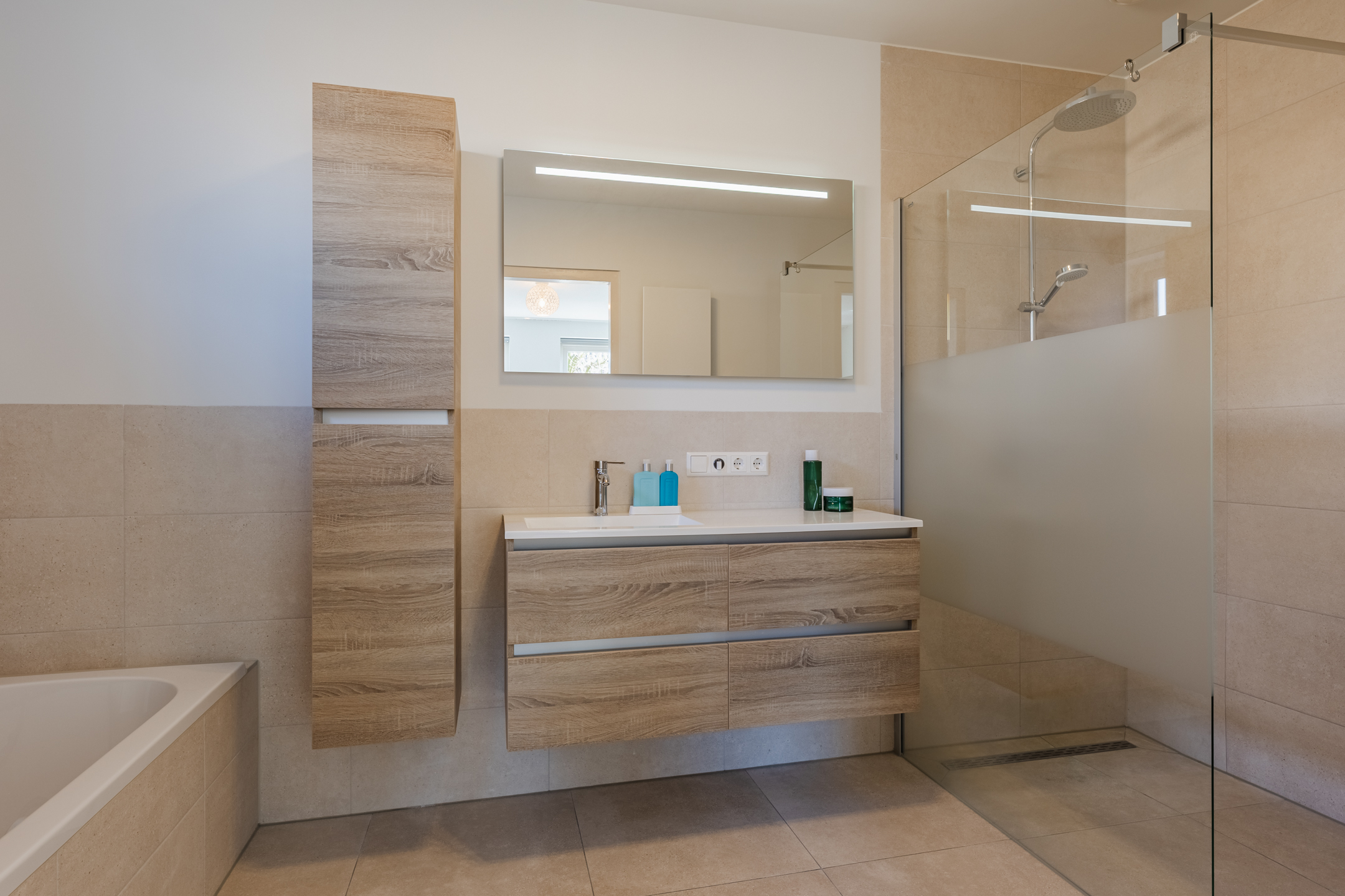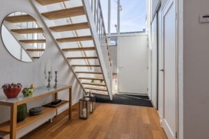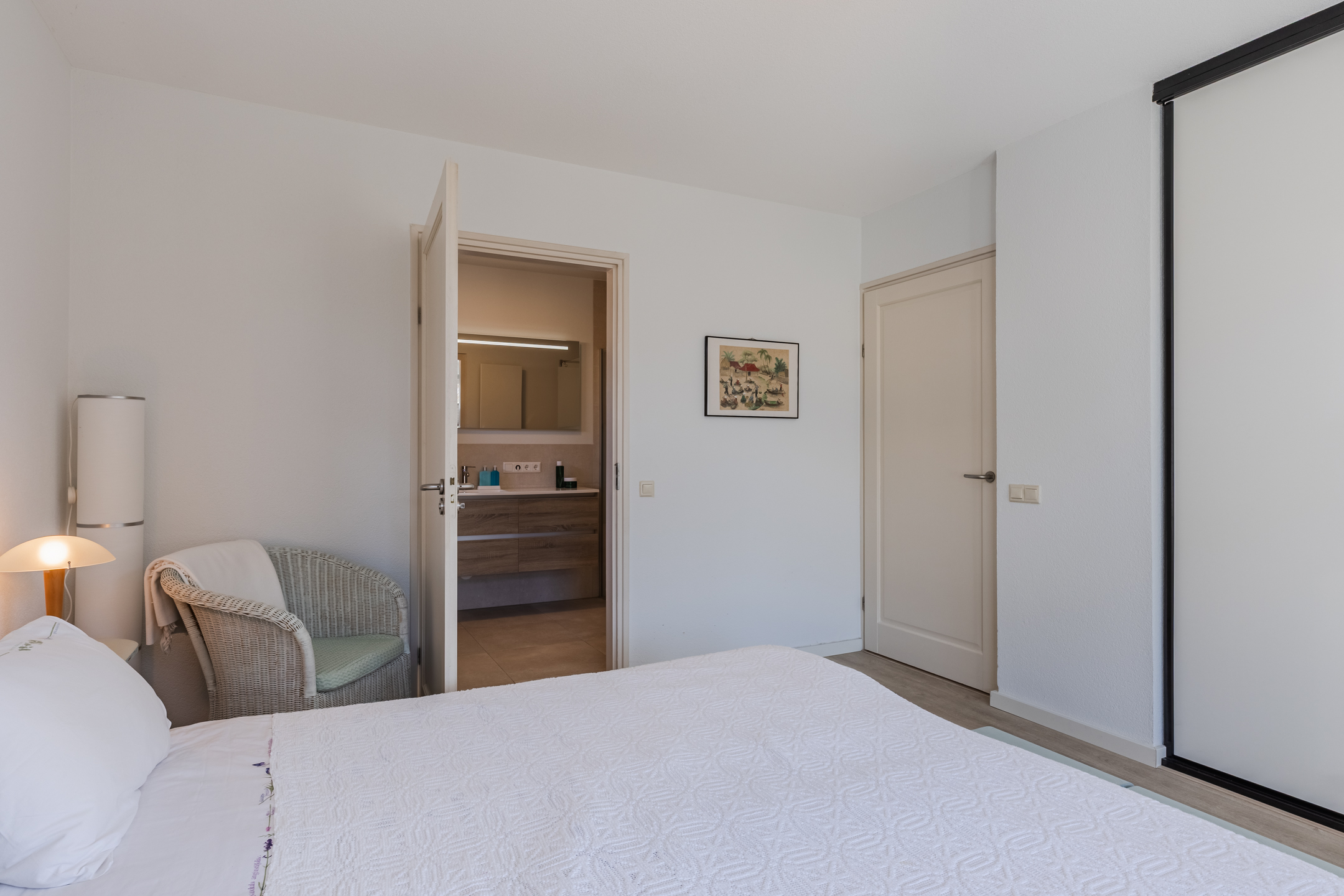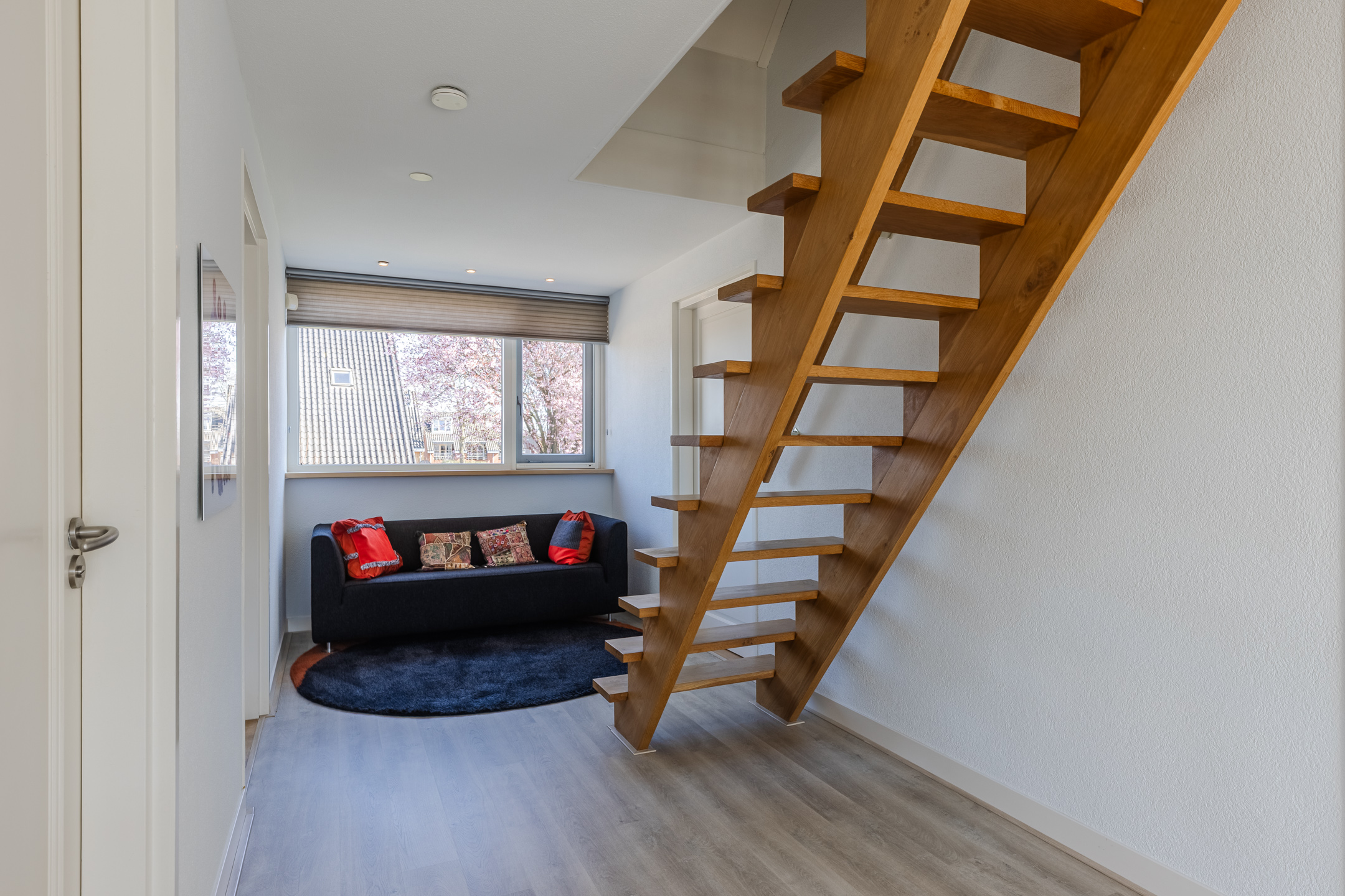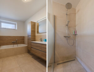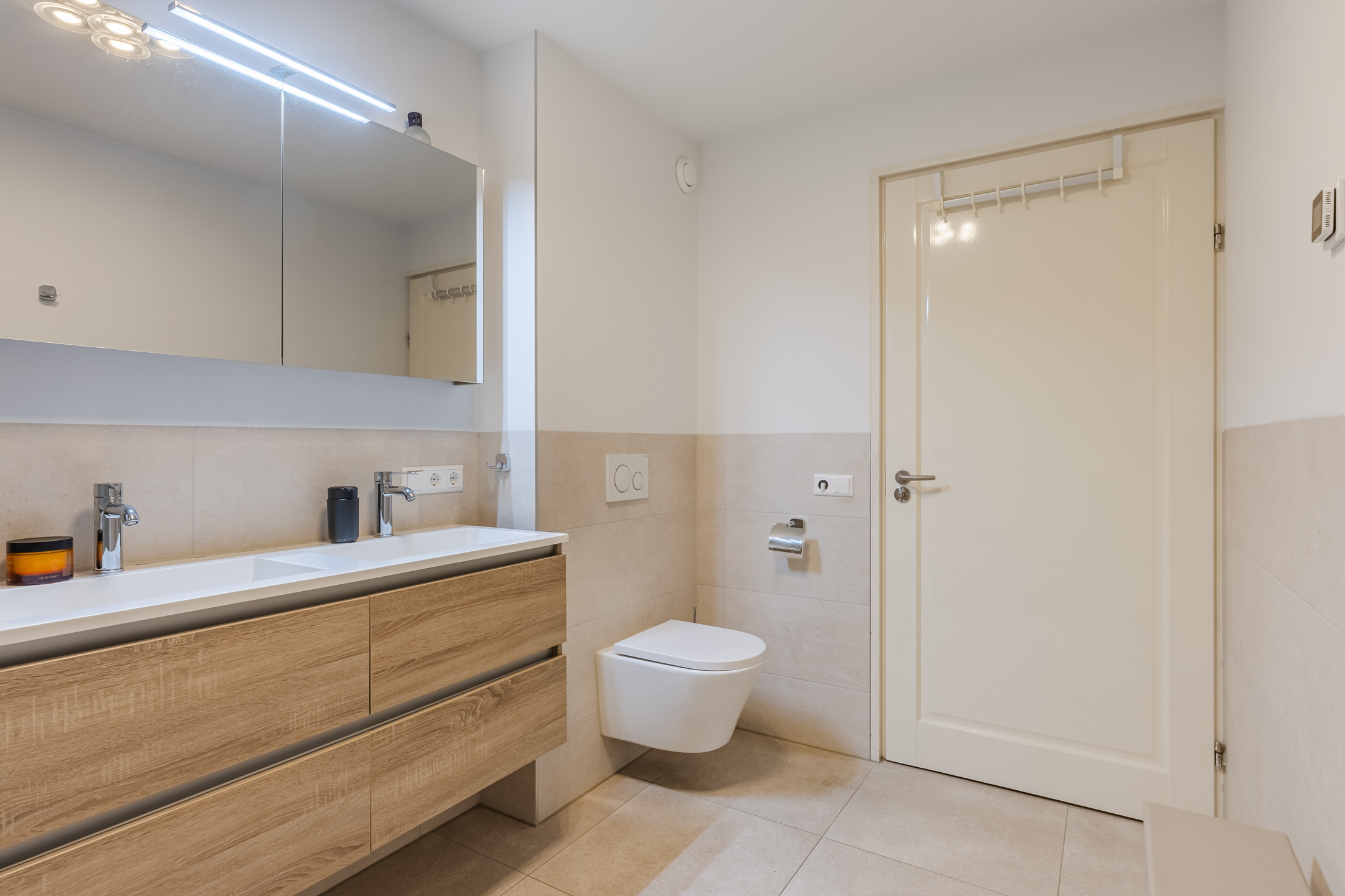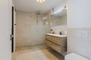 De tweede luxe badkamer is eveneens in 2021 vernieuwd en voorzien van een inloopdouche, dubbele wastafel met spiegel, tweede wandcloset en vloerverwarming. De gehele eerste verdieping is voorzien van een nieuwe vloerafwerking.