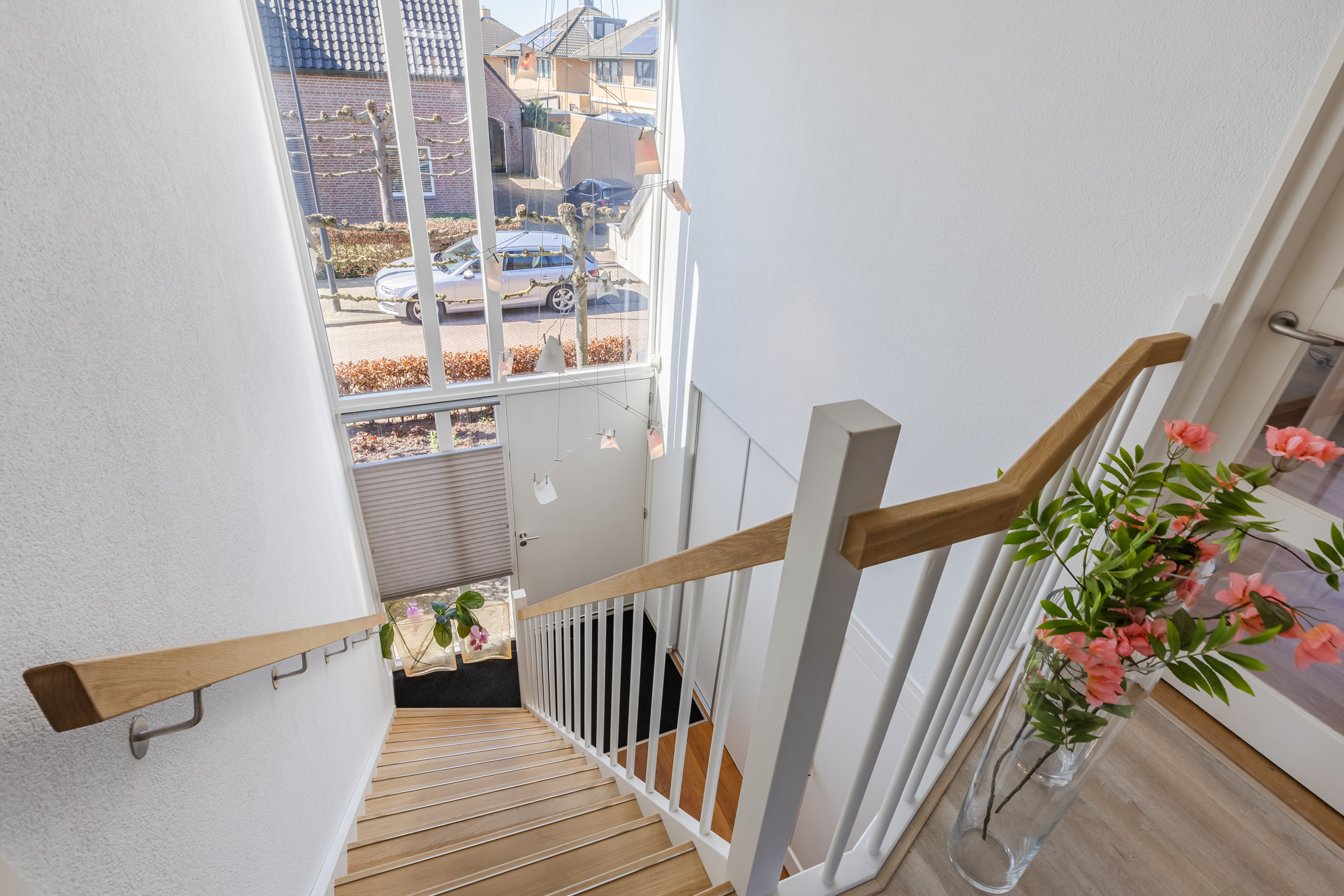 De ruime overloop met vide, dakkapellen aan de voor- achterzijde en diverse inbouwspots geeft toegang tot: