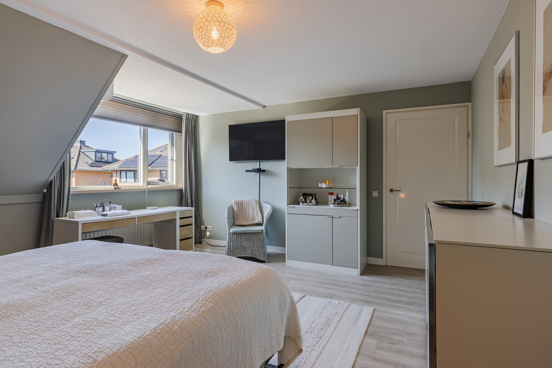 - Slaapkamer 2 van ca. 20m², gesitueerd aan de voorzijde van de woning, voorzien van een dakkapel en airconditioning.