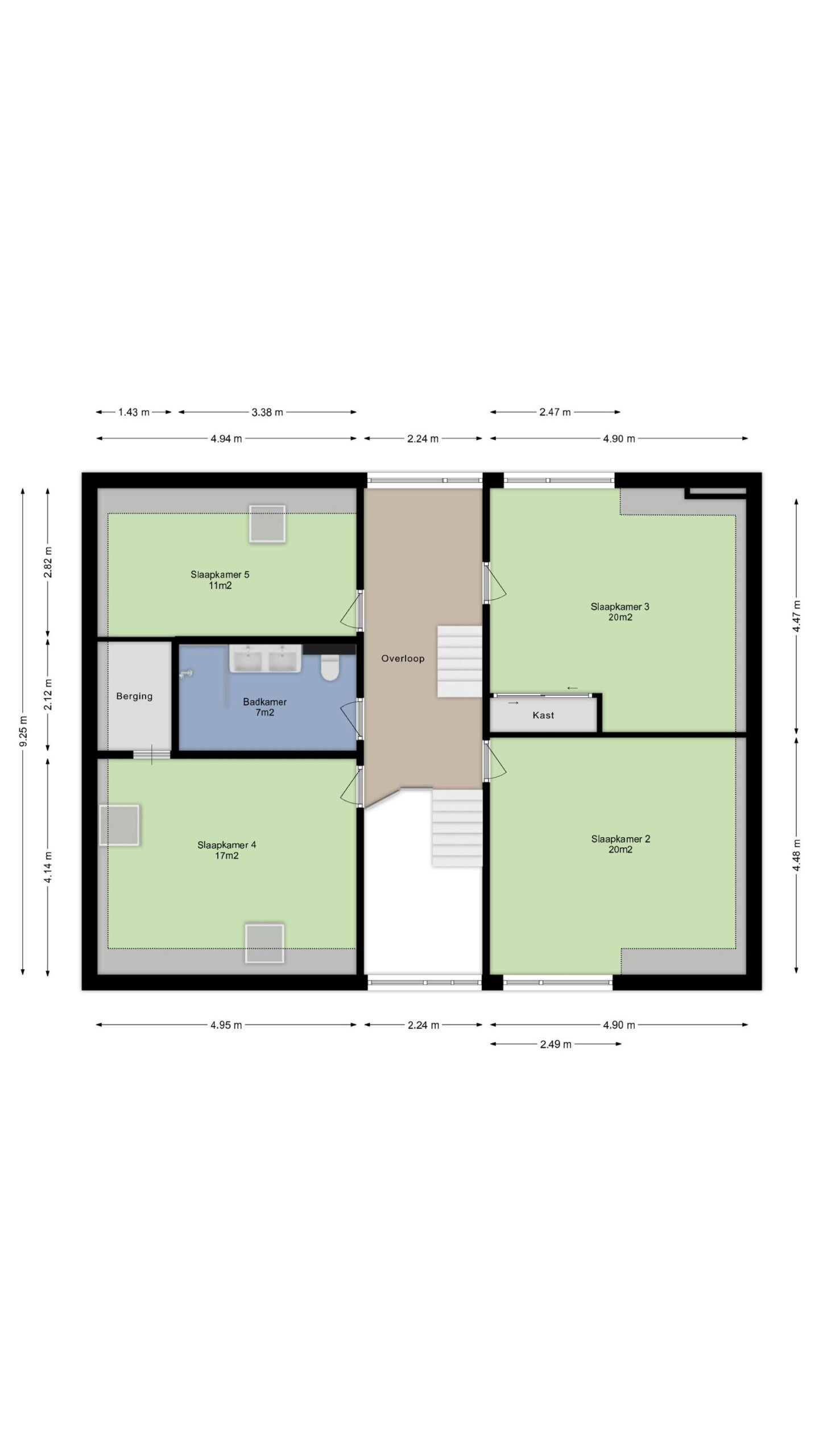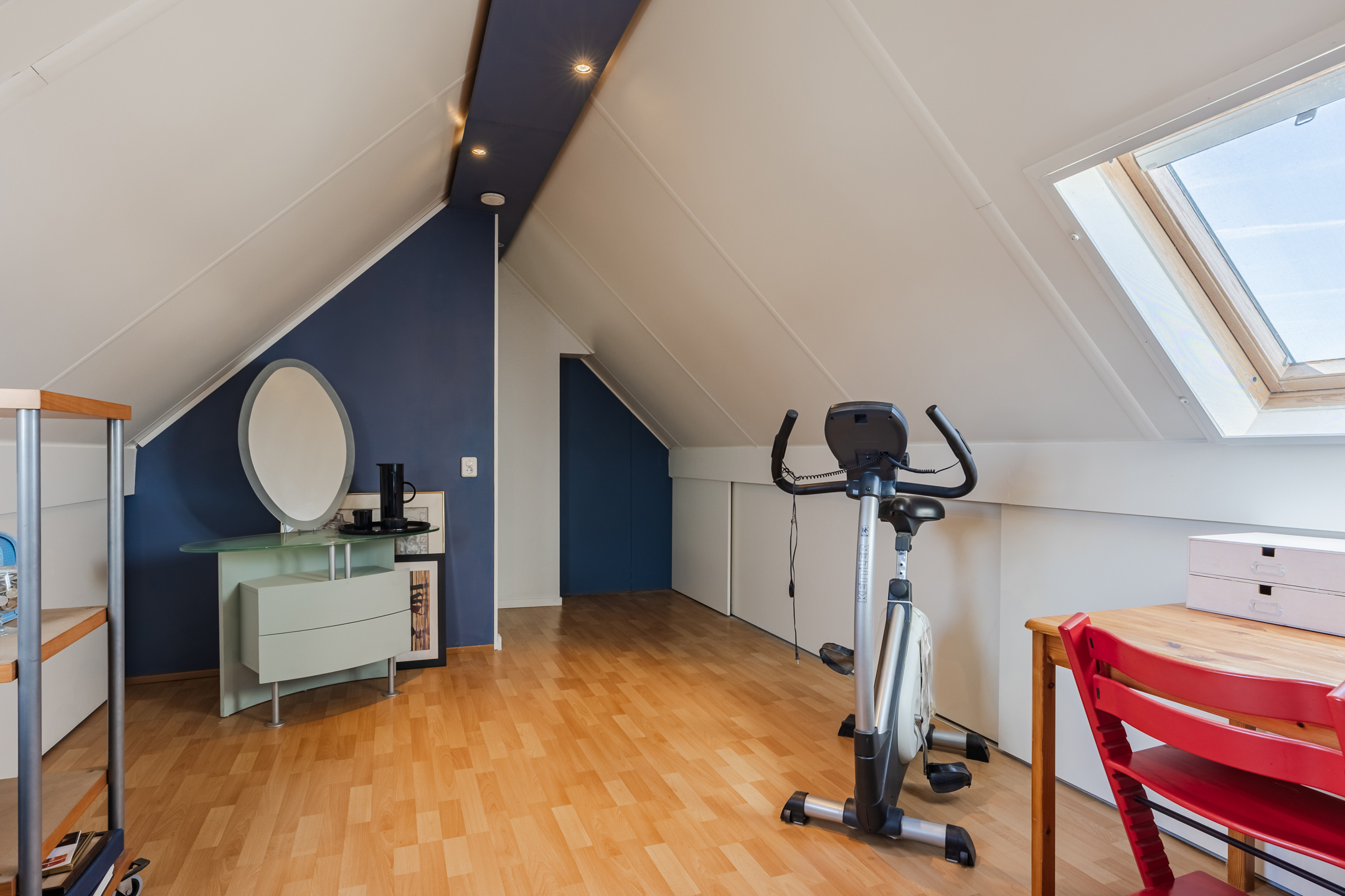 - Slaapkamer 4 van ca. 17m², gesitueerd aan de voorzijde van de woning, voorzien van twee Velux dakramen en een praktische berging.