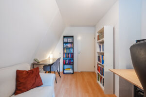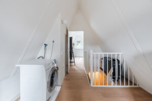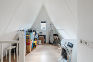 Middels een vaste trap bereikt u de zolderverdieping. De ruime voorzolder/overloop is voorzien van een vaste kast. Ook treft u hier de aansluitingen voor de wasapparatuur en de unit voor de mechanische ventilatie. Via de voorzolder komt u in de vierde slaapkamer van ca. 10m² welke is voorzien van een raam in de gevel en een dakraam, hierdoor is de kamer aangenaam licht. Op de grond ligt een laminaatvloer.