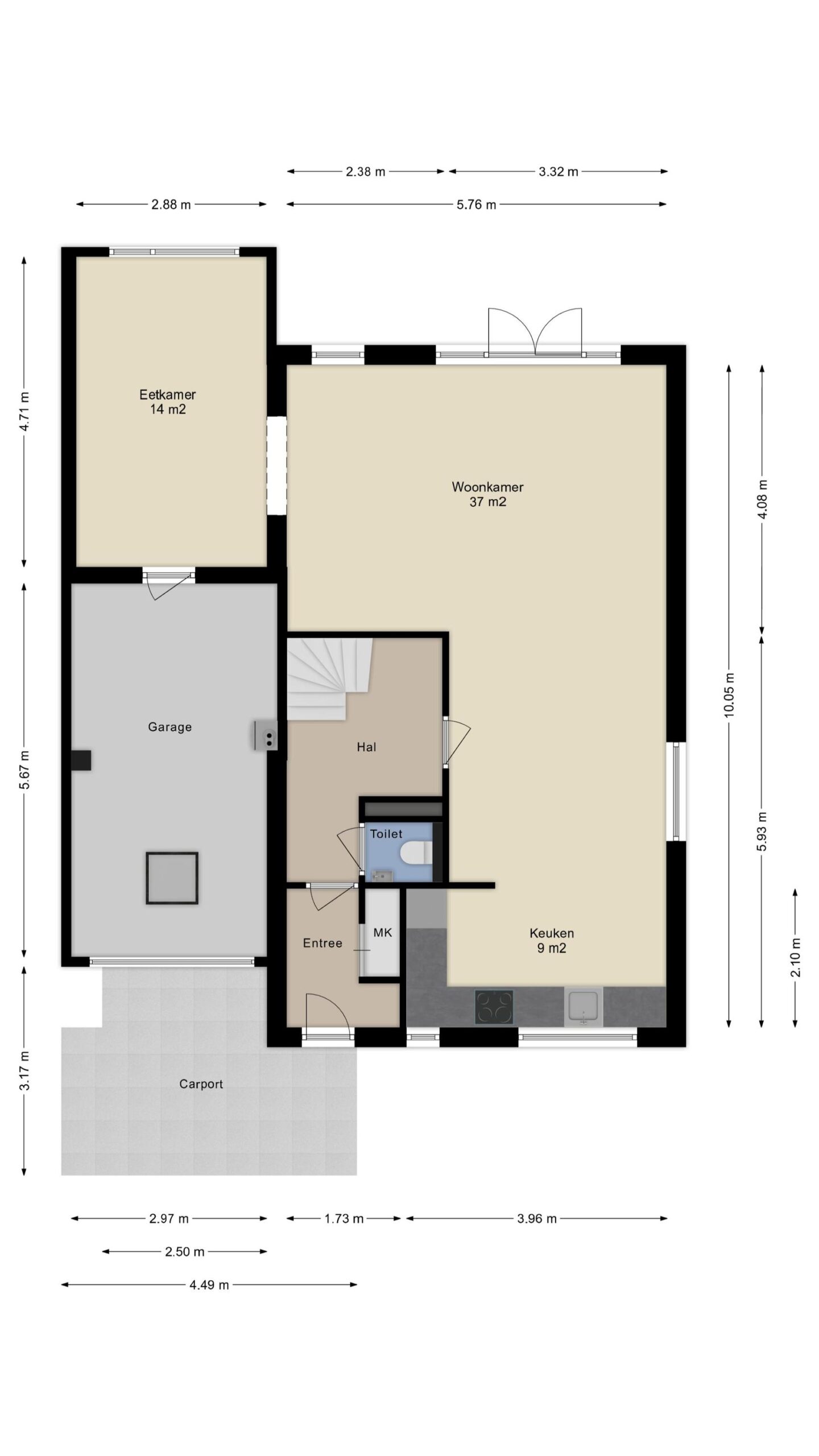 - Mogelijkheid tot het creëren van slaap- en badkamer op de begane grond.