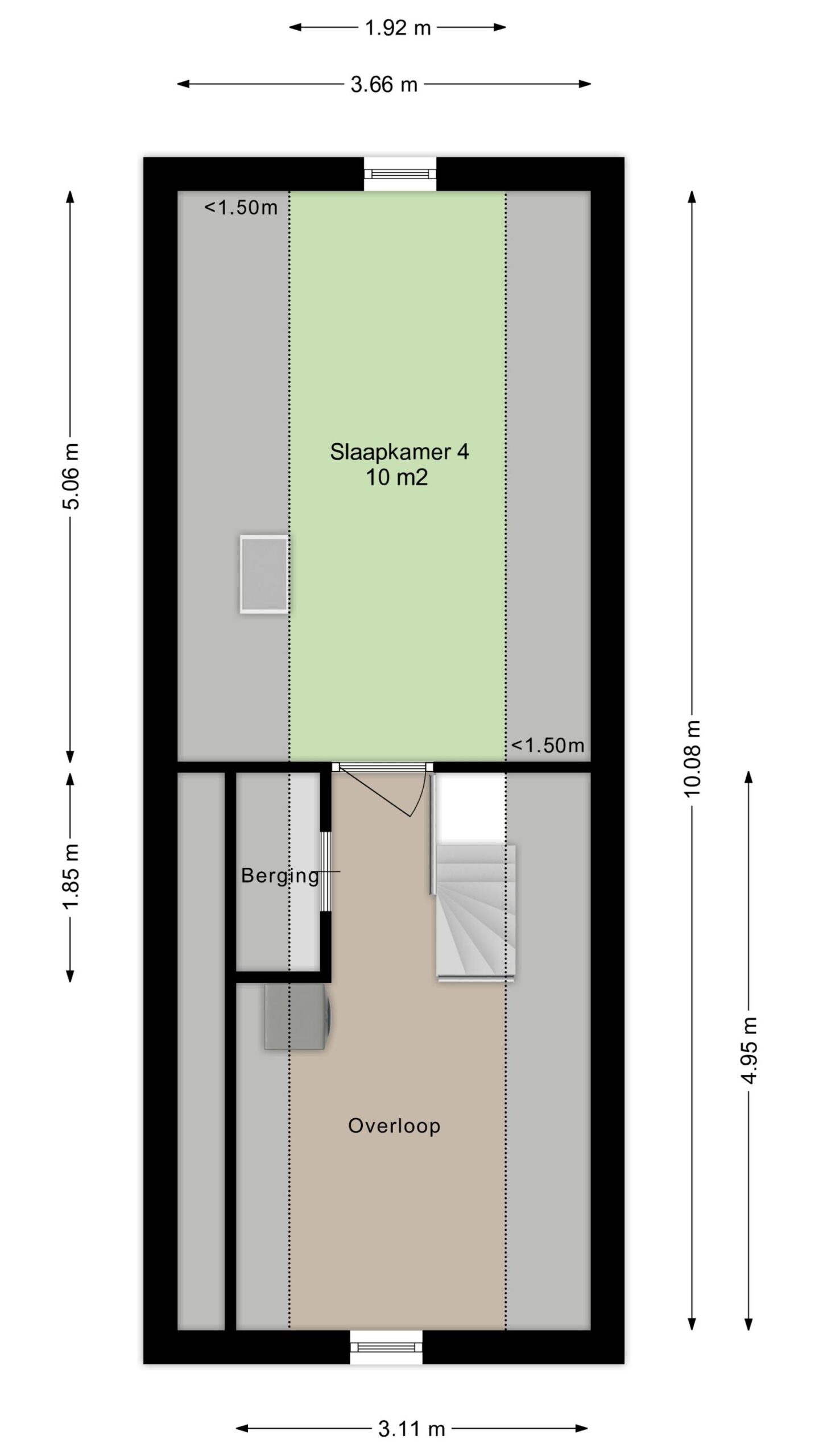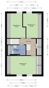 - Slaapkamer 2 van ca. 10m²: is gelegen aan de achterzijde van de woning.