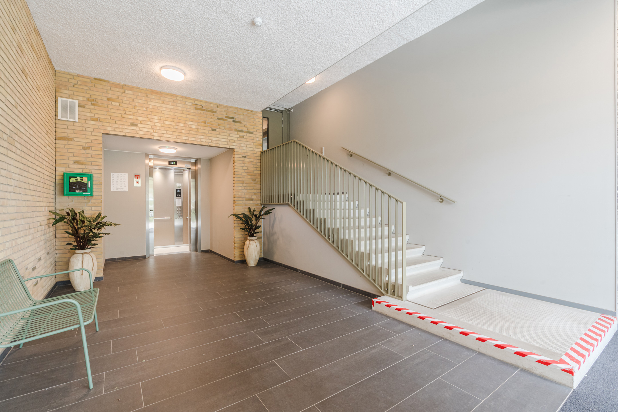 Entree/hal met video/bellentableau. Vanuit de hal is de lift te bereiken en het trappenhuis met toegang naar de parkeerplaatsen, bergingen en de appartementen.
