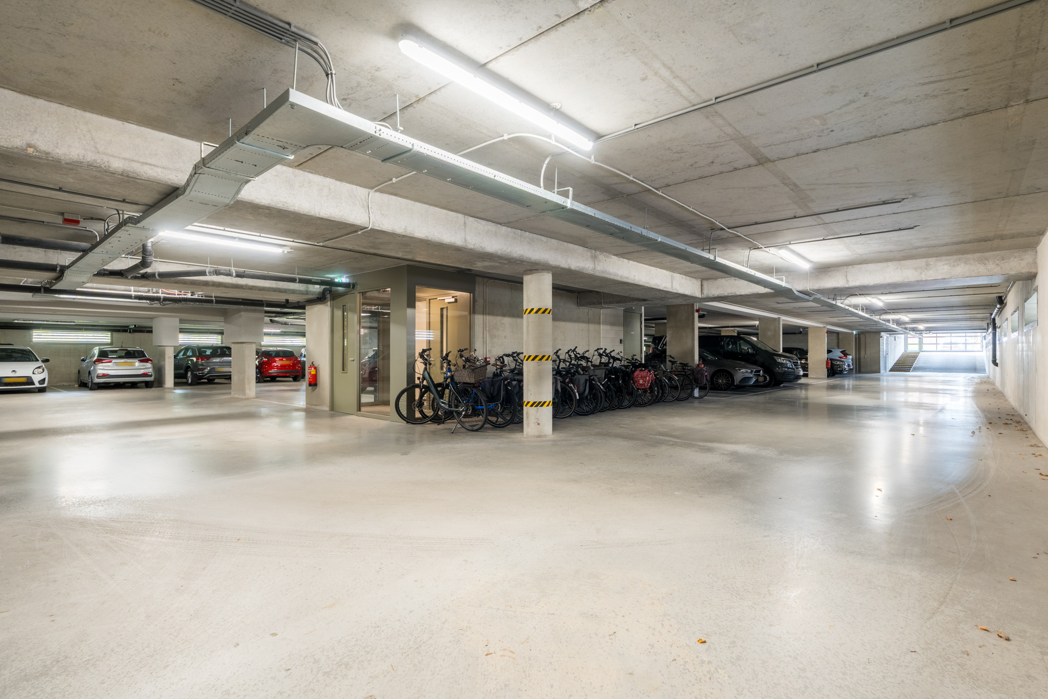Uw auto parkeert u veilig op een eigen plek in de ondergelegen parkeerkelder. Ook is er een eigen afsluitbare berging op de begane grond van ca. 5m² en een algemene fietsenberging.