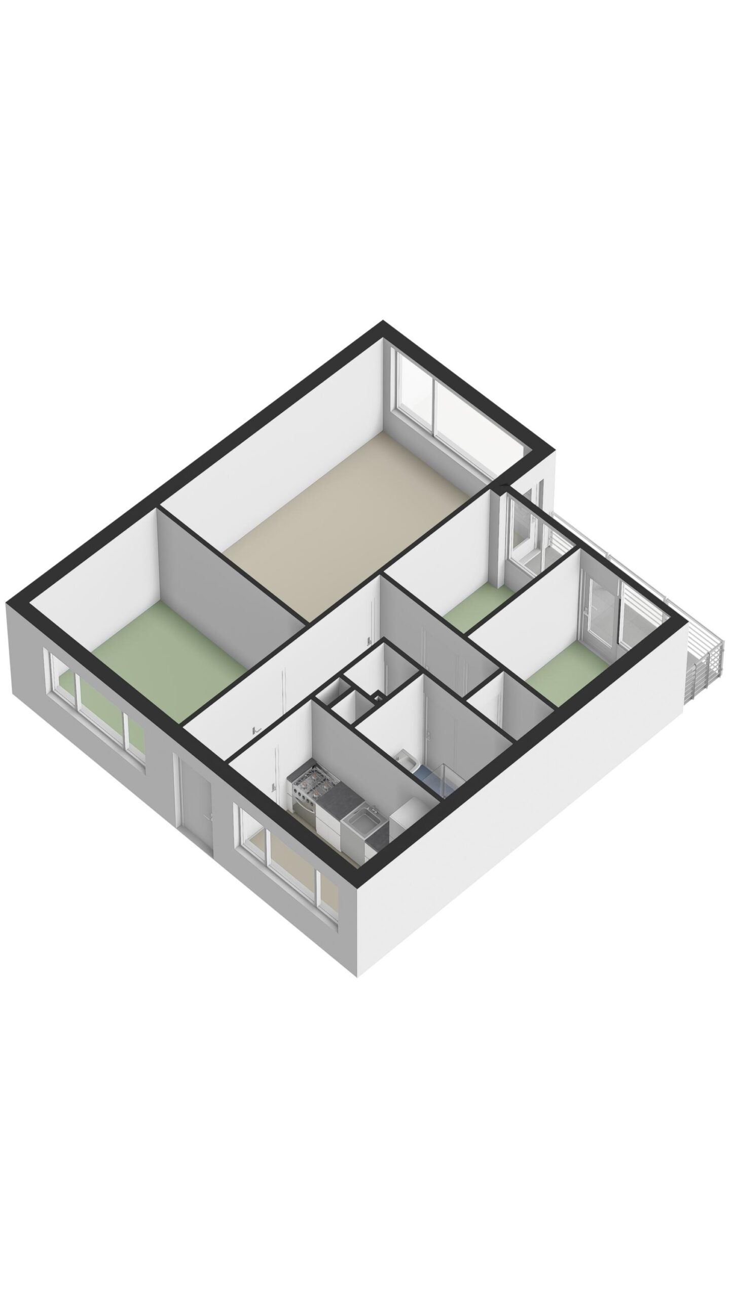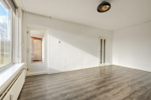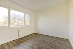 De twee kleinere kamers kunnen eenvoudig worden samengevoegd tot een grote tweepersoonsslaapkamer. Ook is het mogelijk om één van de slaapkamers te betrekken bij de woonkamer. Alle slaapkamers zijn voorzien van een laminaatvloer in moderne kleurstelling en vliesbehang wandafwerking.