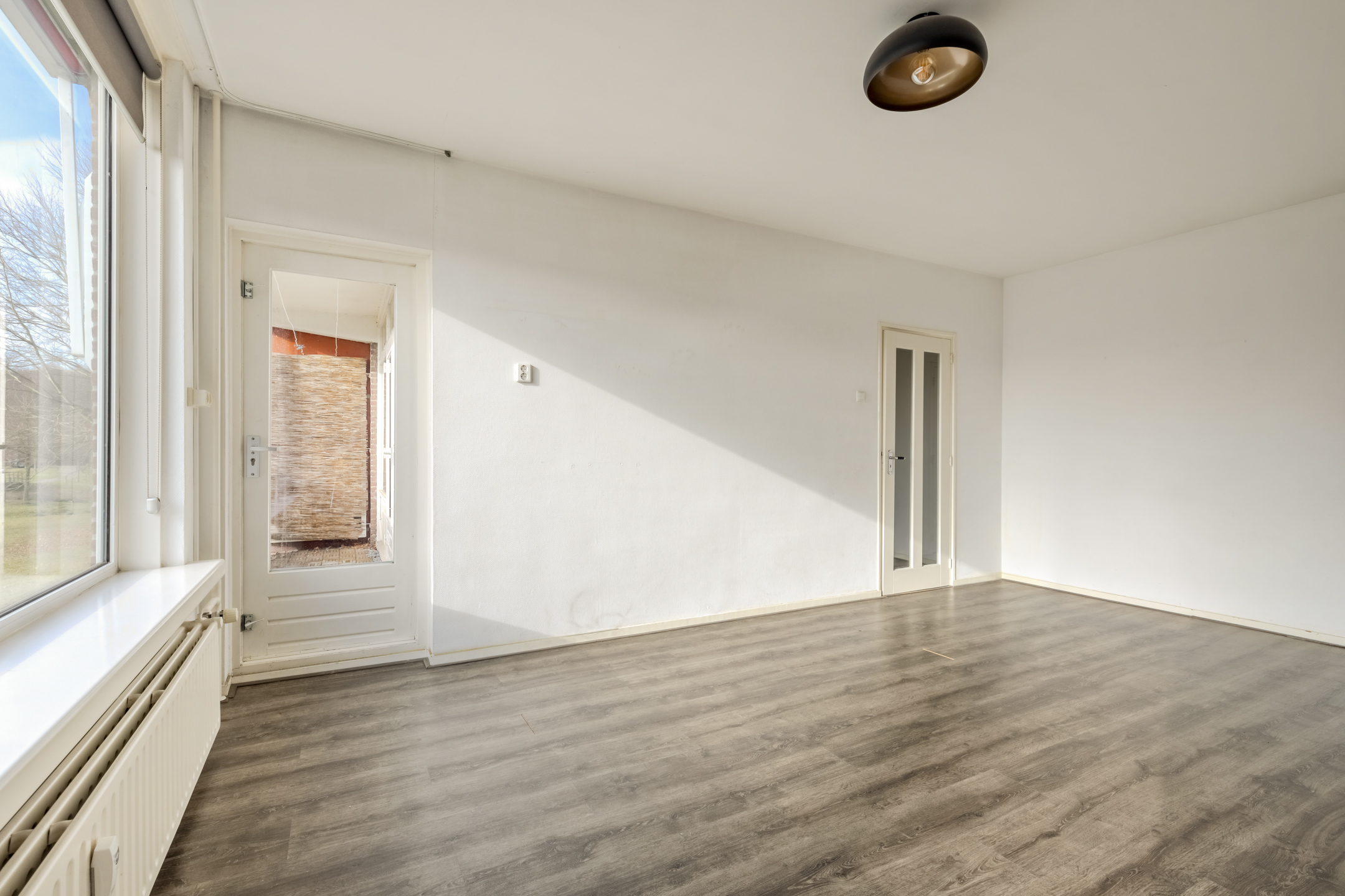 Via de galerij bereikt u de hal/entree. De hal met vernieuwde meterkast en bergkast (v.v. wasmachineaansluiting en huurboiler) geeft u toegang tot alle vertrekken. Op de grond ligt een laminaatvloer in moderne kleurstelling en de wanden zijn voorzien van vliesbehang. De lichte woonkamer van ca. 21m² is gelegen aan de achterzijde van het appartement en geeft een fraai zicht over het Lukwelpark. Doorlopend vanuit de hal ligt er op de grond een laminaatvloer en de wanden zijn afgewerkt met vliesbehang. Vanuit de woonkamer heeft u toegang tot het balkon. Het balkon is gelegen op het zonnige zuiden, waar u veel privacy heeft en eveneens zicht heeft op het Lukwelpark. Ter hoogte van het balkon en het raam van de woonkamer is een elektrisch zonnescherm aanwezig.