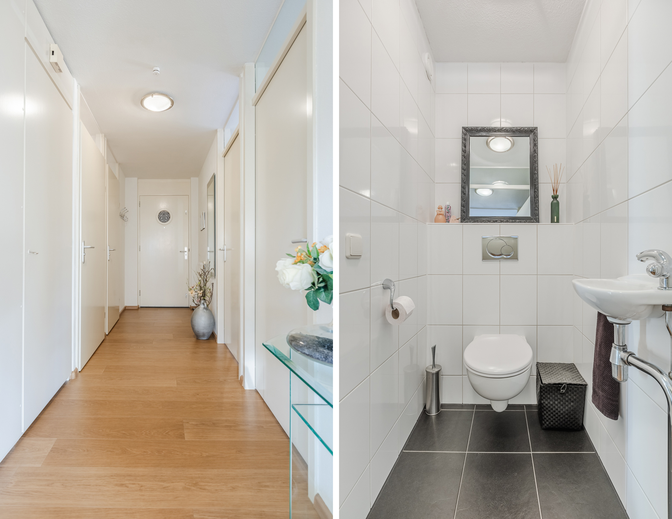 De hal, slaapkamers en de woonkamer zijn allen voorzien van laminaatvloeren.
