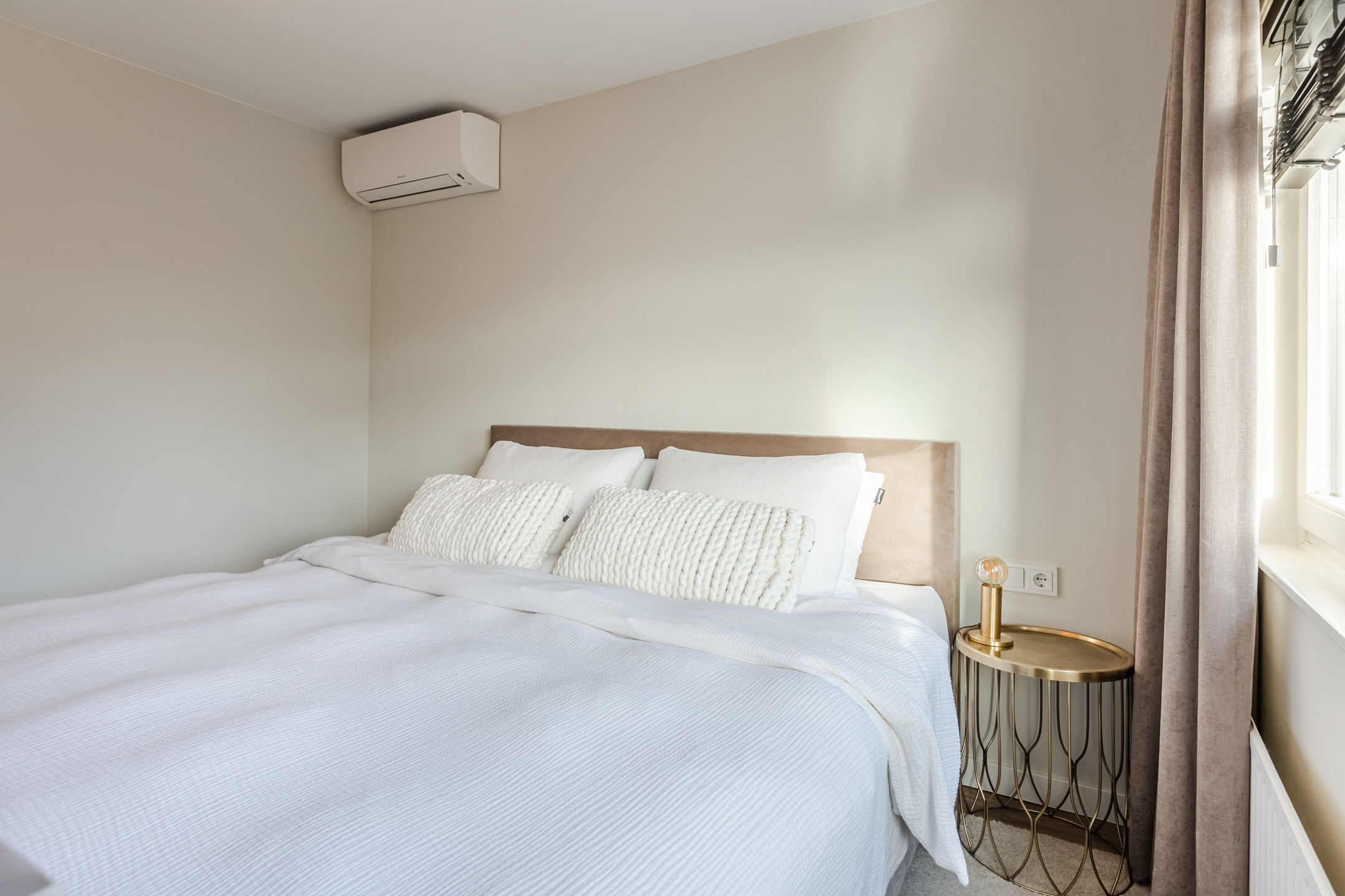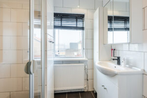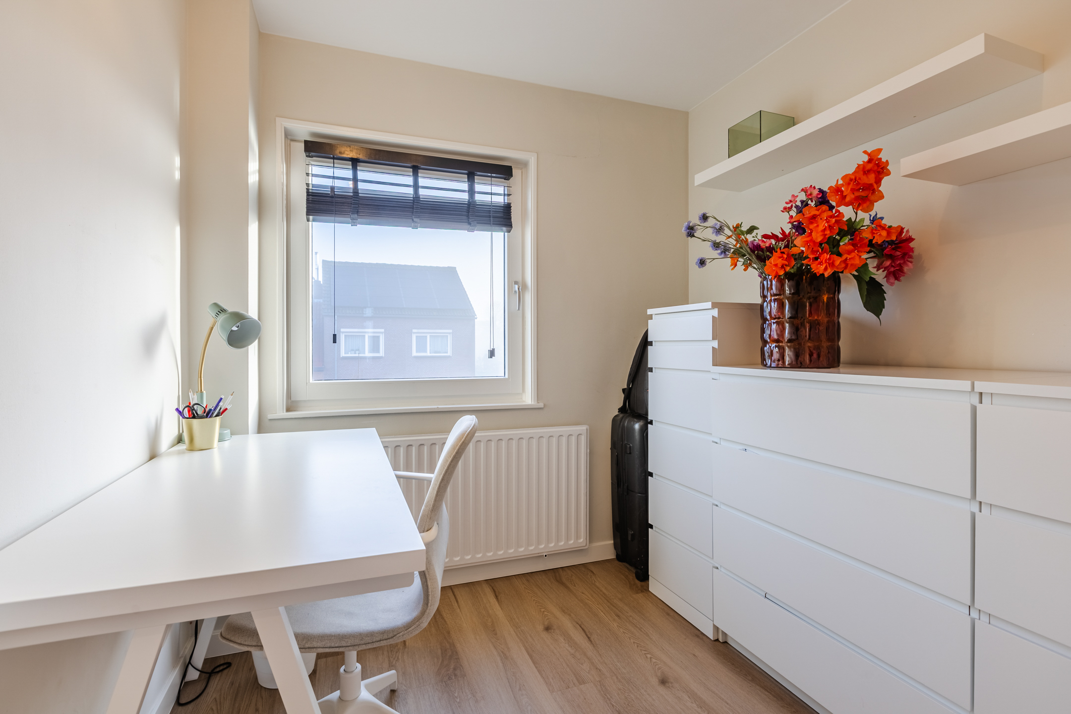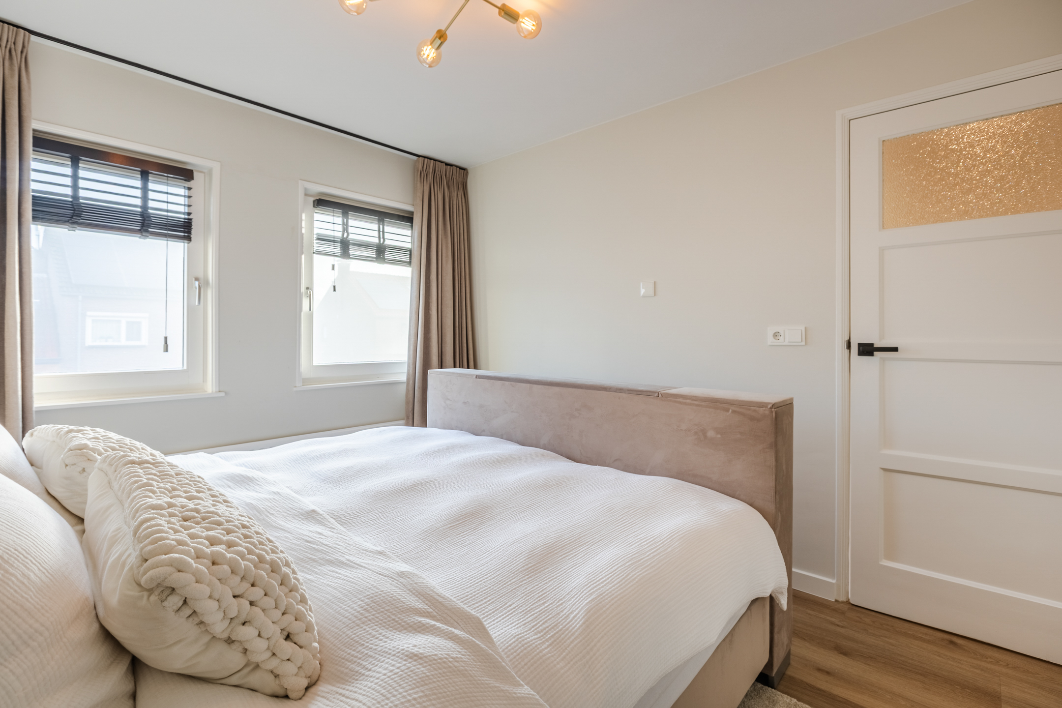 Overloop met een handige vaste kast en een vaste trapopgang naar de tweede verdieping. Hoofd/voor-slaapkamer (ca. 3,38x2,90m) met airconditioning (koelen en verwarmen) voor-slaapkamer (ca. 2,39x2,25m) en de achter-slaapkamer (ca. 2,90x2,88m). Geheel licht betegelde badkamer met een inloopdouche en een wastafel. De badkamer beschikt over daglichtinval! De overloop en de slaapkamers zijn allen voorzien van een fraaie laminaatvloer.