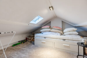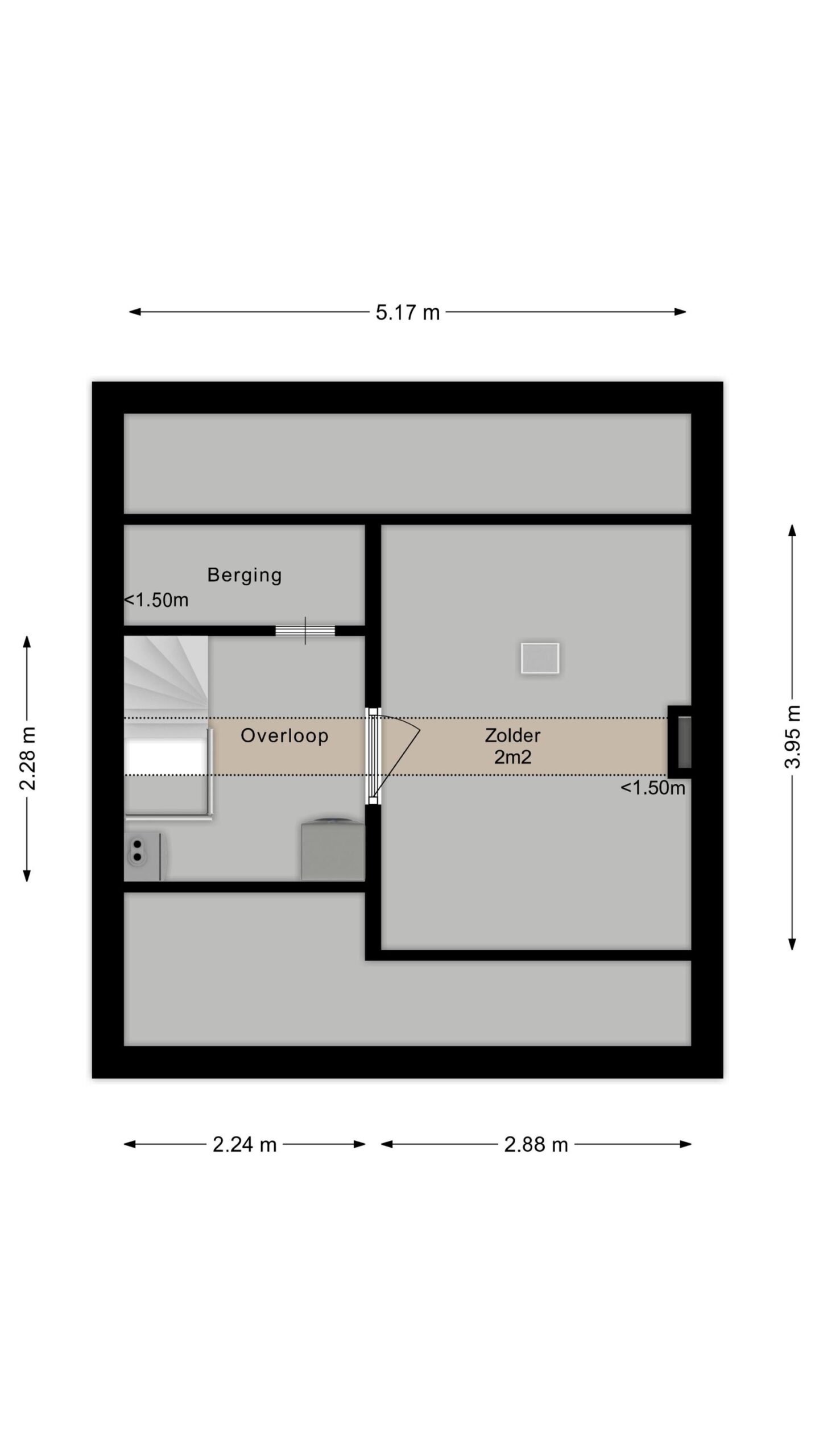 Praktische zolderruimte welke is opgedeeld in een voorzolder met opstelplaats van de CV-combiketel (Remeha Avanta uit ca. 2011), de unit tbv de mechanische ventilatie, de aansluitingen ten behoeve van de wasapparatuur en een logeerruimte met dakraam. Het is een goed bruikbare ruimte maar gezien de geringe nok-hoogte valt deze buiten de genoemde woonoppervlakte.