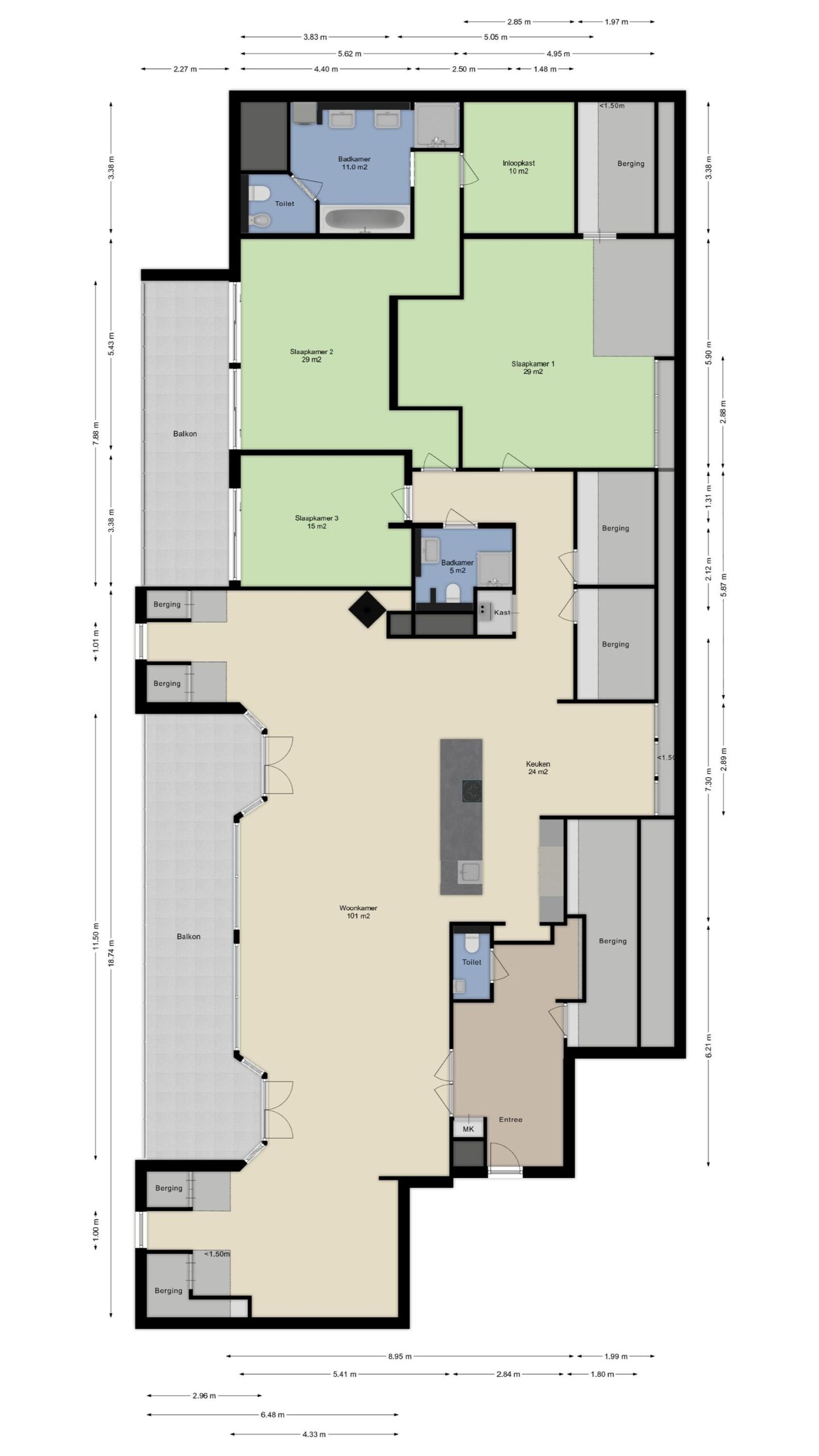 - In het hoofdgebouw bevindt zich de eigen berging met een afmeting van ca. 37m².