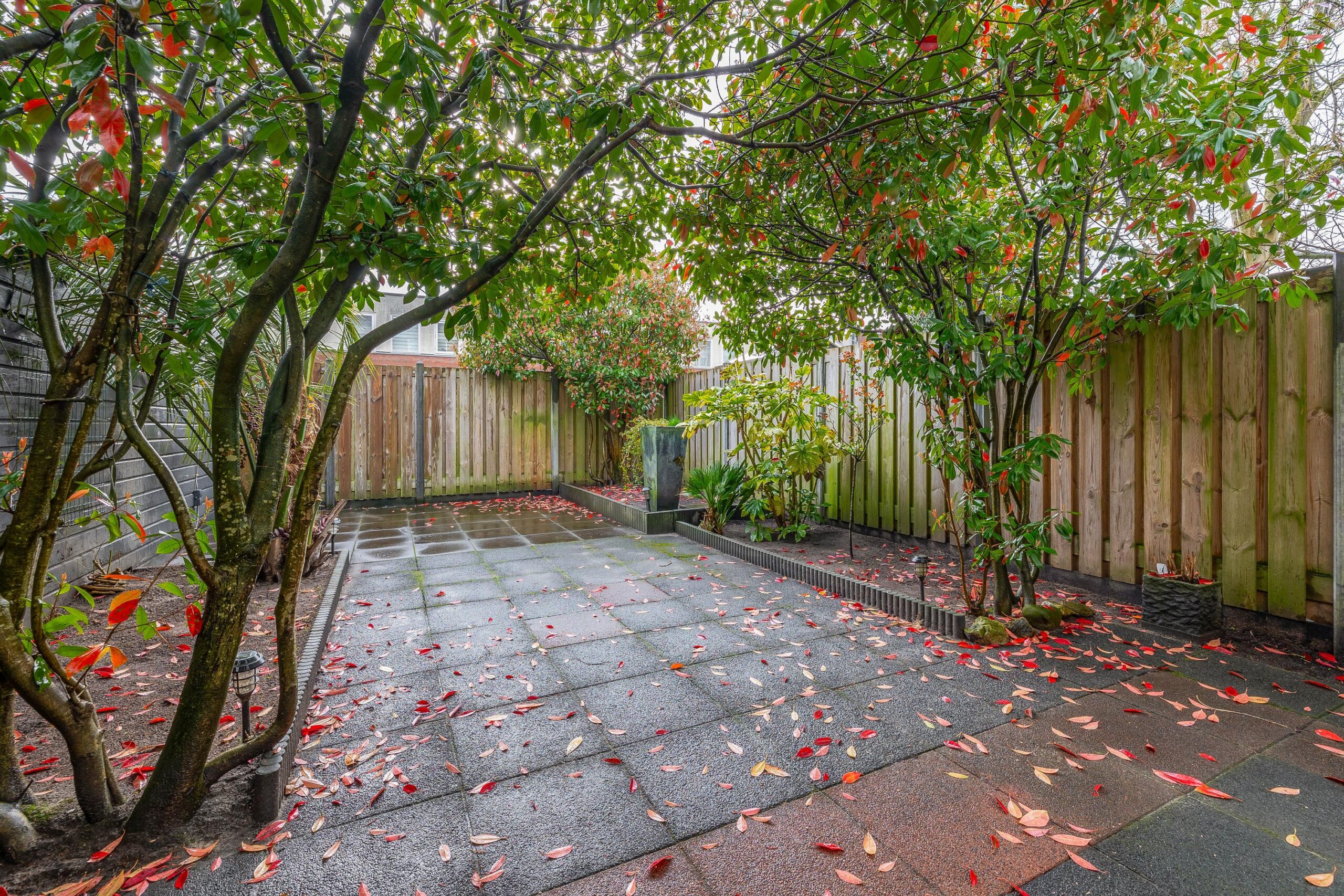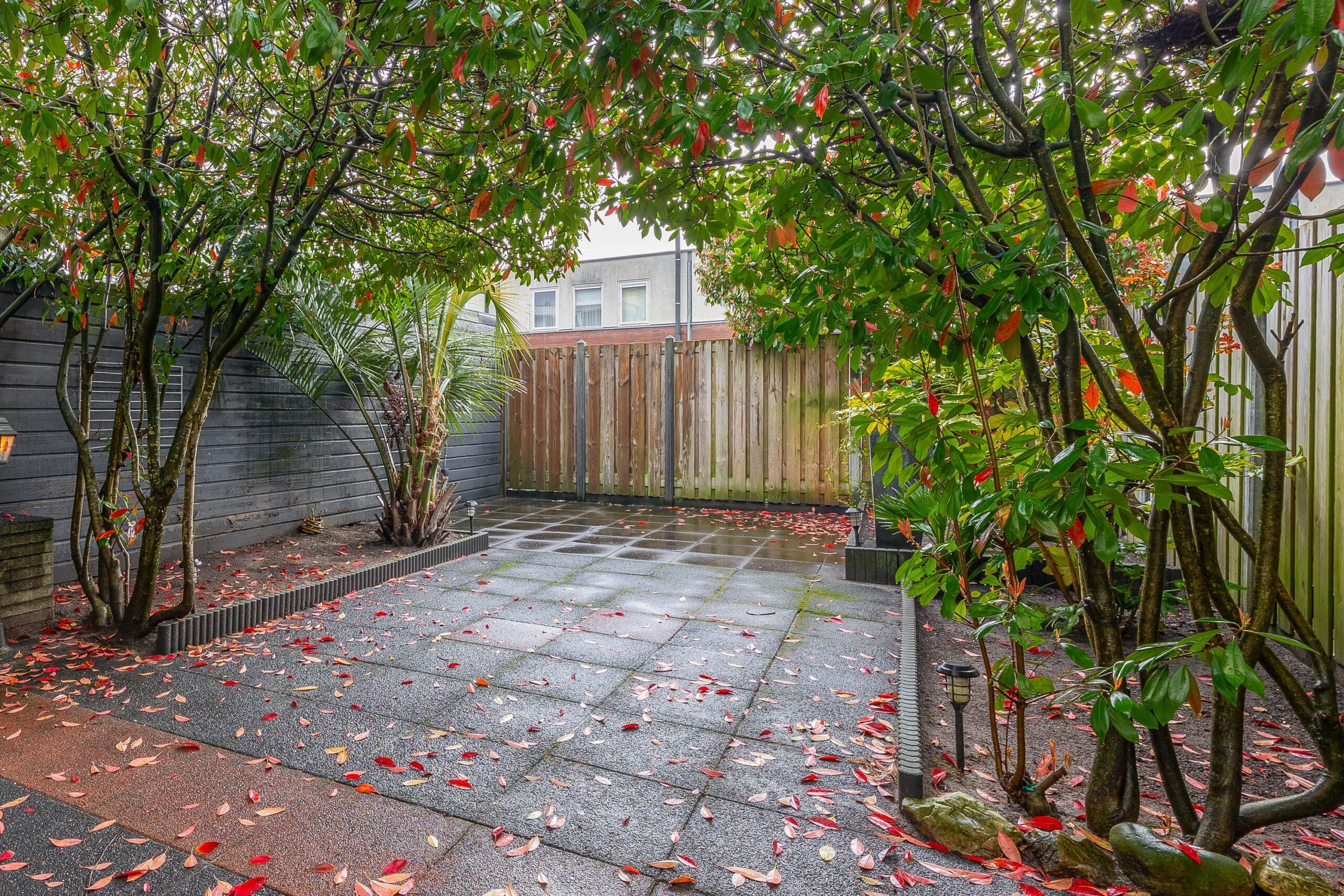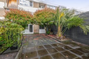 De woning beschikt over een voortuin, welke ruimte biedt voor het parkeren van uw auto's en een ruime, fraai aangelegde achtertuin met diverse bomen en planten gelegen op het zonnige zuidoosten met de mogelijkheid tot achterom.