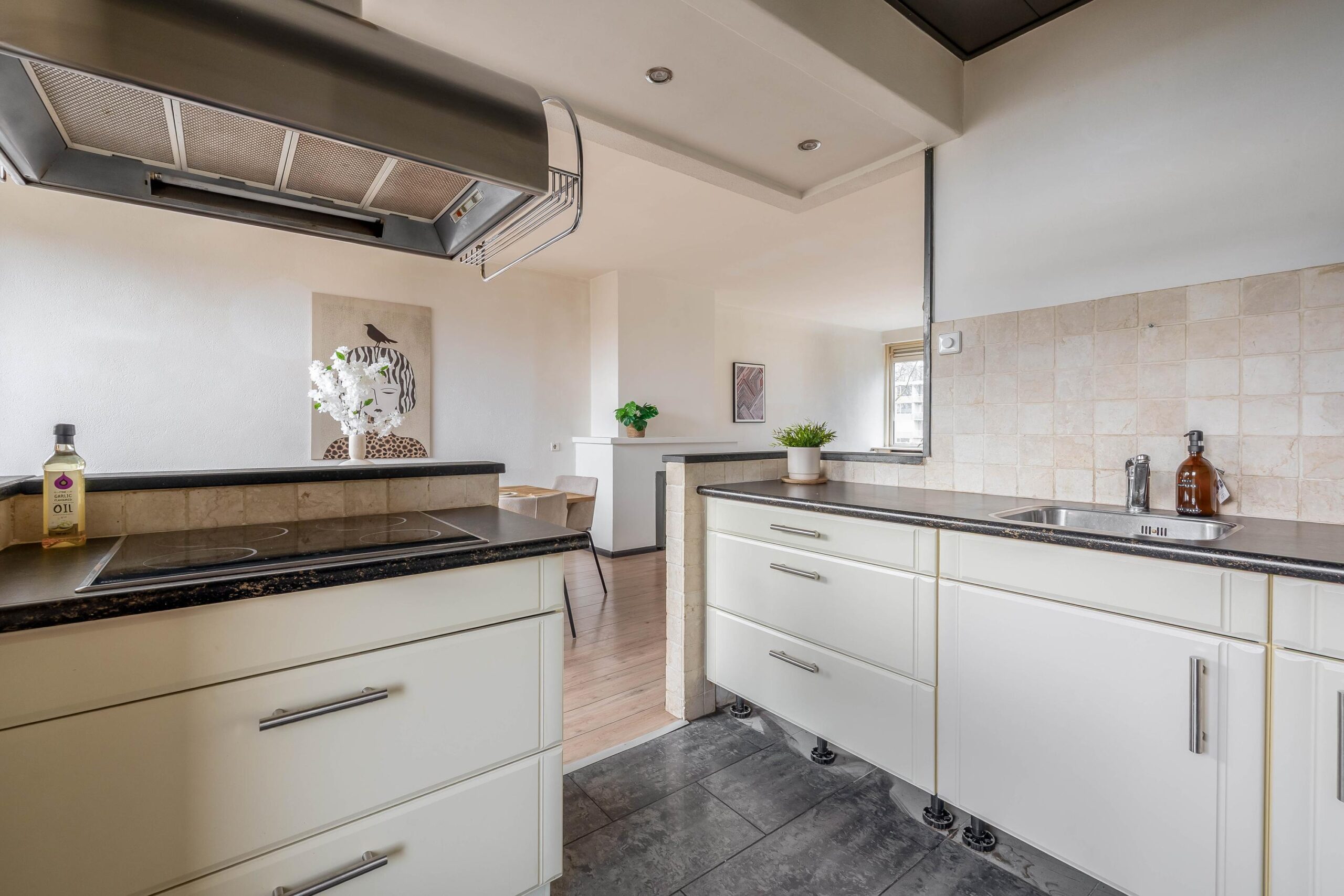 Deze voormalige drive-inwoning is in Oosterhout-Zuid gelegen, op loopafstand van winkelcentrum 'Zuiderhout' en met aan de voorzijde een vrije ligging aan een groenvoorziening. De woning beschikt op de begane grond in plaats van de oorspronkelijke garage over o.a. 2 royale slaap-/werk-/hobbykamers met eigen ingang en keuken, op de eerste verdieping over een sfeervolle woonkamer met een tweede keuken en toiletruimte en op de tweede verdieping over nog 3 royale slaapkamers en een badkamer. Het is gemakkelijk mogelijk om op de begane grond een woonkamer te creëren of een kantoor-/praktijkruimte. Tevens is de woning voorzien van meerdere balkons, een onderhoudsvriendelijke voortuin, welke ruimte biedt voor het parkeren van 2 auto's en een fraai aangelegde zonnige achtertuin gelegen op het zuidoosten.
