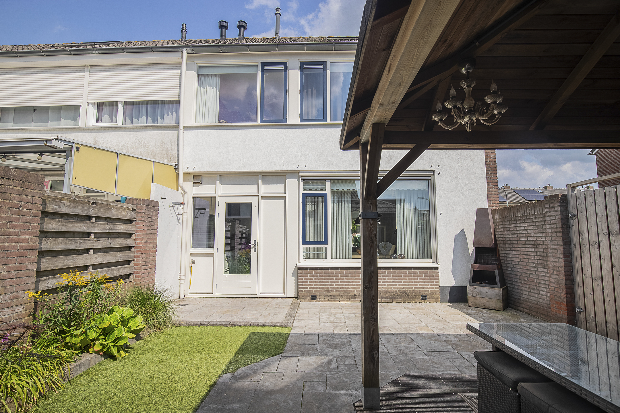 De woning beschikt over een leuk aangelegde op het westen georiënteerde achtertuin met overdekt terras en een onderhoudsvriendelijke voortuin. De vrijstaande garage van ca, 6,11x3,94m is in spouw gebouwd (ca. 2005) en bevindt zich achter op het perceel. Deze garage is voorzien van een geïsoleerde elektrisch bedienbare deur, muur-en dakisolatie.