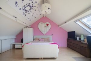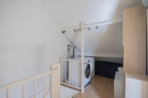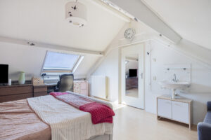 Voorzolder/overloop met de opstelplaats van de CV-ketel (Ferroli HR, 2016) en de aansluitingen ten behoeve van de wasapparatuur. Grote vierde slaapkamer van ca. 15m² welke is voorzien van een wastafel met warm- en koud wateraansluiting, groot dakraam aan de achterzijde en volop bergruimte achter knieschotten. De overloop en de slaapkamer zijn eveneens voorzien van een laminaatvloer.