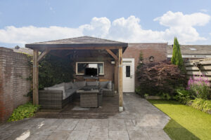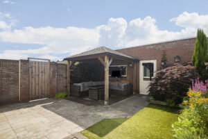 De woning beschikt over een leuk aangelegde op het westen georiënteerde achtertuin met overdekt terras en een onderhoudsvriendelijke voortuin. De vrijstaande garage van ca, 6,11x3,94m is in spouw gebouwd (ca. 2005) en bevindt zich achter op het perceel. Deze garage is voorzien van een geïsoleerde elektrisch bedienbare deur, muur-en dakisolatie.