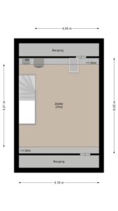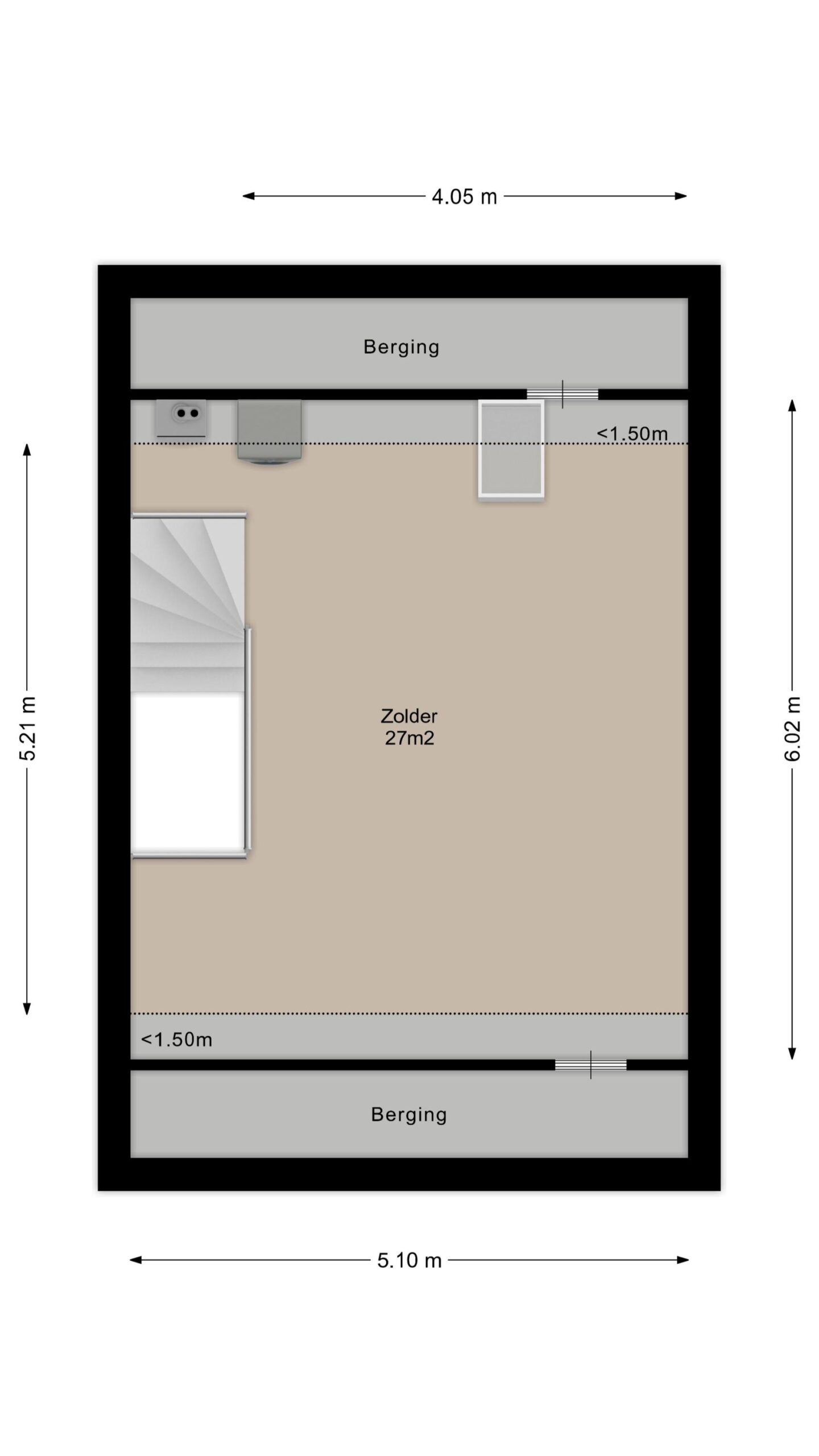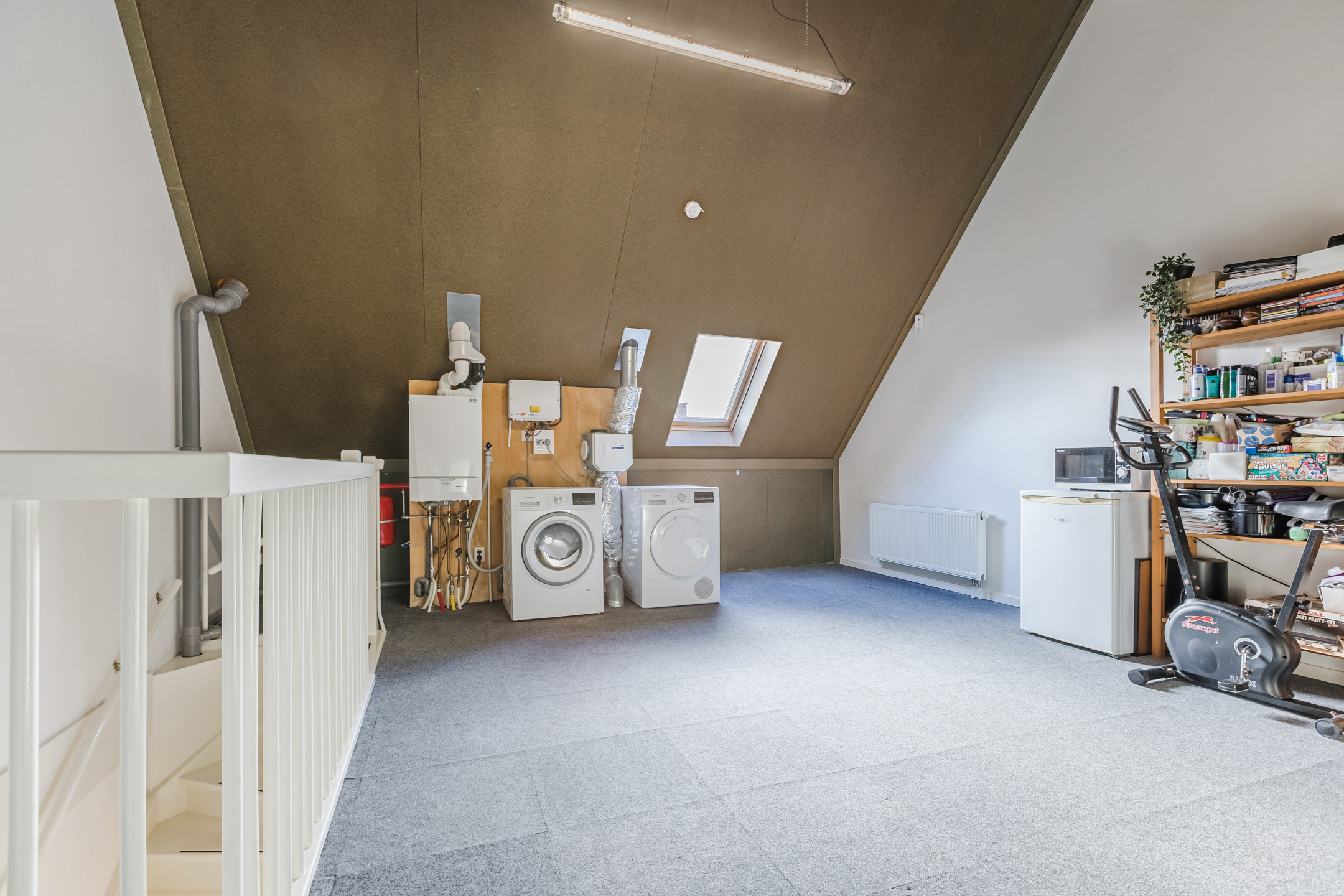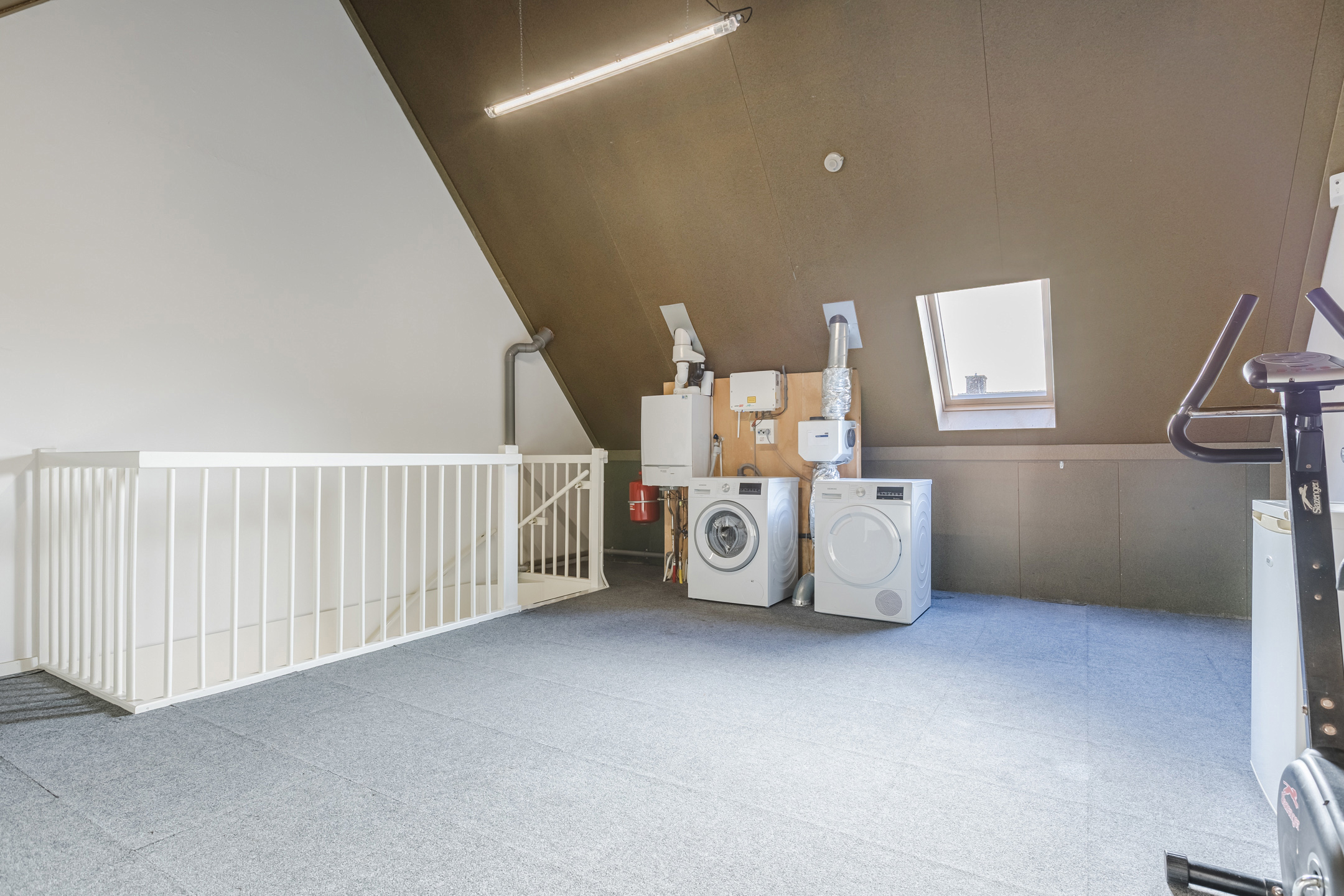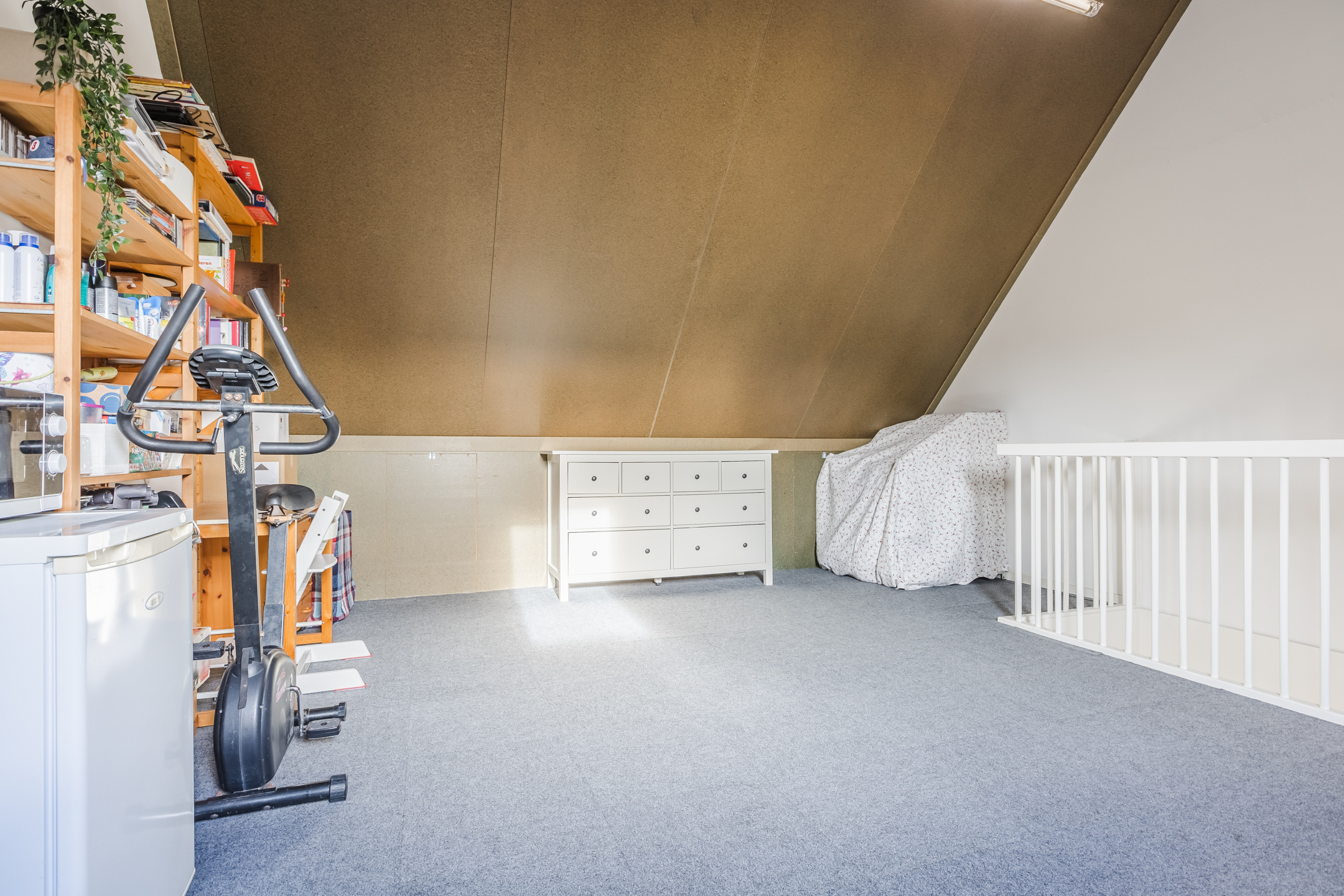 Ruime open zolder (ca. 27m²) met opstelplaats van de CV-ketel (Remeha uit 2016) en de Solar Edge omvormer (ten behoeve van de 8 zonnepanelen in eigendom). Verder zijn er de aansluitingen ten behoeve van de wasapparatuur en bergruimte achter schotten. Op deze verdieping bevindt zich een uitstekende mogelijkheid voor het realiseren van een grote 4e slaapkamer.