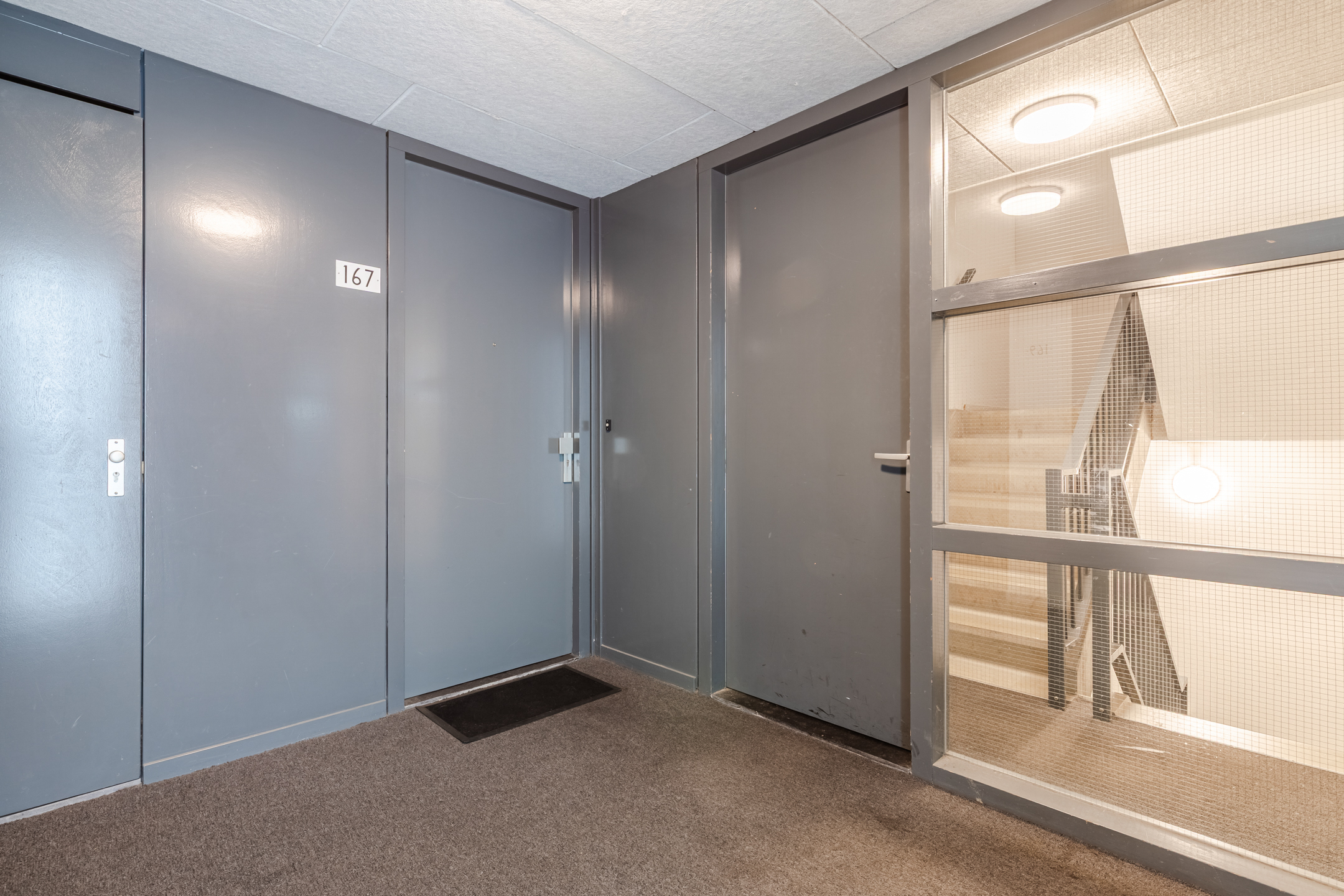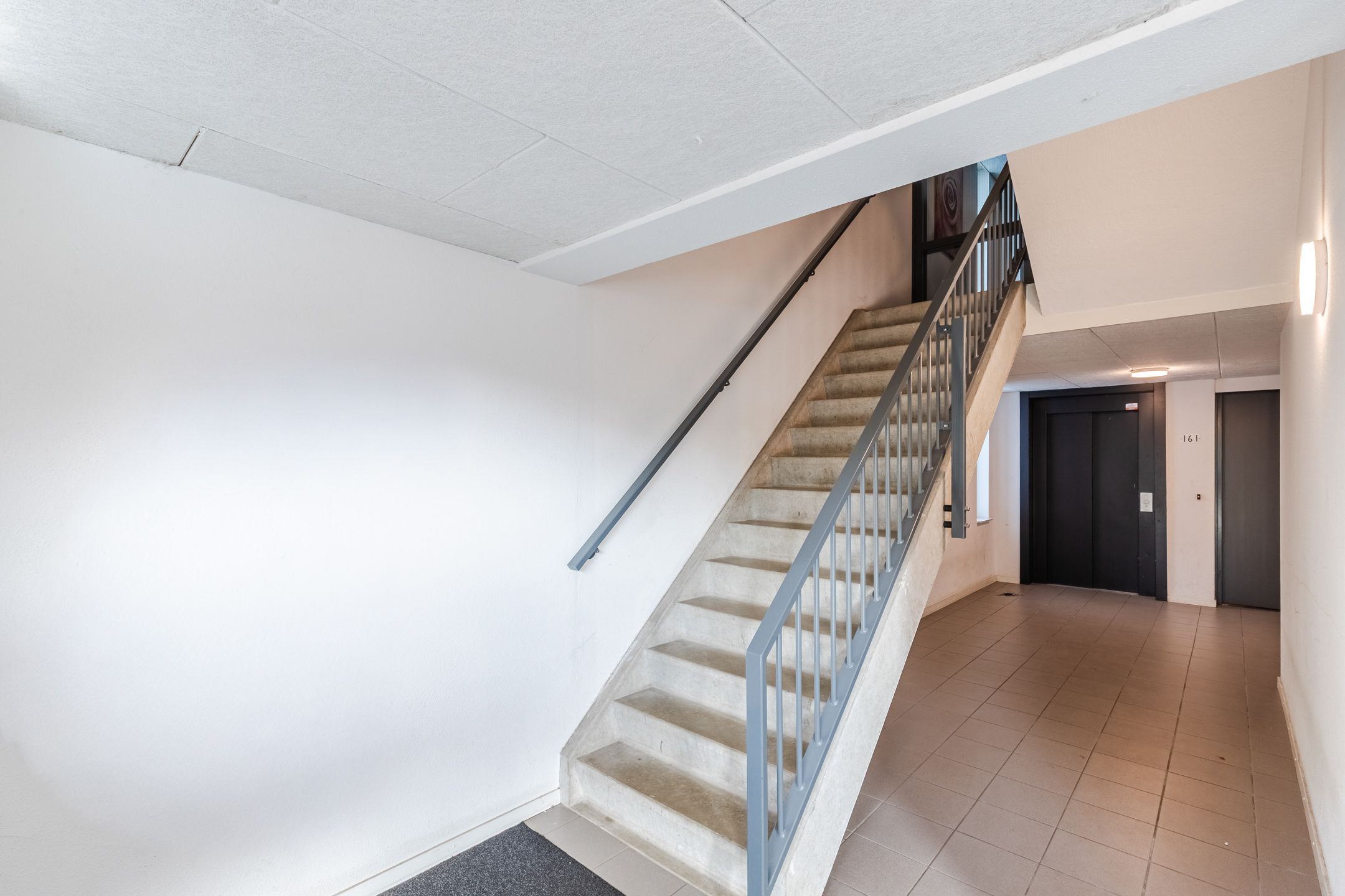 Afgesloten entree/hal met bellenplateau en brievenbussen, liftpartij en trappenhuis naar de verdiepingen en toegang de de op de begane grond gelegen bergingen.