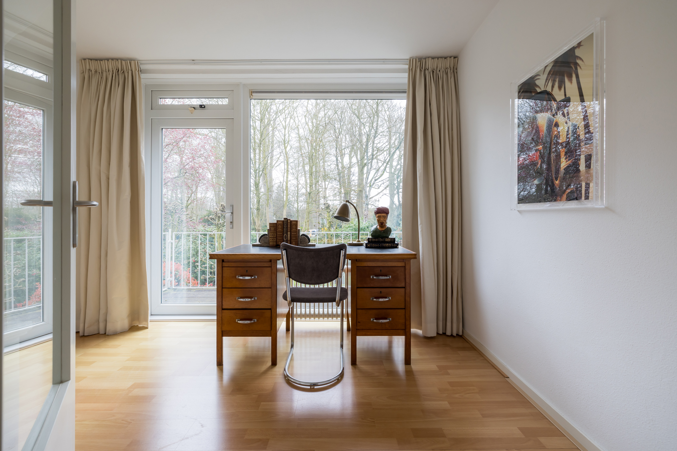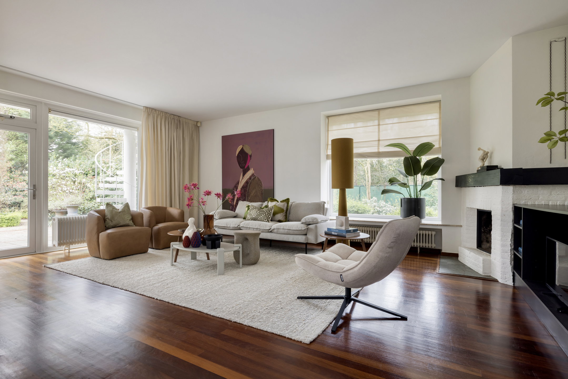 De grens met het naastgelegen park vervaagt subtiel. Het voelt groter dan je eigen perceel, zonder dat je inlevert op beslotenheid.