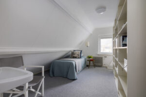 De indrukwekkende bibliotheek van circa 100 m² is daarin misschien wel het mooiste voorbeeld. Een ruimte met hoogte, licht en rust. Kortom een plek waar je automatisch langzamer gaat bewegen en helderder gaat denken.