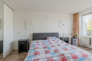 Overloop met een trapkast, vaste trapopgang naar de tweede verdieping en toegang tot 3 ruime slaapkamers en de deels betegelde badkamer met een douchecabine, ligbad, wastafel en tweede toilet. (Hoofd)slaapkamer 1 van ca. 18m² bevindt zich aan de voorzijde en is voorzien van een vaste kast en dubbele openslaande deuren naar het balkon, slaapkamer 2 van ca. 13m² en slaapkamer 3 van ca. 8m² bevinden zich aan de achterzijde. Alle slaapkamers en overloop zijn voorzien van een laminaatvloer.