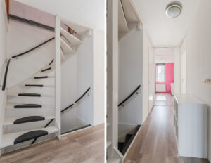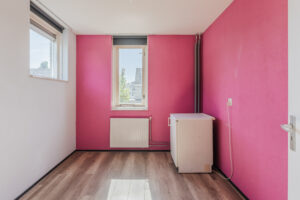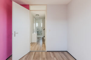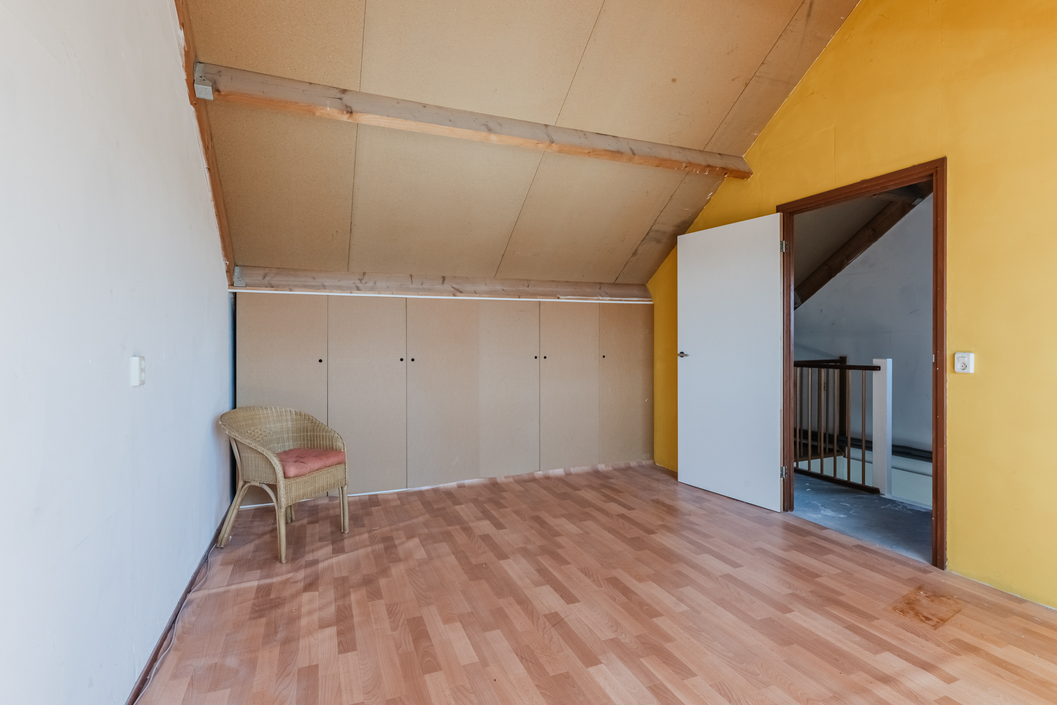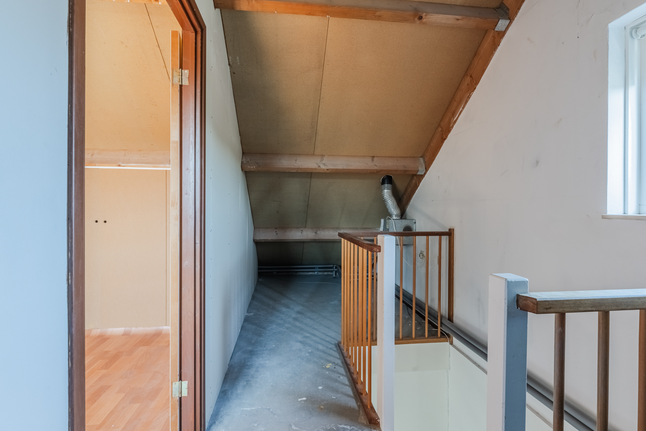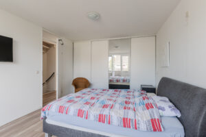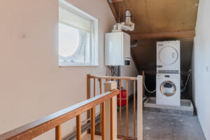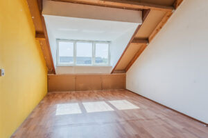 Overloop/voorzolder met de opstelplaats van de c.v.-ketel (Nefit Topline, bwj. 2010) en de aansluiting voor de wasapparatuur. Via de overloop komt u in de vierde ruime slaapkamer van ca. 21m² met volop bergruimte achter de knieschotten, vinyl vloer en een dakkapel aan de achterzijde met elektrische rolluiken. Het is mogelijk om hier 2 kamers te creëren.