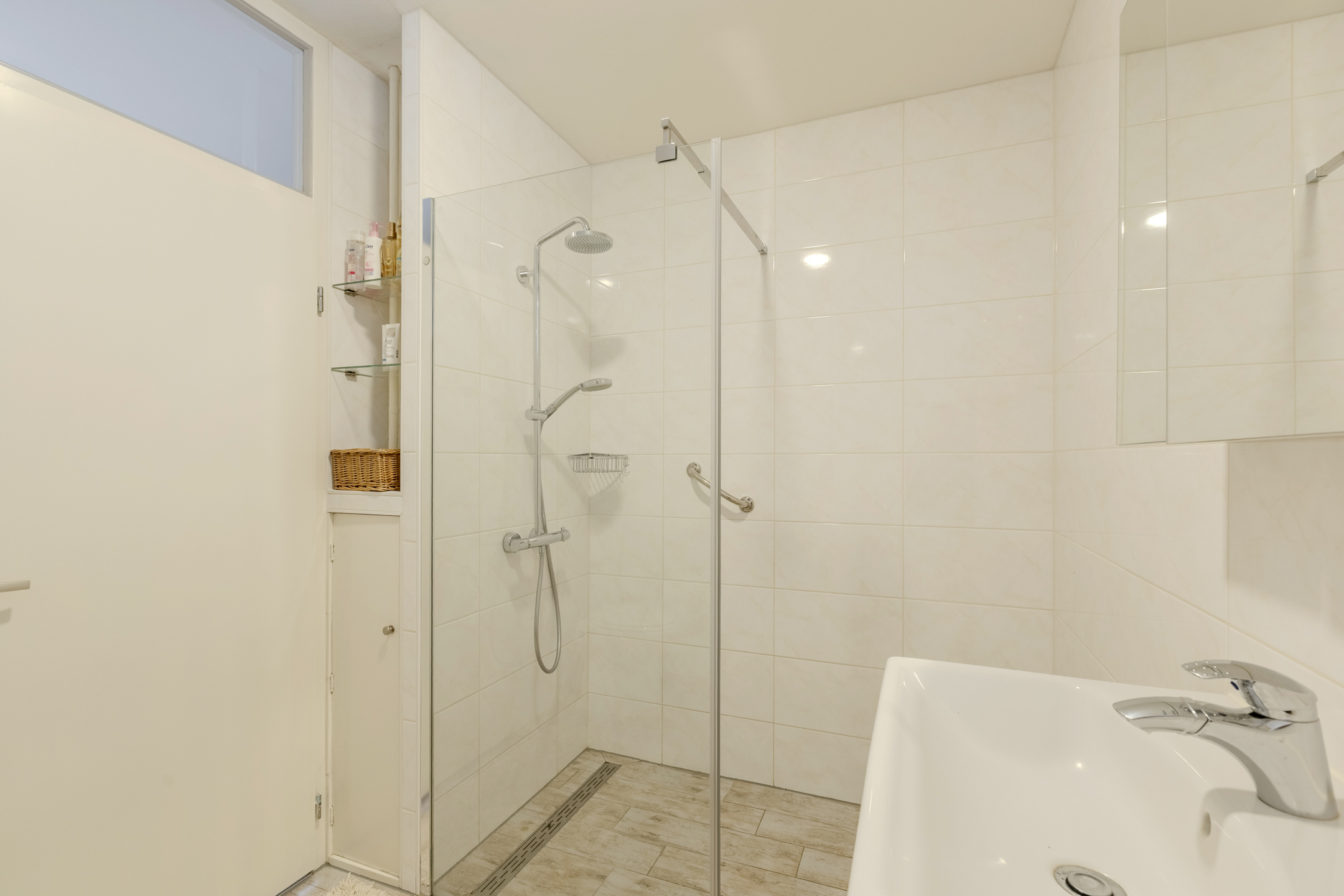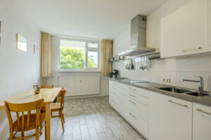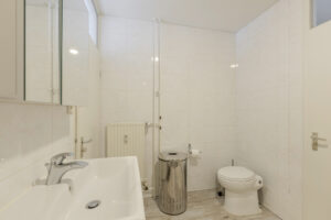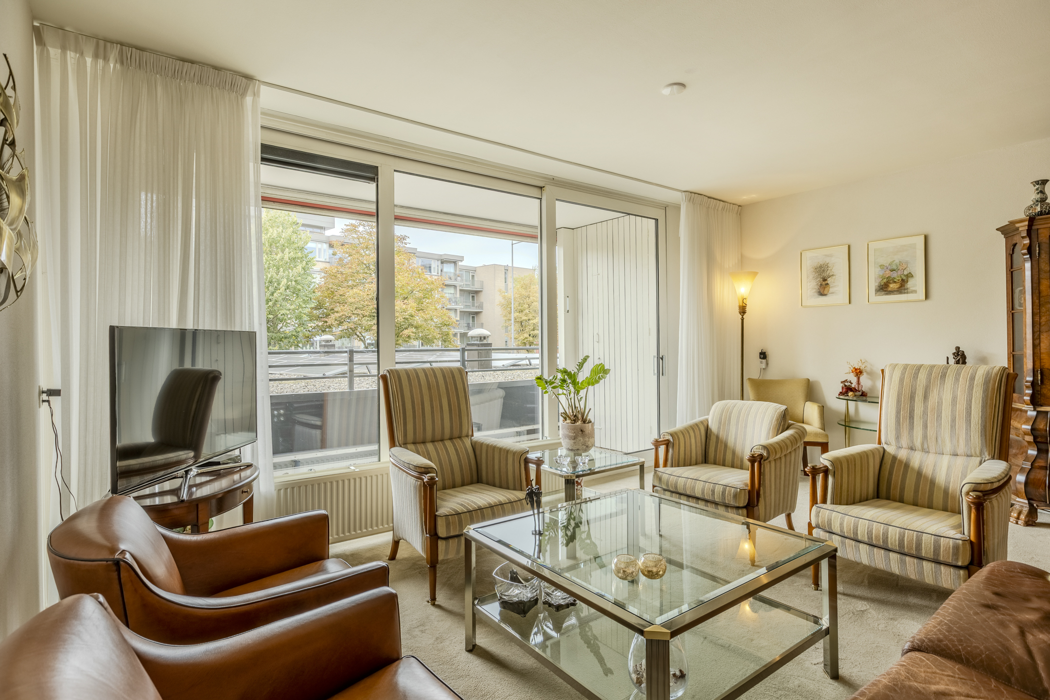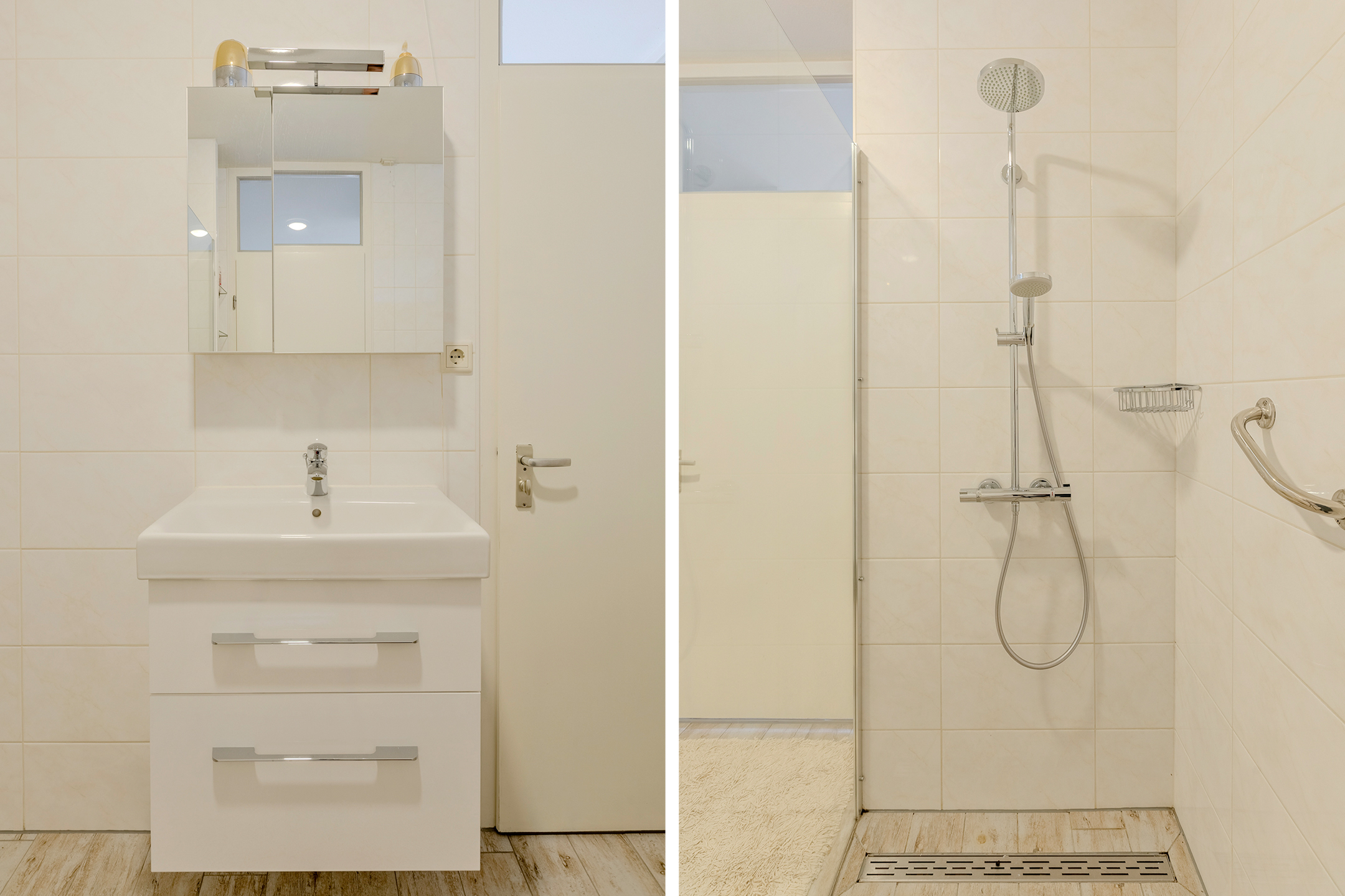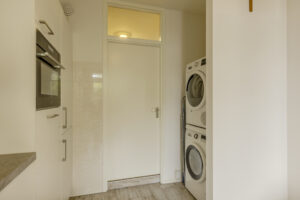 Entree met opberg-/meterkast en toegang tot de hal. Vanuit hier bereikt u de sfeervolle woonkamer welke is voorzien van vloerbedekking en een schuifpui naar het zonnige, op het westen gelegen balkon met een elektrisch zonnescherm en praktische bergkast met elektra. In het appartement bevinden zich 2 ruime slaapkamers aan de voor- en achterzijde van ca. 13m² en 12m², waarvan 1 kamer grenst aan de woonkamer. U kunt deze kamer indien gewenst ook betrekken bij de woonkamer. Vanuit zowel deze slaapkamer alsook vanuit de keuken kunt u de badkamer bereiken. Deze is volledig betegeld en voorzien van een inloopdouche, wastafelmeubel, spiegelkastje en een toilet. Tevens is er een aparte gastentoilet aanwezig welke eveneens volledig betegeld is en voorzien is van een toilet en fonteintje. De dichte en ruime leefkeuken bevindt zich aan de voorzijde van het appartement en is voorzien van een tegelvloer en een nette keukeninrichting met diverse kastjes, lades en inbouwapparatuur, te weten: een inductiekookplaat, afzuigkap, vaatwasmachine, oven, koelkast en een vriezer. Tevens bevinden zich hier de aansluitingen voor de wasapparatuur.