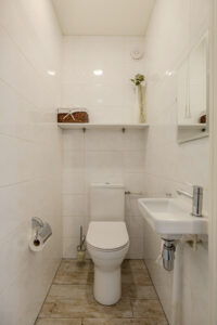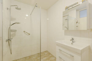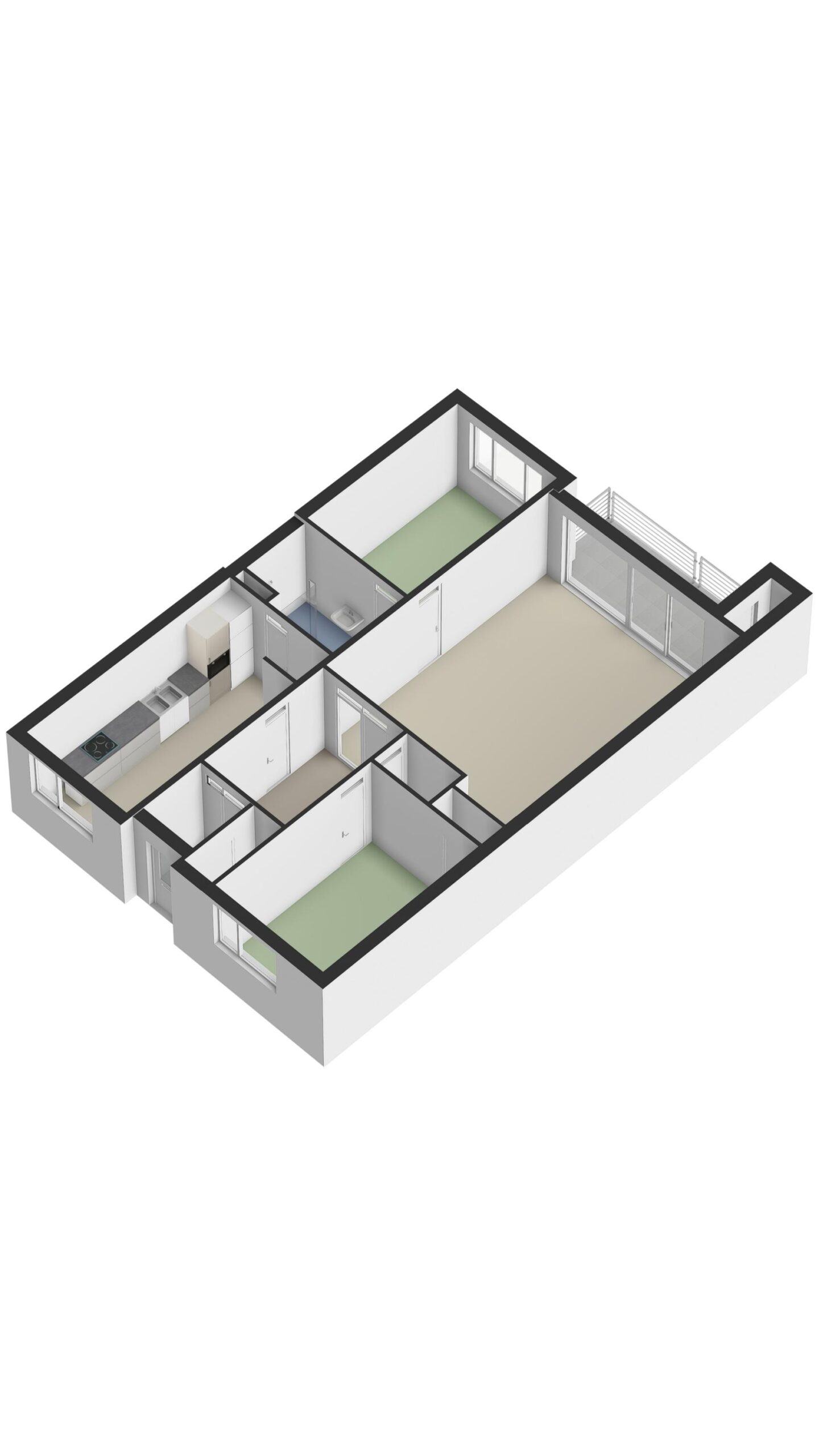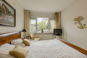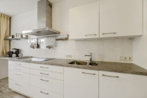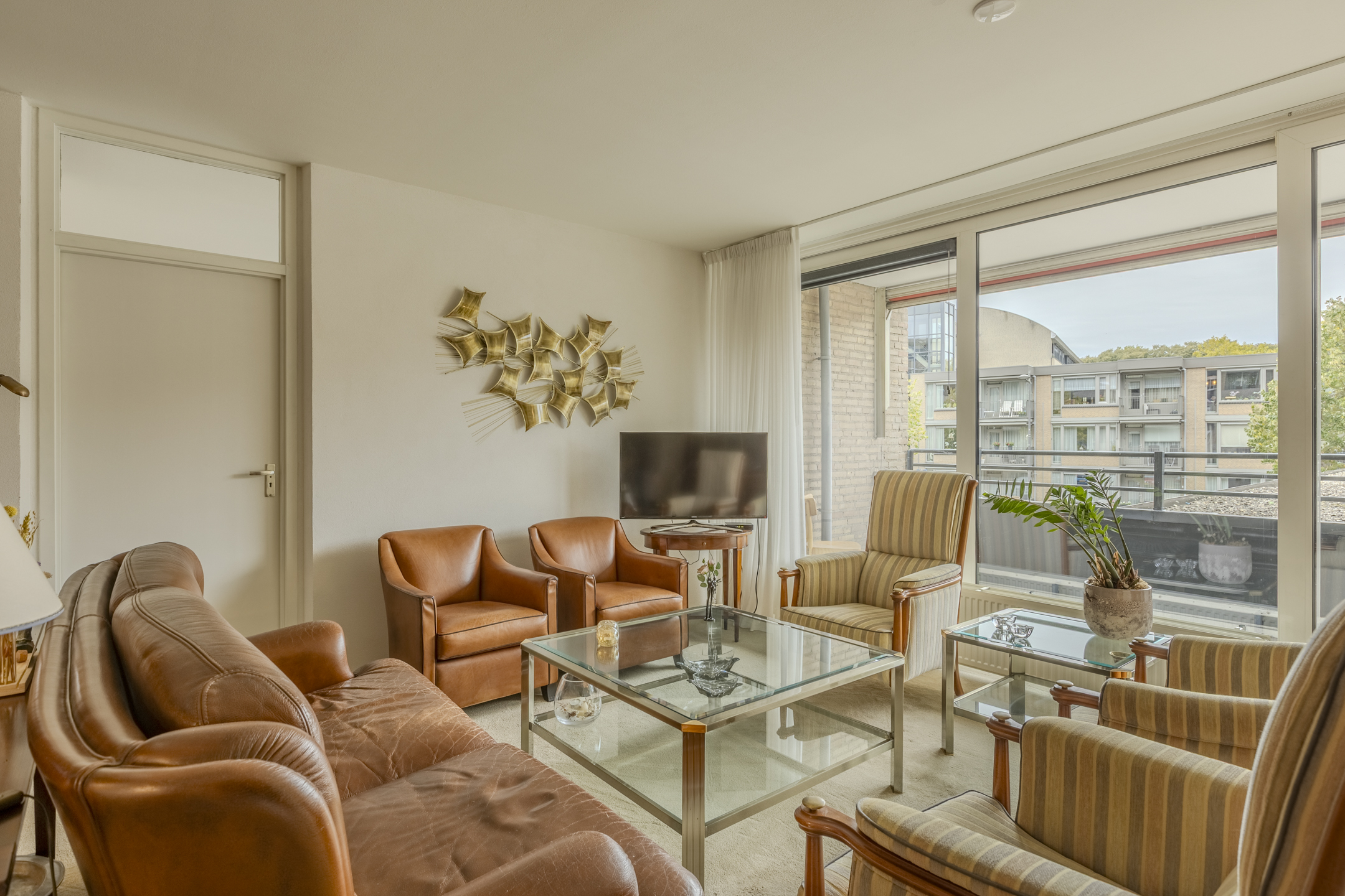 Entree met opberg-/meterkast en toegang tot de hal. Vanuit hier bereikt u de sfeervolle woonkamer welke is voorzien van vloerbedekking en een schuifpui naar het zonnige, op het westen gelegen balkon met een elektrisch zonnescherm en praktische bergkast met elektra. In het appartement bevinden zich 2 ruime slaapkamers aan de voor- en achterzijde van ca. 13m² en 12m², waarvan 1 kamer grenst aan de woonkamer. U kunt deze kamer indien gewenst ook betrekken bij de woonkamer. Vanuit zowel deze slaapkamer alsook vanuit de keuken kunt u de badkamer bereiken. Deze is volledig betegeld en voorzien van een inloopdouche, wastafelmeubel, spiegelkastje en een toilet. Tevens is er een aparte gastentoilet aanwezig welke eveneens volledig betegeld is en voorzien is van een toilet en fonteintje. De dichte en ruime leefkeuken bevindt zich aan de voorzijde van het appartement en is voorzien van een tegelvloer en een nette keukeninrichting met diverse kastjes, lades en inbouwapparatuur, te weten: een inductiekookplaat, afzuigkap, vaatwasmachine, oven, koelkast en een vriezer. Tevens bevinden zich hier de aansluitingen voor de wasapparatuur.