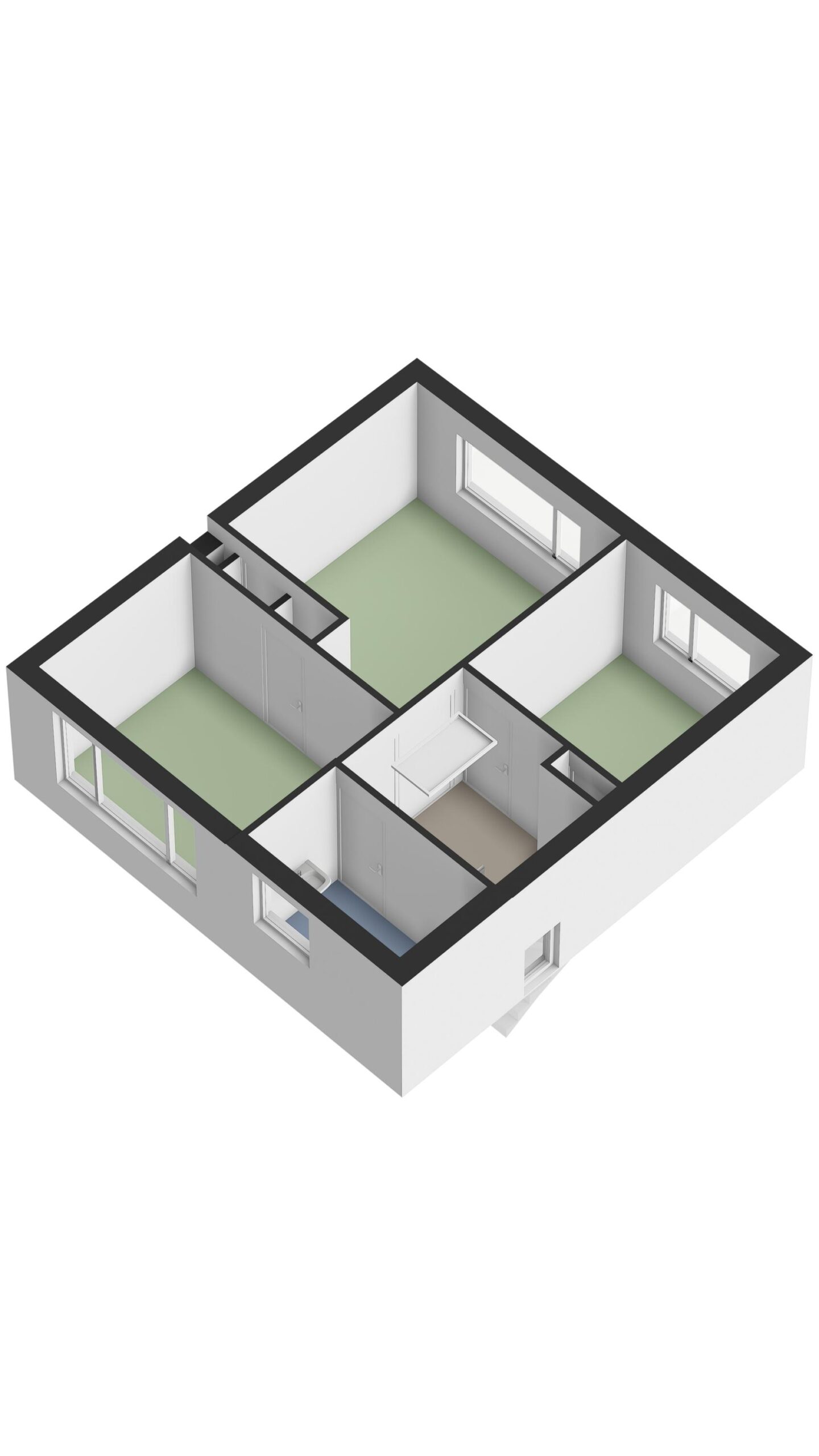 - Slaapkamer (ca. 2,90x2,71m) met vaste kast en eveneens aan de achterzijde gelegen.