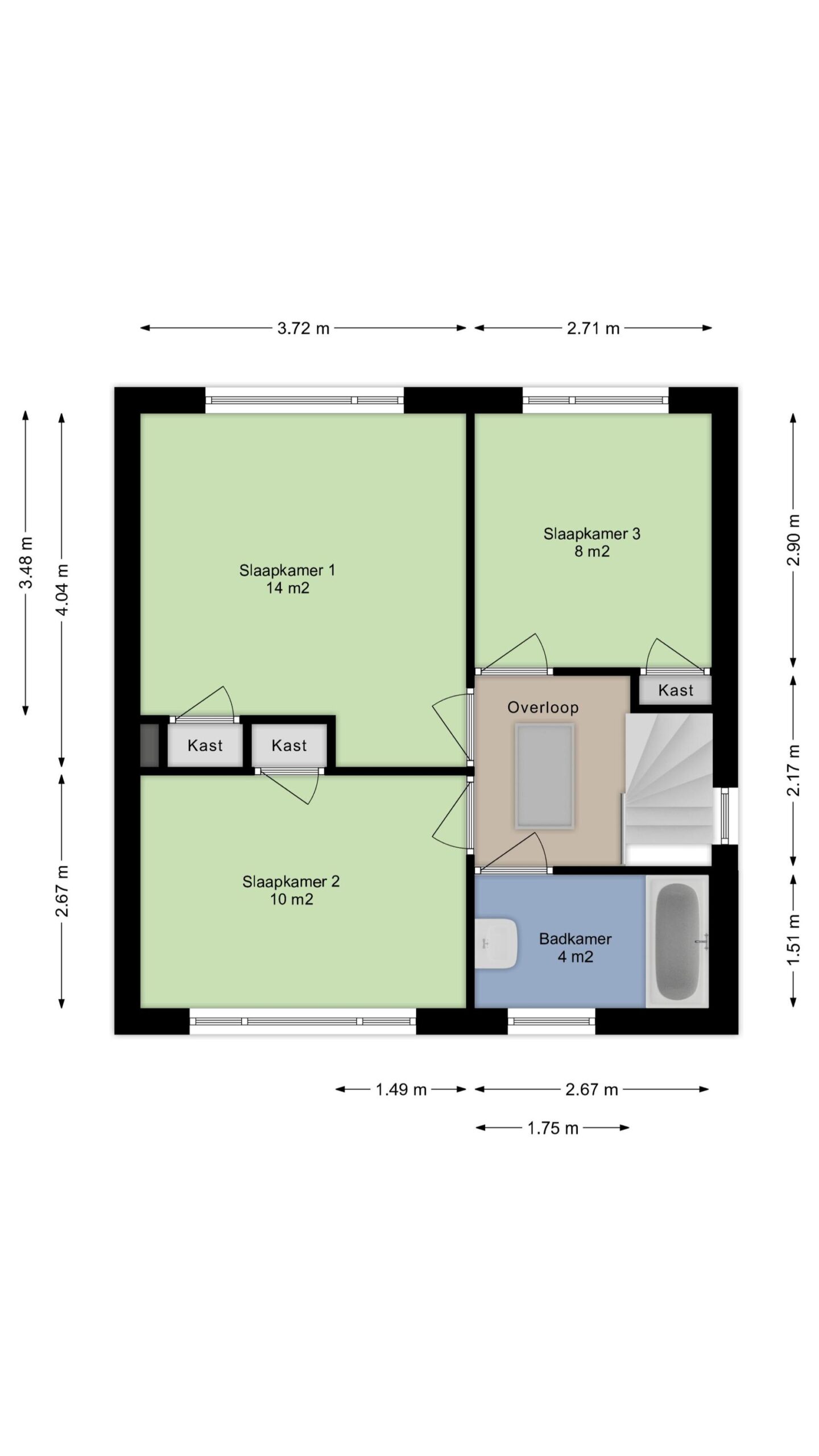De overloop biedt toegang tot de slaapkamers en de badkamer. Er zijn 3 slaapkamers, te weten: