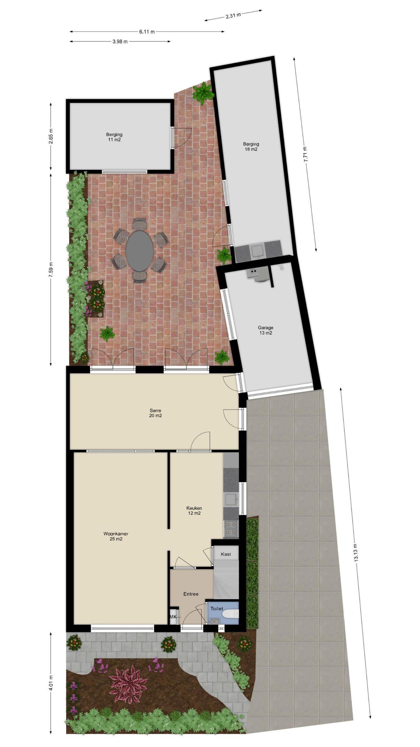 - Aangebouwde overkapping welke later is dichtgemaakt (cv-verwarmd).