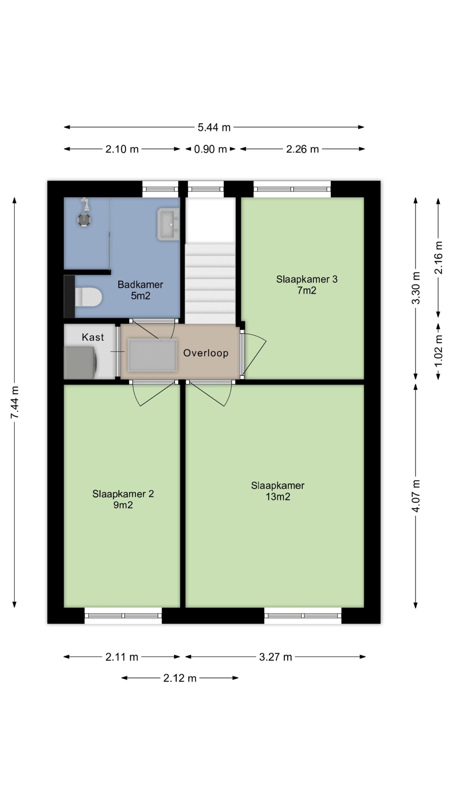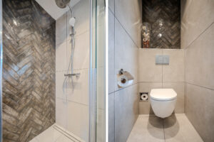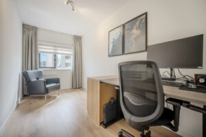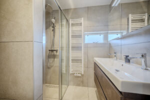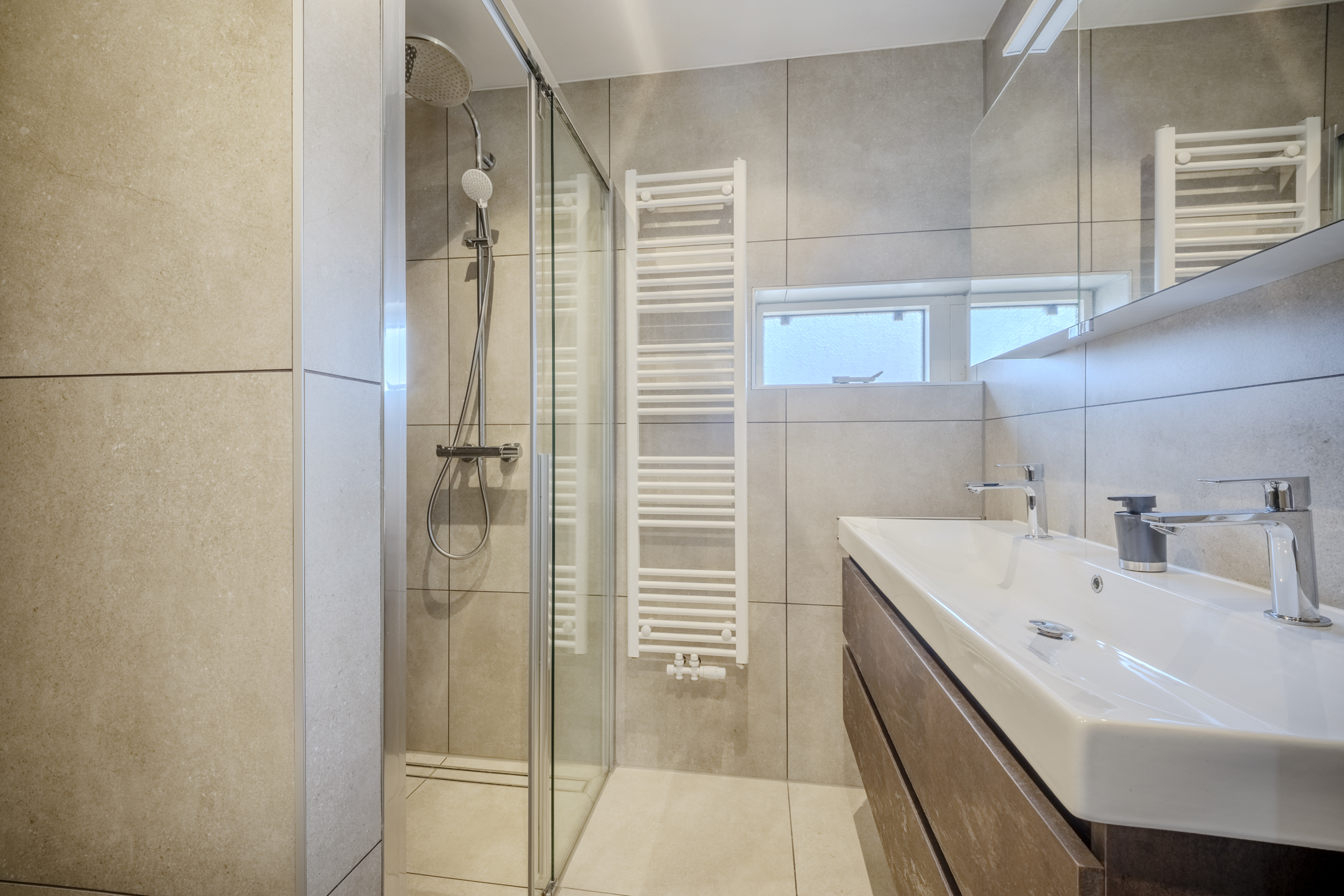 Overloop met toegang tot de luxe badkamer, wasruimte met de aansluitingen t.b.v. de wasapparatuur en 3 royale slaapkamers van ca. 13m², 9m² en 7m². Alle slaapkamers zijn voorzien van een nieuwe laminaatvloer (uit 2024), strakke wanden en rolluiken. De badkamer is in 2024 vernieuwd en beschikt over een inloopdouche, dubbele wastafel, tweede toilet (vrijhangend) en een designradiator.