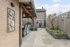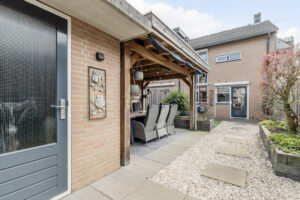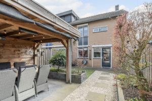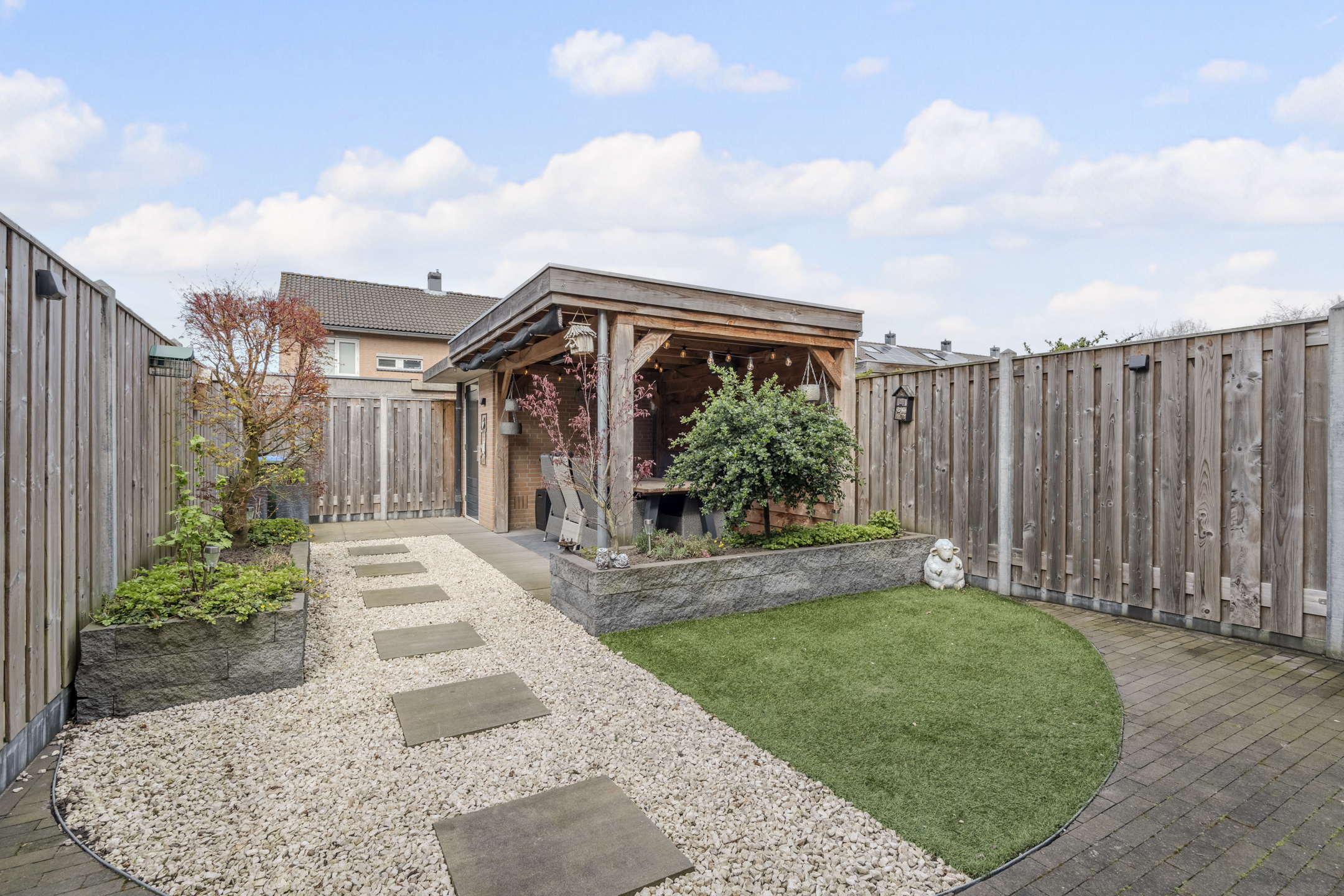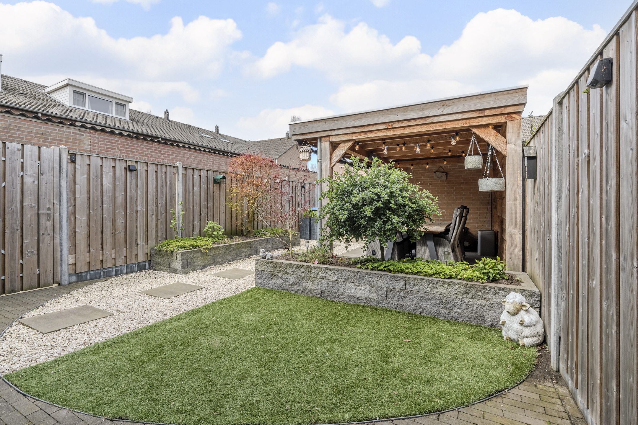 De woning beschikt over een zeer verzorgde, in 2021 aangelegde voor- en achtertuin met tegels, gras, achterom en een stenen berging van ca. 5m² met elektra. Aan de achterzijde is er een gezellige overkapping aanwezig (geplaatst in 2021) met verlichting waar u heerlijk kunt zitten tot in de late uurtjes.