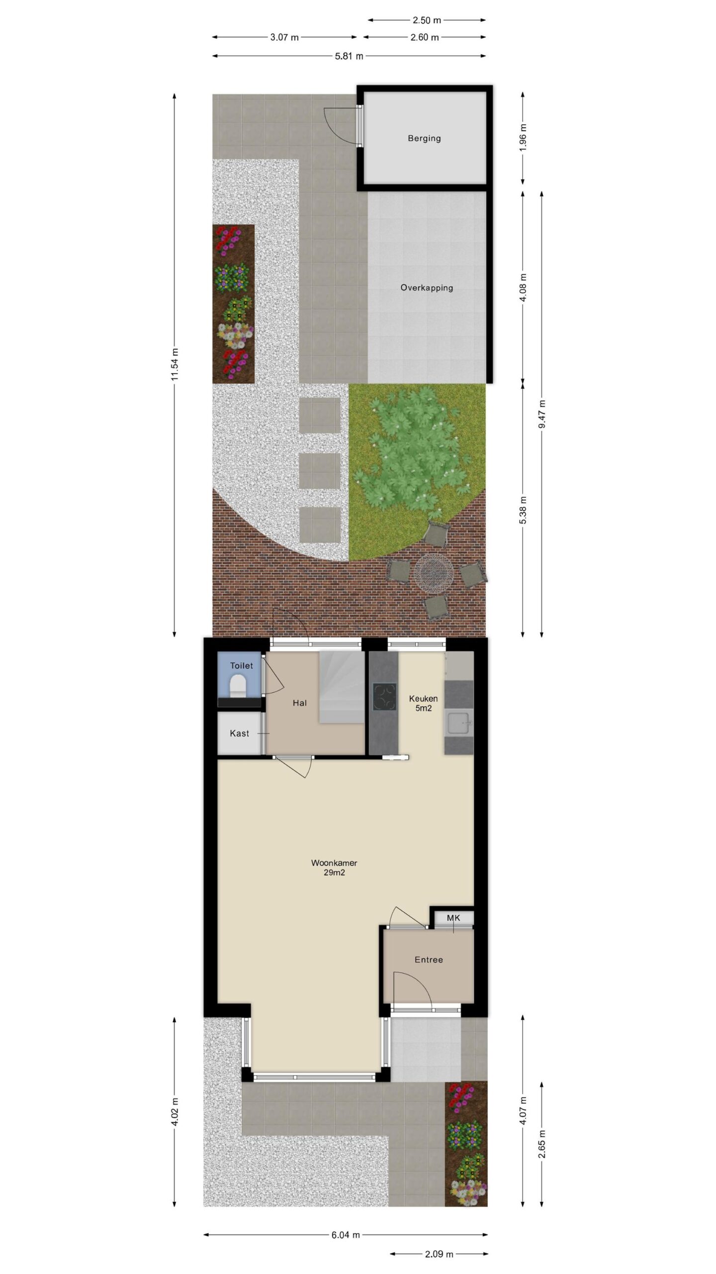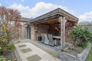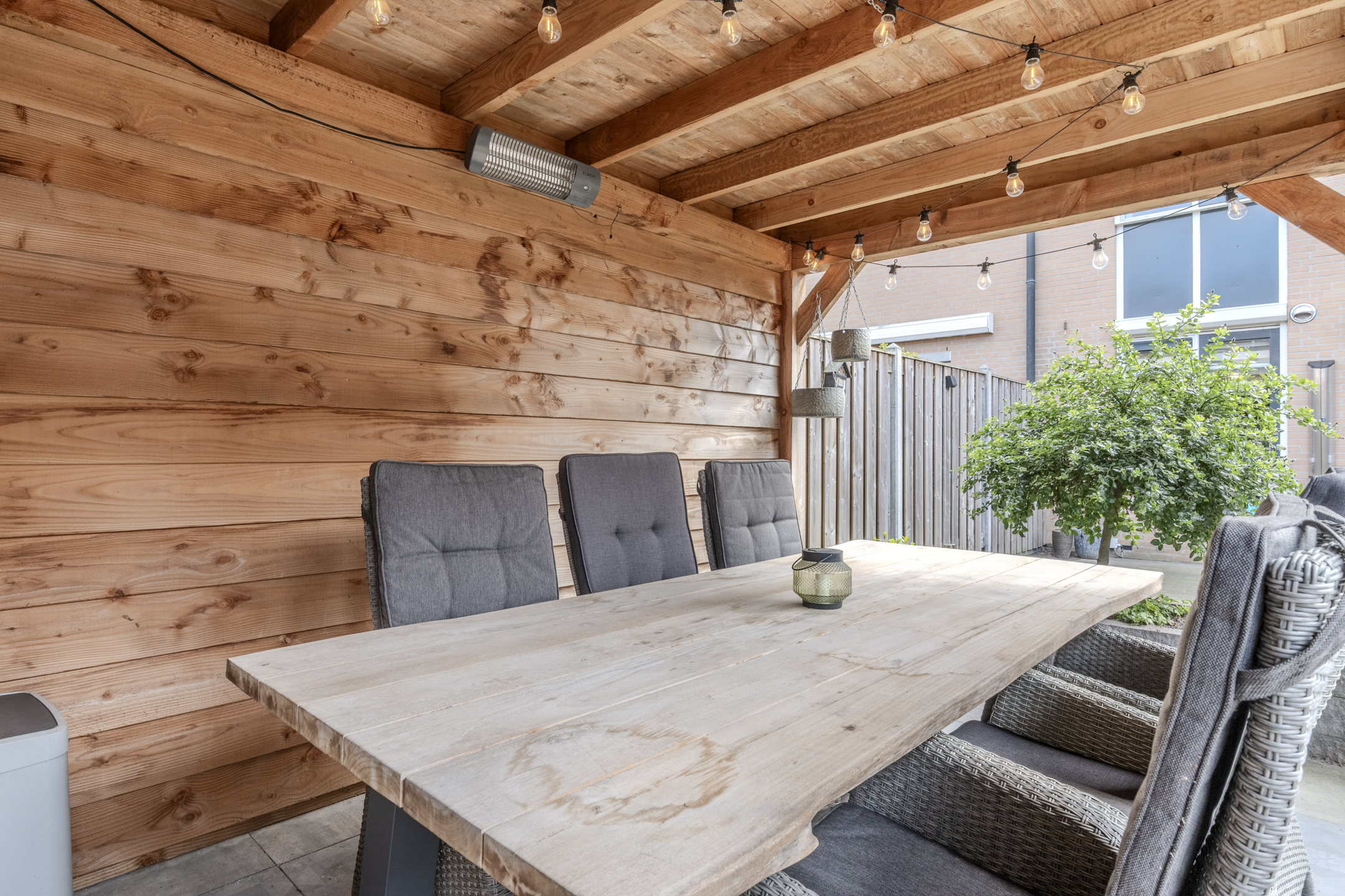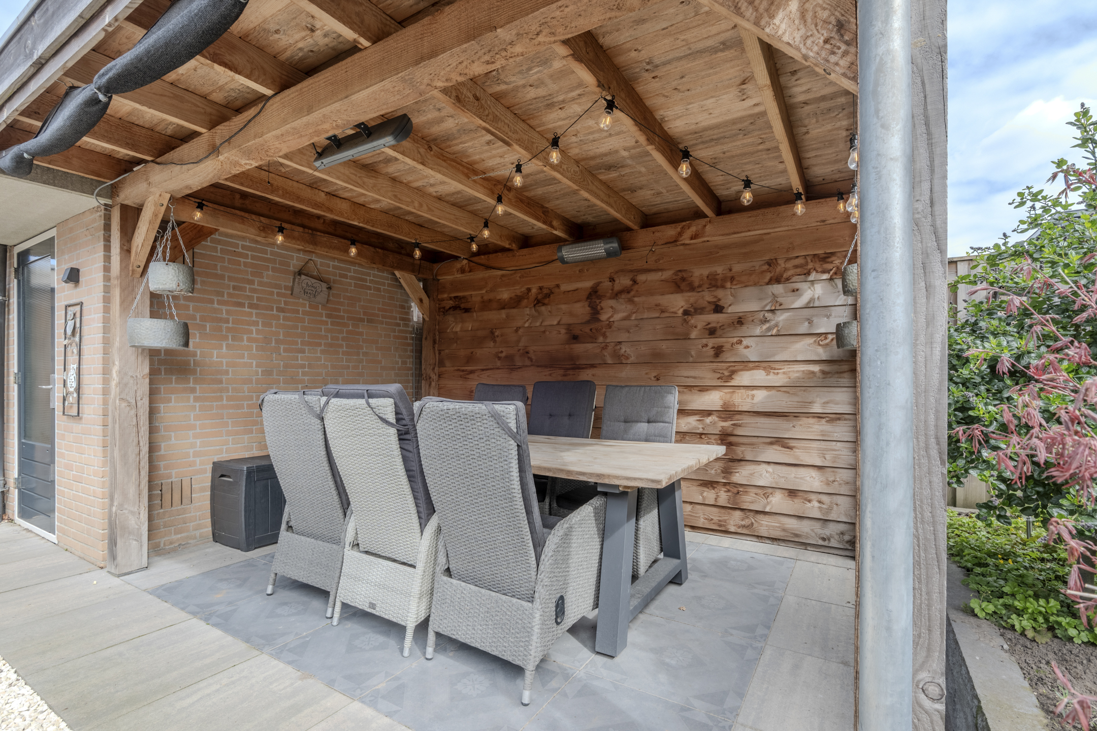 De woning beschikt over een zeer verzorgde, in 2021 aangelegde voor- en achtertuin met tegels, gras, achterom en een stenen berging van ca. 5m² met elektra. Aan de achterzijde is er een gezellige overkapping aanwezig (geplaatst in 2021) met verlichting waar u heerlijk kunt zitten tot in de late uurtjes.