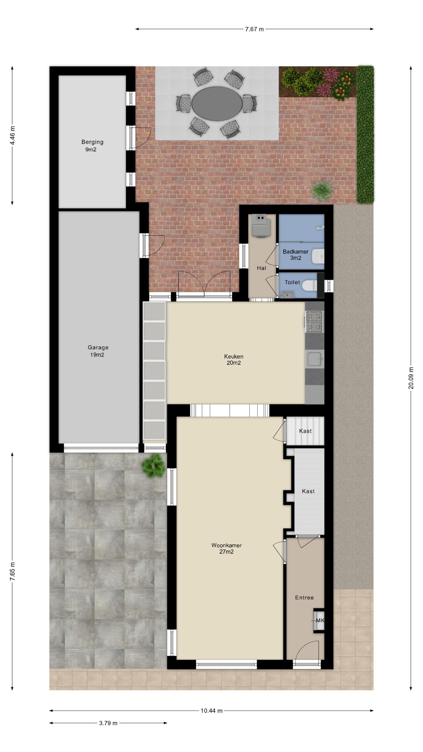 - Grote garage met oprit en extra berging aanwezig.