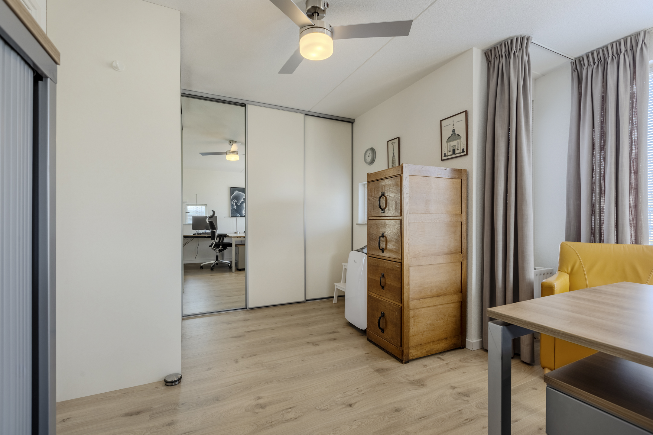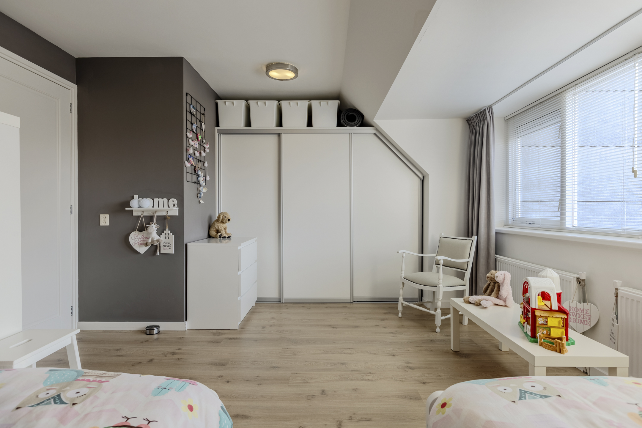 Overloop met trapopgang naar de tweede verdieping en toegang tot 3 royale slaapkamers, het separaat van de badkamer gelegen licht betegelde toilet en de fraai ingedeelde en ingerichte badkamer. Slaapkamer 1 (voorzien van airconditioning voor verwarmen en koelen) van maar liefst ca. 17m² is momenteel in gebruik als hoofdslaapkamer. Deze slaapkamer biedt toegang tot de riante, direct aan deze slaapkamer grenzende inloop kleedkamer (dressing) van maar liefst 13m². Slaapkamer 2 gelegen aan de voorzijde meet maar liefst 18m² en is voorzien van een leuke erker aan de voorzijde en is ingericht met een zeer handige in hoekopstelling geplaatste vaste kastenwand. Slaapkamer 3 (ca. 18m²) is gelegen aan de achterzijde. Deze slaapkamer is voorzien van een groot dakkapel en eveneens een vaste kastenwand. Zeer smaakvol afgewerkte badkamer welke is ingericht met een grote inloop/stort-douche en een dubbele wastafel in een prachtig wandmeubel. Verwarming geschiedt middels de aanwezige designradiator. De overloop, slaapkamers en de dressing zijn voorzien van laminaat.